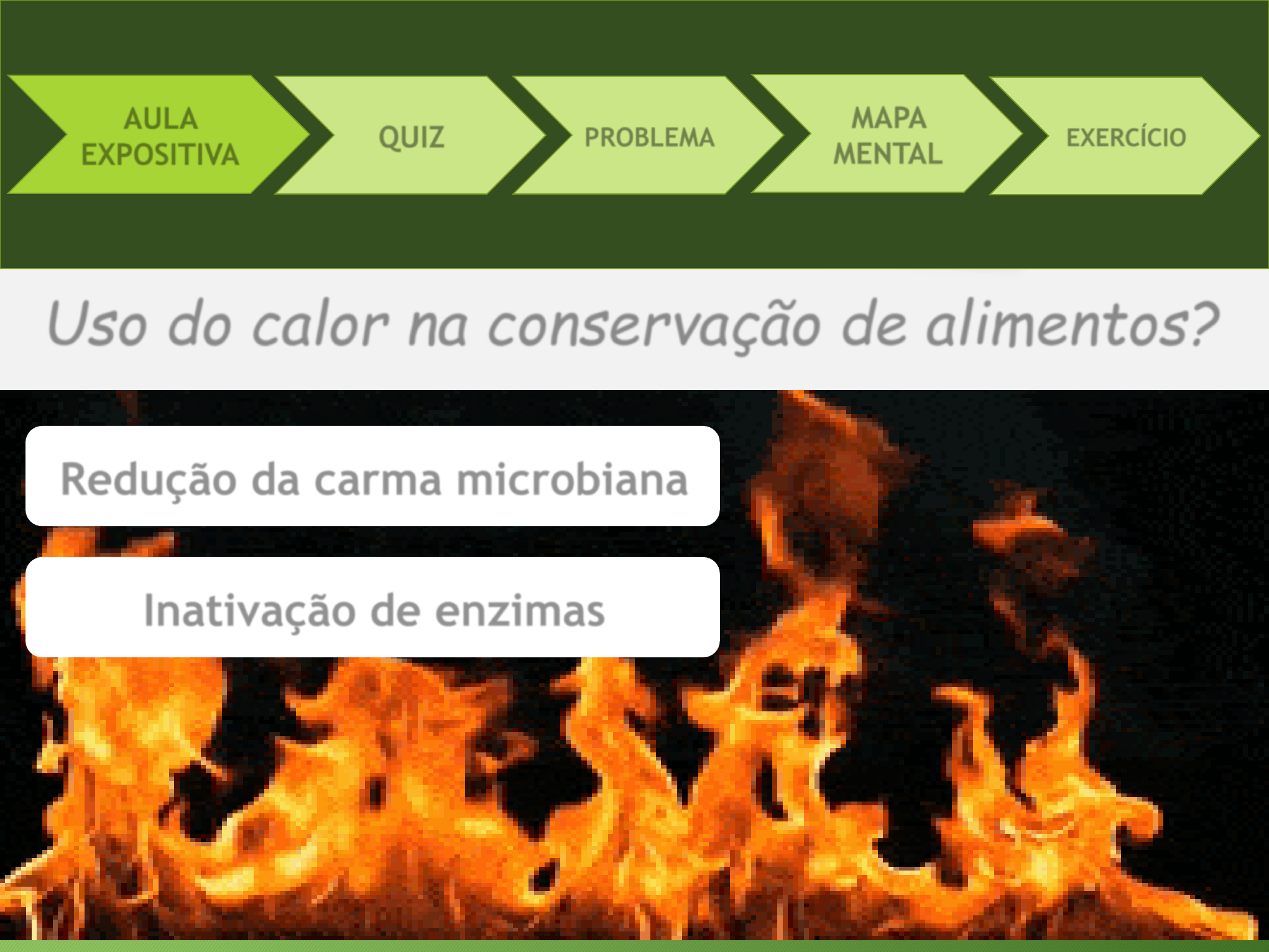AULA EXPOSITIVA QUIZ PROBLEMA MAPA MENTAL EXERCÍCIO Uso do calor na conservação de alimentos? Redução da carma microbiana Inativação de enzimas AULA EXPOSITIVA QUIZ PROBLEMA MAPA MENTAL EXERCÍCIO BRANQUEAMENTO Objetivo: inativar enzimas ✓Tratamento térmico suave; ✓Utilização de água ou vapor; ✓Prévio a outros métodos de conservação; ✓ Amolecimento dos tecidos; ✓ Produtos congelados, secos, esterilizados AULA EXPOSITIVA QUIZ PROBLEMA MAPA MENTAL EXERCÍCIO Fatores que influenciam a escolha da temperatura ✓Tipo de fruto ou hortaliça ✓Tamanho dos pedaços do alimento ✓Temperatura de branqueamento ✓Método de aquecimento AULA EXPOSITIVA QUIZ PROBLEMA MAPA MENTAL EXERCÍCIO • Preservar o seu sabor, sua cor e seus valores nutricionais. Tem a vantagem de ELIMINAR ODORES DESAGRADÁVEIS de algumas hortaliças • Ausência de branqueamento resulta mudanças indesejáveis (Sensorial e nutricional) durante a estocagem Branqueamento insuficientePode romper tecidos e liberar enzimas sem inativá-las Acelera o dano ao misturar enzima com substrato Ocorrer destruição de apenas algumas enzimas aumentando atividade de outras acelerando a deterioração AULA EXPOSITIVA QUIZ PROBLEMA MAPA MENTAL EXERCÍCIO Enzimas que causam perdas na qualidade nutricional e sensorial em frutas e vegetais ✓Lipoxigenase (ação em ácidos graxos poli-insaturados) ✓Polifenol oxidase (frutas e vegetais) ✓Poligalacturonase ✓Clorofilase (degradação da clorofila) ✓Catalase e peroxidase (marcadores para determinar o sucesso do branqueamento) AULA EXPOSITIVA QUIZ PROBLEMA MAPA MENTAL EXERCÍCIO BRANQUEAMENTO • Lixiviação (solubilização) de vitaminas e minerais • Perdas dependem do tempo de contato AULA EXPOSITIVA QUIZ PROBLEMA MAPA MENTAL EXERCÍCIO TIPOS DE BRANQUEADORES • Esteira transportadora leva o alimento dentro de um túnel de vapor • Tempo de residência do alimento depende velocidade da esteira e comprimento do túnel • Há uma distribuição não-uniforme do calor nas múltiplas camadas do alimento • Tempo-temperatura necessária para inativar enzimas no centro do alimento resulta superaquecimento nas extremidades perda sensorial Branqueadores a vapor AULA EXPOSITIVA QUIZ PROBLEMA MAPA MENTAL EXERCÍCIO 1º estágio: Alimento aquecido em uma única camada em Tº suficiente p inativar enzimas 2º estágio: Camada relativamente espessa do alimento é mantida por tempo suficiente para assegurar o aumento da Tº no centro para inativar as enzimas Branqueador rápido em 2 estágios AULA EXPOSITIVA QUIZ PROBLEMA MAPA MENTAL EXERCÍCIO Ex: Cenouras de 1cm • 25s para aquecimento • 50s para a estabilização = 3min de branqueamento convencional Obs: Aumento na eficiência do consumo de energia (86 a 91%) AULA EXPOSITIVA QUIZ PROBLEMA MAPA MENTAL EXERCÍCIO Branqueadores a água quente • Alimento em água quente (70 e 100ºC) posteriormente deve resfriar. • Dependendo do produto, o equipamento pode ser um tambor rotatório ou passar em uma esteira por um tanque retangular • Variedade de M.P grande em relação ao fluxo de produção, equipamentos menores, de batelada, que servem para diversos produtos pois o controle da temperatura e do tempo de exposição é feito manualmente AULA EXPOSITIVA QUIZ PROBLEMA MAPA MENTAL EXERCÍCIO AULA EXPOSITIVA QUIZ PROBLEMA MAPA MENTAL EXERCÍCIO Efeitos do branqueamento • Danos na qualidade sensorial e nutricional (amolecimento) - Adição de cloreto de cálcio (1 a 2%) à água para manter a firmeza (textura) • Perda de alguns minerais, vitaminas e outros compostos hidrossolúveis • Clareamento de alguns alimentos pela remoção de ar e poeira da superfície (altera comprimento de onda da luz refletida) • Tempo-Temperatura influencia alteração de pigmentos • Não altera sabor e aroma se bem aplicados AULA EXPOSITIVA QUIZ PROBLEMA MAPA MENTAL EXERCÍCIO Perdas • 13% a 60% para a vitamina C • 2% a 30% para a tiamina • 5% a 40% para a riboflavina • As perdas de carotenoides são inferiores a 1% (lipossolúveis) AULA EXPOSITIVA QUIZ PROBLEMA MAPA MENTAL EXERCÍCIO Alguns alimentos que sofrem branqueamento • Alimento infantil à base de maçã e banana • Antepasto de Berinjela • Batata pré-frita congelada • Cogumelo em conserva • Ervilha congelada • Laranja cristalizada • Milho em Conserva • Seleta de legumes AULA EXPOSITIVA QUIZ PROBLEMA MAPA MENTAL EXERCÍCIO Pasteurização Objetivo: eliminar patógenos • Tratamento térmico relativamente brando (< 100ºC) • Alimentos baixa acidez (pH>4,5 como o leite): diminuir M.O patogênicos • Alimentos ácidos (pH<4,5 como conservas): destruir deteriorantes • Sempre há sobrevivência de bactérias AULA EXPOSITIVA QUIZ PROBLEMA MAPA MENTAL EXERCÍCIO Experiência de Louis Pasteur AULA EXPOSITIVA QUIZ PROBLEMA MAPA MENTAL EXERCÍCIO • Todos os derivados devem ser fabricados a partir de leite pasteurizado • Tecnologia obrigatória em todo o processo de laticínios • Produtos sem pasteurização são considerados CLANDESTINOS! • O produto necessita ser mantido em refrigeração • Vida útil de até 5 dias Leite AULA EXPOSITIVA QUIZ PROBLEMA MAPA MENTAL EXERCÍCIO LENTA RÁPIDA AULA EXPOSITIVA QUIZ PROBLEMA MAPA MENTAL EXERCÍCIO LENTA – POUCO UTILIZADA • Descontínua - 65ªC/ 30min • Demorada • Consumo alto de energia • Redução 95% das bactérias • Altera pouco o leite • Algumas vantagens na fabricação de queijo • Viável para pequenos volumes Ex: Queijarias artesanais/ Leite de cabra AULA EXPOSITIVA QUIZ PROBLEMA MAPA MENTAL EXERCÍCIO RÁPIDA • Contínua – 75ºC/ 10 a 15s • Rápido • Ideal para grandes volumes de leite • Redução 99,5% das bactérias • Alteração um pouco maior no leite AULA EXPOSITIVA QUIZ PROBLEMA MAPA MENTAL EXERCÍCIO • Nos alimentos líquidos, a penetração do calor no interior é feita mais rapidamente por CONVECÇÃO • Nos sólidos e semi-sólidos o calor se desloca