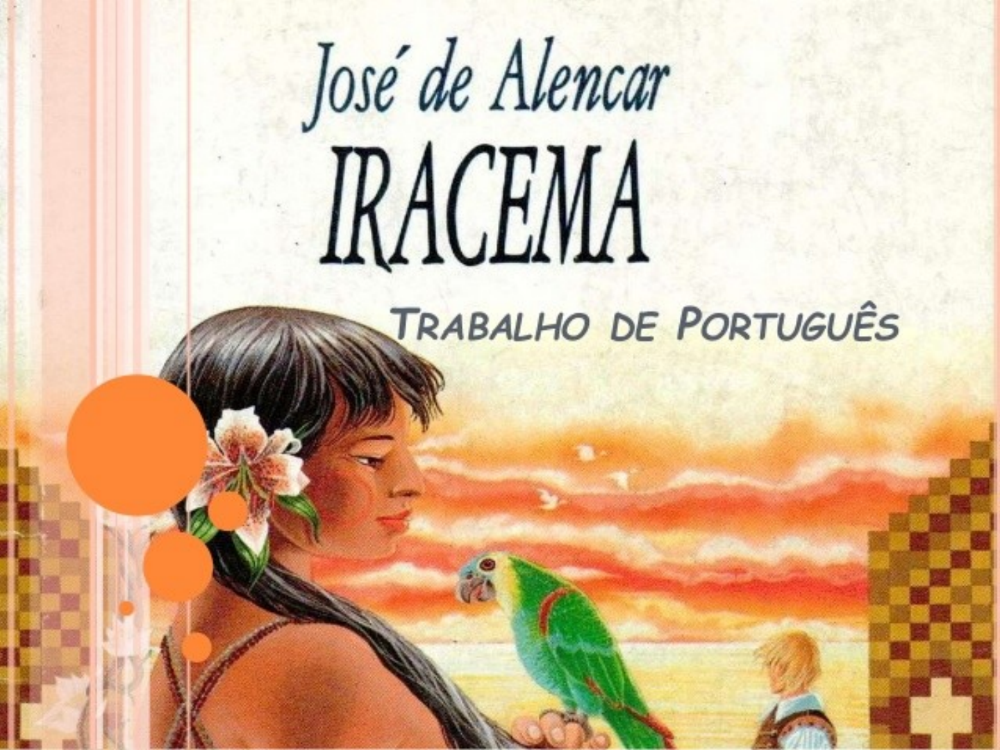 Vida de José de Alencar Nasceu em 1 de maio de 1829 em Lagoa Redonda, próximo a Messejana- Ceará. Cursou direito em São Paulo, foi político, jurista, dramaturgo e romancista. Em 1859 tornou-se chefe da Secretaria do Ministério da Justiça, sendo depois consultor do mesmo, tornando-se mais tarde deputado estadual do Ceará. Em 1856 publica o primeiro romance, Cinco Minutos, seguido de A Viuvinha em 1857. Mas é com O Guarani em (1857) que alcançará notoriedade. Estes romances foram publicados todos em jornais e só depois em livros. Morreu dia 12 de dezembro de 1877. Publicado em: 1865. Autor: José de Alencar. Principais Personagens Iracema- a índia dos lábios de mel e de cabelos negros e longos. Martim - o guerreiro branco de olhos azuis. Poti - amigo fiel de Martim, está sempre com ele nas lutas. Araquém - pai de Iracema. Pajé, recebe Martim em sua cabana e o protege. Caubi - irmão de Iracema. Moacir - filho de Iracema e Martim. Irapuã – cacique tabajara e inimigo de Martim. Foco narrativo É em 3° pessoa. O narrador é onisciente. Inicialmente o narrador participa da história pois irá contar uma narrativa que lhe contaram de sua terra natal “Uma história que me contaram nas lindas vargens onde nasci”. Gênero Literário Para José de Alencar, como explicita o subtítulo de seu romance, Iracema é uma "Lenda do Ceará". É também, segundo diferentes críticos e historiadores, uma romance poemático, um exemplo de prosa poética, um romance histórico- indianista, uma narrativa épico-lírica ou mitopoética. Enredo Parte I- a chegada do guerreiro branco Parte II- abandono da pátria Parte III- um novo começo Parte IV- final trágico Parte 1- a chegada do guerreiro branco Durante uma caçada, Martim, um guerreiro português, se perdeu dos companheiros pitiguaras e caminhou sem rumo durante 3 dias. Encontrou-se com Iracema da tribo dos tabajaras. Quando se deparou com Martim, surpresa e amedrontada a índia o feriu com uma flechada, arrependida a moça correu até Martim e ofereceu-lhe hospitalidade. A hospedagem ali não agradou um guerreiro: Irapuã, que era apaixonado por Iracema. Enquanto isso, Martim convivia com a saudade de Portugal, e também com a crescente admiração pela virgem Tabajara. Parte 2- abandono da pátria Apaixonada por Martim e assim traindo o compromisso de virgem, portadora do segredo de Jurema da tribo tabajara, Iracema decide fugir ao lado de seu amado e seu amigo Poti (guerreiro da tribo inimiga, pitiguaras). Iracema fugiu de sua aldeia rumo ao litoral. Ao perceberem o ocorrido, Irapuã e Caubi lideram os tabajaras e perseguem os amantes. No caminho encontraram os pitiguaras. Ocorrendo assim, uma batalha sangrenta. Parte 3- um novo começo A fuga acabou numa praia deserta, onde o casal decidiu construir uma cabana. Após um tempo os franceses de aliaram aos tabajaras e decidiram travar uma batalha com a tribo. Assim Martim viu-se obrigado a guerrear junto a seu irmão Poti deixando Iracema na cabana grávida. Parte 4- final trágico Iracema deu a luz a um menino, mas foi um parto de risco, por esta a razão ficou debilitada, então seu filho foi chamado de Moacir, o filho da dor. De tanto chorar Iracema perdeu o leite para alimentar o filho, conseguiu nutrir seu filho, mas a jovem perdia as forças e o apetite. O guerreiro branco, ao chegar e ouvir o canto triste da jandaia pressentiu a tragédia, voltou a tempo de Iracema morrer em seus braços. O sofrimento de Martim foi enorme com a perda do seu grande amor. O lugar onde Iracema foi enterrada veio a se chamar Ceará. Moacir, fruto de uma relação trágica entre sangue português e sangue indígena tornou-se o primeiro cearense. No Ceará, Martim cria seu filho, implanta a fé cristã e continuou uma amizade fiel com Poti.