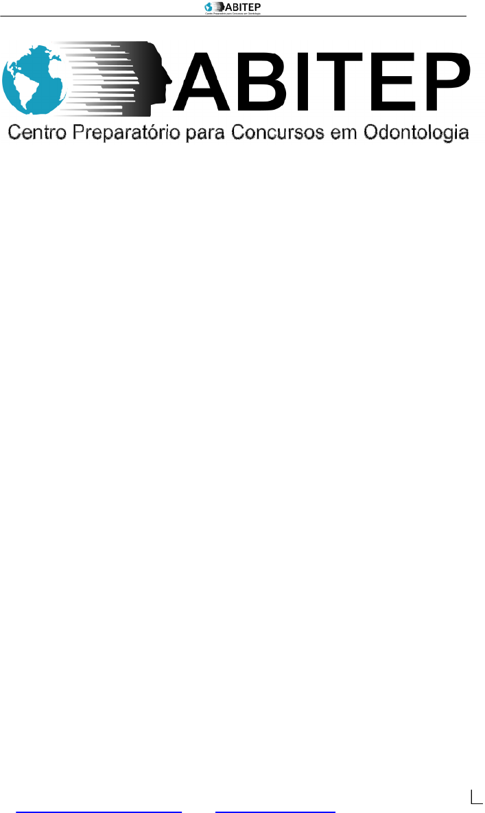 ABITEP – PERIODONTIA _ www.concursosdeodontologia.com.br periodontia@abitep.com.br Tel.: 11 3214 - 8949 1 PERIODONTIAPERIODONTIA Prof. Renato Corrêa Viana CasarinProf. Renato Corrêa Viana Casarin Prof. Márcio Zaffalon CasatiProf. Márcio Zaffalon Casati ABITEP – PERIODONTIA _ www.concursosdeodontologia.com.br periodontia@abitep.com.br Tel.: 11 3214 - 8949 2 ANATOMIA E HISTOLOGIA DOS TECIDOS PERIODONTAISANATOMIA E HISTOLOGIA DOS TECIDOS PERIODONTAIS PERIODONTIA –PERIODONTIA – PERI – Ao redor;– Ao redor; ODONTO – Dente. – Dente. PERIODONTO DE SUPORTE OU SUSTENTAÇÃOPERIODONTO DE SUPORTE OU SUSTENTAÇÃO 1. 1. LIGAMENTO LIGAMENTO PERIODONTALPERIODONTAL Tecido conjuntivo frouxo, feixe de fibras colágenas unindo o dente ao osso alveolar. CÉLULAS:CÉLULAS: fibroblastos, osteoblastos, cementoblastos, osteoclastos, células Nervosas, células mesenquimais indiferenciadas. FUNÇÕES:FUNÇÕES: 1. Ancoragem / Sustentação: associada às fibras; 2. Sensitiva / Proprioceptiva: Terminações nervosas presentes no espaço ligamentar; 3. Nutricional : Vasos sanguíneos; 4. Homeostase: Células de defesa; 5. Regenerativa: Células Mesenquimais Indiferenciadas; TIPOS DE FIBRAS:TIPOS DE FIBRAS: 11.. Fibras ColágenasFibras Colágenas: fibras predominantes; 22.. Fibras ReticularesFibras Reticulares: adjacentes a membrana basal e vasos; 33.. Fibras ElásticasFibras Elásticas: associada aos vasos sanguíneos; 44.. Fibras OxitalâmicasFibras Oxitalâmicas: perpendiculares as fibras principais do ligamento periodontal, auxiliam no SUPORTE das fibras do ligamento e vasos sanguíneos; LOCALIZAÇÃO E RESISTÊNCIA AS FORÇASLOCALIZAÇÃO E RESISTÊNCIA AS FORÇAS 1) ApicalApical: Perpendiculares a superfície dos ápices radiculares até a crista alveolar. Resistem às forças verticais e extrusivas aplicadas aos dentes. 2) Oblíqua:Oblíqua: Posiciona-se em uma direção oblíqua a partir da área acima da região apical da raiz, inserindo-se para cima no processo alveolar. Resistem às forças mastigatórias verticais ou intrusivas. 3) Horizontal:Horizontal: Estendem-se horizontalmente do cemento no terço médio da raiz até o osso alveolar adjacente. Resiste à inclinação dos dentes. 4) Crista alveolar:Crista alveolar: Origina-se na região cervical, logo da JCE, estendendo-se ate a crista alveolar e para o interior do tecido gengival. Resistem a forças intrusivas. 5) Inter-radicular:Inter-radicular: Encontradas nos dentes multirradiculares, dispostas perpendicularmente à superfície dentária e ao processo alveolar adjacente. Resistem às forças verticais e laterais. DICA IMPORTANTE: Embora as fibras estejam sempre inseridas no osso e no cemento, essas possuem uma orientação ondulada que permite uma MOBILIDADE FISIOLÓGICA.MOBILIDADE FISIOLÓGICA. 2. TECIDO ÓSSEO / PROCESSO ALVEOLAR:2. TECIDO ÓSSEO / PROCESSO ALVEOLAR: Dividido em:Dividido em: 1. Osso compacto : lâmina dura e cortical; 2. Osso esponjoso: medula óssea; PERIODONTO PERIODONTO DE DE SUPORTE SUPORTE OU OU SUSTENTAÇÃO SUSTENTAÇÃO PERIODONTO PERIODONTO DE DE PROTEÇÃOPROTEÇÃO 1. Cemento Radicular 1. Gengiva Livre 2. Ligamento Periodontal 2. Gengiva Inserida 3. Tecido Ósseo 3. Gengiva Papilar ou interproximal ou interdental ABITEP – PERIODONTIA _ www.concursosdeodontologia.com.br periodontia@abitep.com.br Tel.: 11 3214 - 8949 3 ANATOMIA DO PROCESSO ALVEOLAR:ANATOMIA DO PROCESSO ALVEOLAR: dependente da função dental/ estímulo funcional – Presença do Dente. Altura: 2 a 3 mm da junção cemento-esmalte; Largura: Dependente da área: mais espesso na região posterior que anterior; IMPORTANTE: Alterações no metabolismo ósseo (osteoporose) influenciam. Após a perda dental o processo alveolar é reabsorvido, srcinando o rebordo ósseo. IMAGEM RADIOGRÁFICA DO TECIDO ÓSSEOIMAGEM RADIOGRÁFICA DO TECIDO ÓSSEO Lâmina dura (osso compacto) e Osso trabecular (osso esponjoso). FUNÇÃO DO TECIDO ÓSSEO:FUNÇÃO DO TECIDO ÓSSEO: 1. Ancoragem do ligamento periodontal; 2. Processo de remodelação – aposição e reabsorção; FISIOLOGIA DO OSSO ALVEOLARFISIOLOGIA DO OSSO ALVEOLARSistema de Havers:Sistema de Havers: Mecanismo interno de suprimento vascular, em especial em ossos mais espessos; Canais de Volkman:Canais de Volkman: caminho para vasos sanguíneos, linfáticos e nervosos. REMODELAÇÃO ÓSSEA:REMODELAÇÃO ÓSSEA: Está relacionada à demanda funcional ou forças aplicadas (ortodontia). Linhas de reversão:Linhas de reversão: Com a repetição dos processos de reabsorção e formação óssea, ocorre a interação entre células osteogênicas (osteoblastos e osteócitos) e osteoclásticas (osteoclastos), formando as linhas de reversão. CÉLULAS DO TECIDO ÓSSEO:CÉLULAS DO TECIDO ÓSSEO: 1. Osteoblastos:1. Osteoblastos: Os osteoblastos produzem matriz não mineralizada - osteóide. Essa matriz será mineralizada posteriormente. Contudo, alguns osteoblastos ficam aprisionados no interior da matriz mineralizada, regridem de tamanho e função, tornando-se osteócitos. 2. Osteócitos:2. Osteócitos: Osteoblastos aprisionados: importante da manutenção do tecido ósseo; 3. Osteoclastos:3. Osteoclastos: Oriundos dos monócitos, são células gigantes específicas para a destruição de matriz óssea mineralizada. DEFEITOS ÓSSEOS FISIOLÓGICOSDEFEITOS ÓSSEOS FISIOLÓGICOS a) a) DEISCÊNCIA DEISCÊNCIA – – Perda Perda da da continuidadecontinuidade da margem óssea, expondo a superfície radicular. b) FENESTRAÇÃOFENESTRAÇÃO- FenestraFenestra (janela) no tecido ósseo expondo a superfície radicular, mas mantém continuidade da margem óssea. Canais de Volkman Sistema de Havers Sistema de Havers ABITEP – PERIODONTIA _ www.concursosdeodontologia.com.br periodontia@abitep.com.br Tel.: 11 3214 - 8949 4 3.CEMENTO RADICULAR3.CEMENTO RADICULAR CARACTERÍSTICAS:CARACTERÍSTICAS: Tecido calcificado, não vascularizado, não inervado, organizado em camadas na superfície radicular, e recobre a den