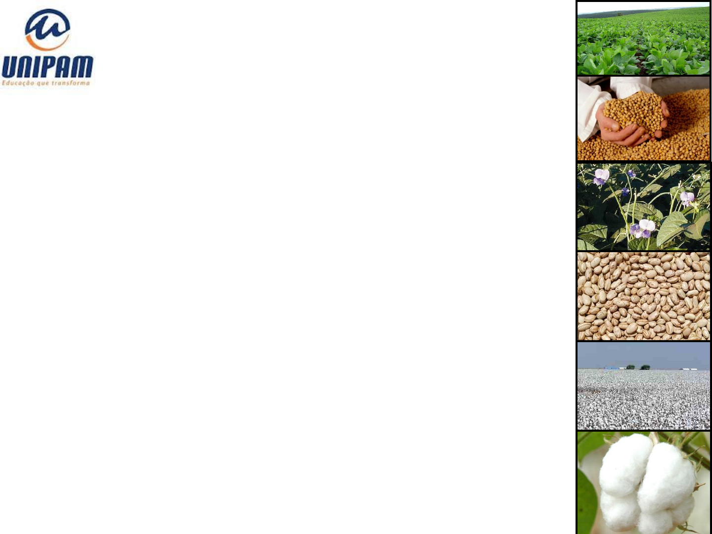 Eng. Agrônomo M.Sc. Luís Henrique Soares Patos de Minas, fevereiro de 2016 CULTURAS DE SOJA, FEIJÃO E ALGODÃO MORFOFISIOLOGIA E FENOLOGIA DE SOJA Escala fenológica da soja - Fehr e Caviness (1977) VE – Emergência VC – Cotilédones completamente abertos V1 – Primeiro nó: folhas unifolioladas desenvolvidas V2 – Segundo nó: segundo trifólio desenvolvido V3 – Terceiro nó: segundo trifólio desenvolvido Vn – enésimo nó: enésimo trifólio desenvolvido R1 – Início do florescimento R2 – Florescimento pleno R3 – Início da formação das vagens R4 – Vagens completamente desenvolvidas R5 – Início do enchimento de grãos R6 – Grão cheio R7 – Início da maturação R8 – Maturação plena POTENCIAL Fatores que definem a produtividade Radiação, temperatura, fenologia, arquitetura e aspectos fisiológicos das plantas ATINGÍVEL REAL Fatores que limitam a produtividade Água (excesso ou falta) Nutrientes – nitrogênio, fósforo (excesso ou falta) Fatores que reduzem a produtividade Plantas daninhas, pragas, doenças, poluentes, calamidades Níveis de produtividade 0 100% Fase I Formação de órgãos para absorção de nutrientes e fotossíntese Fase II Formação de estrutura vegetativa Fase III Produção, acúmulo e transporte de reservas Fases de desenvolvimento da soja Murata (1969) Componentes de produção Murata (1969) X X Produção de sementes X X Número de sementes Peso de sementes Número de vagens Número de sementes por vagem Número de flores Taxa de formação de vagens Número de nós Número de hastes por planta Densidade de plantas Germinação Morfologia da semente Brasil (2009) Embrião Endosperma Camada de aleurona GA α-amilase β amilase ativa Protease β amilase inativa Amido Glicose Germinação da semente H2O Fraco Forte Deterioração da semente Seco Úmido Germinação Semeadura Taxa de germinação Taxa de crescimento radicular inicial Crescimento da parte aérea Junção radícula-hipocótilo Germinação da semente Finch-Savage; Bassel (2016) Fatores que afetam a emergência: profundidade de semeadura Silva et al. (2004) P1: 1 cm P2: 4 cm P3: 3 cm Fatores que afetam a germinação de sementes: dano mecânico Pinto (2006) Imagem de semente obtida por meio do teste raios X. apresentando dano mecânico na região do eixo embrionário e dos cotilédones (a), originando uma planta anormal (b). Tratamento de sementes: proteção Tratamento de sementes: controle de doenças Cancro da haste (Diaporthe phaseolorum var caulivora) Crestamento foliar de cercóspora (Cercospora kikuchii) em folíolo (a) e mancha púrpura em sementes (b). Sintomas de mancha alvo (Corynespora cassiicola) Sintomas de rizoctoniose (Rihzoctonia solani) Sintomas de antracnose em soja (Colletrotrichum truncatum) Seca da haste e da vagem (Phomopsis sojae) Tratamento de sementes: controle de pragas Tamanduá da soja (Sternechus subsignatus) Coró da soja (Phyllophaga cuyabana) Lagarta elasmo (Elasmopalpus lignosellus) Lagarta rosca (Agrotis ipsilon) Percevejo castanho (Scaptocoris castanea) Torrãzinho (Aracanthus mourei) Larva alfinete (Diabrotica speciosa) Fatores que afetam a germinação de sementes: danos por percevejo Fatores que afetam a germinação de sementes: danos por percevejo Fatores que afetam a germinação de sementes: danos por percevejo Corrêa-Ferreira et al (2009) Fatores que afetam a germinação de sementes: danos por percevejo Goulart (2005) Fatores que afetam a germinação de sementes: danos por percevejo Pinto (2006) Imagem de semente obtida por meio do teste raios X. apresentando danos por percevejos na região do eixo embrionário e dos cotilédones (a), originando uma planta anormal (b). Rhizoctonia solani: plântulas com sintomas típicos (lesões deprimidas marrom-avermelhadas no hipocótilo - tombamento de pós-emergência). Inoculação em casa de vegetação. Goulart (2005) Fatores que afetam a germinação de sementes: patôgenos Tempo Alto vigor Baixo vigor Semente Plântula Vigor de sementes Finch-Savage; Bassel (2016) Tempo de armazenamento P o rc e n ta g e m d e g e rm in a ç ã o Vigor de sementes Finch-Savage; Bassel (2016) P o rc e n ta g e m d e g e rm in a ç ã o Tempo após a semeadura Vigor de sementes: germinação Finch-Savage; Bassel (2016) A D C B Alto vigor Baixo vigor A D C B Alto vigor Baixo vigor P o rc e n ta g e m d e g e rm in a ç ã o Aumento do estresse →→→→→ Vigor de sementes: estresse Finch-Savage; Bassel (2016) Vigor: performance da semente Finch-Savage; Bassel (2016) Genética Ambiente Temperatura, água Temperatura, água, oxigênio Temperatura, água, oxigênio, solo Germinação completa Emergência da plântula Embebição Colheita Armazenamento Desenvolvimento Fertilização Aumento do vigor Deterioração Reparo Moléculas chave Ruptura da parede celular Crescimento radicular Crescimento da parte aérea Planta mãe Planta mãe: tegumento Umidade necessária para germinação MF Vigor: crescimento da planta Baixo vigor Alto vigor Foto: Dr. José B. França-Neto, Embrapa/Soja, Brasil. Marcos Filho (2015) Crescimento inicial Crescimento radicular: estratégias Manejo do solo Características químicas e físicas Tratamento de sementes Aplicações no sulco de semeadura Aplicações foliares iniciais? Bioestimulantes NO3 - N2 NO3 - NH4 + NO3 - NO3 - Nitrato redutase Nitrito redutase NH4 + Aa Assimilação de N Glutamato G S 2-Oxoglutarato 2 glutamatos G O G A T + NH4 + NO2 - + + Glutamato GDH Glutamina 2-Oxoglutarato NH4 + N2 N2 N2 NH3 Nitrogenase Ureídeos 16 ATP 7 ATP 3 ATP 2 ATP NO3 - N2 NO3 - NO3 - N2 NO3 - NO3 - Tratamento de sementes: fixação biológica do nitrogênio Fixação biológica do nitrogênio Raiz Tecido radicular infectado CH2O 16 ADP + 16Pi N2 + 8H + 2NH3 + Fered Feox MoFeox MoFeox MoFered Fe proteína MoFe proteína Fered Fered Feox 16 ATP O2 Lb O2 O2 N2 H+ Sacarose Glicose Fosfoenolpiruvato TCA Glutamina Glutamato Purinas Ácido úrico Alantoína Ácido alantó