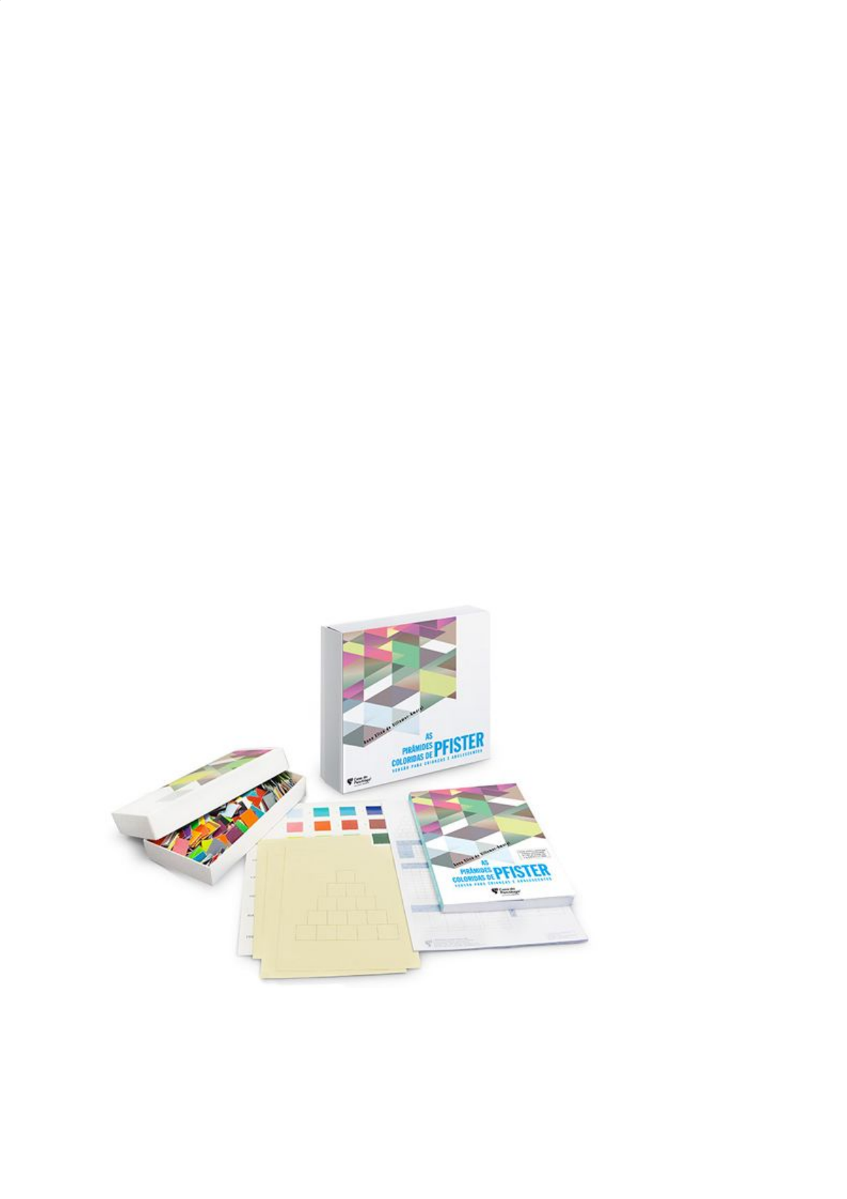 FICHA TÉCNICA As Pirâmides Coloridas de Pfister Versão Para Crianças e Adolescentes Max Pfister, ano de 1950, Suíça. PADRONIZAÇÃO BRASILEIRA: Anna Elisa de Villemor-Amaral EDITORA: Casa do Psicólogo, 2012. PRAZO DE ESTUDOS SATEPSI: Prazo de estudos de normatização até 30/11/2028; Prazo de estudos de validade até 30/11/2033. FINALIDADE: Clínica, educacional e pesquisa. INDICAÇÕES: Crianças e adolescentes. FAIXA DE APLICAÇÃO: 6 a 14 anos. FORMA DE APLICAÇÃO: Individual. TEMPO: Em média de 20 minutos. MATERIAL DO TESTE E APLICAÇÃO: 1 Manual, 1 Jogo com quadrículos coloridos, 1 conjunto de 3 cartelas com esquema de pirâmides, 1 mostruário de cores e 1 Bloco de respostas 25 folhas. IMAGEM DO MANUAL E MATERIAL: VÍDEO EDITORA: ARTIGOS CIENTÍFICOS [MAIS ATUALIZADOS POSSÍVEL = 2018 A 2020] DESCRIÇÃO DETALHADA DA TAREFA