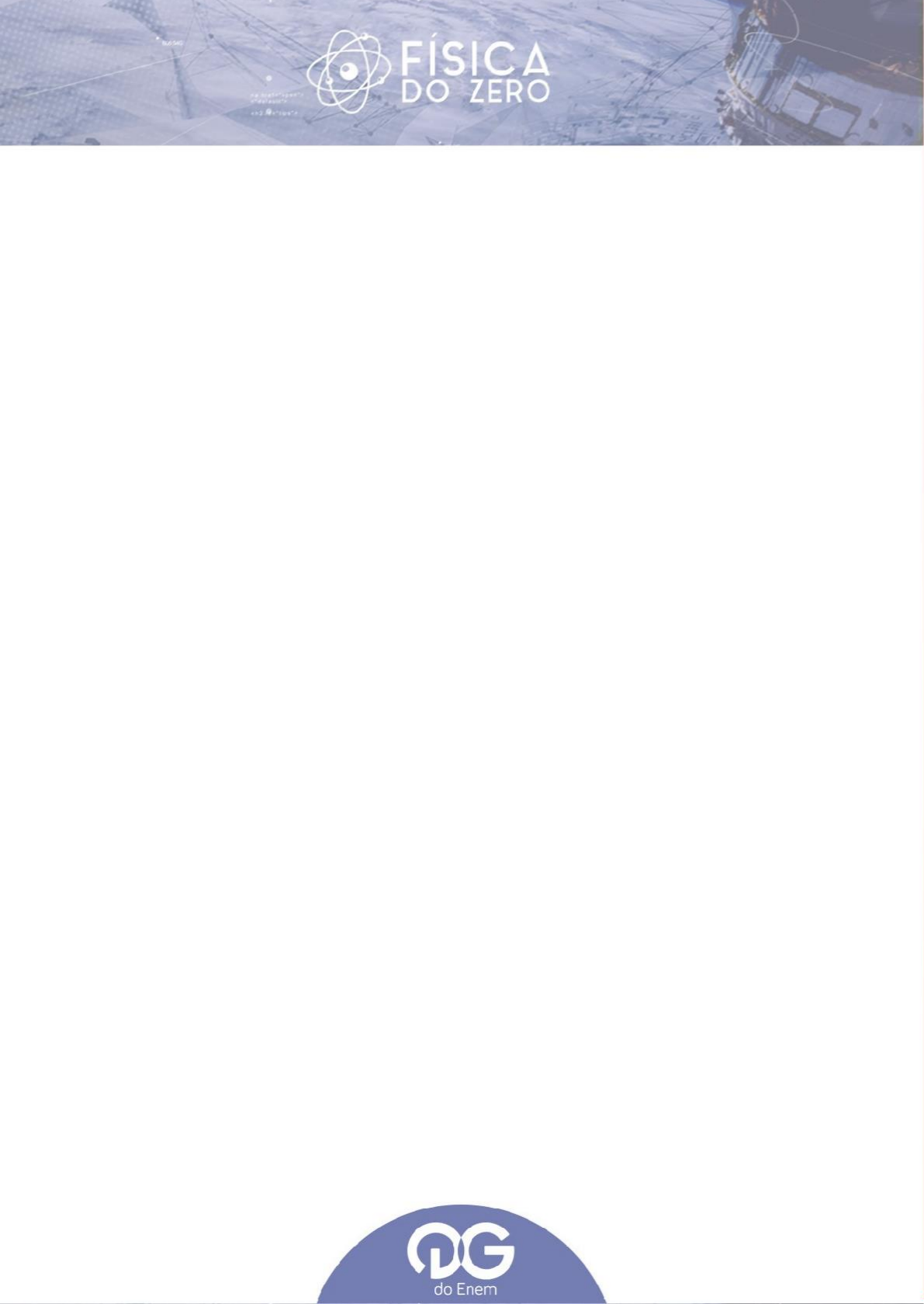 Física do Zero Prof. Gabriel Gregon Aula 21 – Acústica e suas aplicações 1) A sirene de um caminhão de bombeiros é escutada nas situações A, B e C. Ordene as frequências de som ouvidas, em ordem decrescente de valor, quando o caminhão está se movendo. a) em direção ao ouvinte a 30km/h; b) em direção ao ouvinte a 50km/h; c) para longe do ouvinte a 20km/h; 2) Quando você toca a buzina de seu carro enquanto está se dirigindo em direção a um ouvinte, este escuta um som com frequência aumentada. O ouvinte ouviria uma frequência aumentada se estivesse também em um carro, movendo-se no mesmo sentido e com a mesma rapidez? 3) Existe um efeito Doppler apreciável quando o movimento da fonte está em uma direção perpendicular à do ouvinte? Explique. 4) Como o efeito Doppler ajuda a polícia a detectar motoristas que se movem muito rapidamente? 5) Os astrônomos verificam que a luz emitida por um elemento particular em uma das bordas do Sol tem uma frequência ligeiramente maior do que a da luz emitida por um elemento na borda oposta. O que essas medidas nos dizem a respeito do movimento do Sol? 6) O som da fonte A tem frequência duas vezes maior do que a fonte B. Compare os comprimentos de onda do som produzido por essas fontes. 7) O que acontecerá ao comprimento de onda do som se a frequência aumentar? 8) Uma corda esticada entre duas paredes vibra como mostra a figura: Sabendo que a velocidade de propagação do som no ar é vs 5 340 m/s e que a velocidade de propagação de ondas transversais na corda é vC 5 500 m/s, determine: a) a frequência do som emitido pela corda; b) o comprimento de onda do som emitido pela corda; c) a frequência do som fundamental que essa corda pode emitir. 9) A quinta corda solta do violão corresponde à nota si (frequência fundamental igual a 981 Hz). Se essa corda for presa no quinto trasto, diminuindo assim o comprimento da corda vibrante, obtém-se a nota mi aguda (frequência fundamental igual a 1 308 Hz). Sobre o comprimento da parte vibrante da corda si (l), que vibra na frequência da nota mi aguda, expresso em função do comprimento da corda solta (L), é correto afirmar: a) 1 2 l L b) 2 3 l L c) 3 4 l L d) 4 5 l L e) 5 6 l L GABARITO 1) A sirene de um caminhão de bombeiros é escutada nas situações A, B e C. Ordene as frequências de som ouvidas, em ordem decrescente de valor, quando o caminhão está se movendo. a) em direção ao ouvinte a 30km/h; b) em direção ao ouvinte a 50km/h; c) para longe do ouvinte a 20km/h; Solução Quando uma fonte se move de maneira a se aproximar de um observador, há um aumento na frequência percebida. Ao passo que, quando ela se afasta, há uma diminuição da mesma. Aplicando a expressão que calcula a intensidade dessas frequências devido ao movimento relativo entre observador e fonte, temos: percebida emitida som O som F V V f f V V Agora, precisamos orientar corretamente a expressão com os devidos sinais de “+” ou “-“, lembrando que esses devem obedecer o referencial de Doppler. Se mover em direção ao ouvinte é se aproximar do mesmo. Assim, veja que a velocidade da fonte está se opondo a orientação do referencial de Doppler (sempre do observador para a fonte). Desse modo, atribuimos a ela um sinal de “-“. Como, além disso, o observador está parado, então 0OV . percebida emitida percebida emitida 0som som som F som F V V f f f f V V V V Assim, repare que a frequência percebida aumenta conforme maior for a velocidade da fonte (VF). No entanto, quando há afastamento entre observador e fonte (item c), há uma redução da frequência percebida. A expressão que calcula a intensidade da frequência percebida, neste caso, ficará: Finalmente, pelo o que foi concluido acima, podemos escrever que: b a cf f f percebida emitida percebida emitida 0som som som F som F V V f f f f V V V V Dica do QG Uma maneira bem simples de resolver esse problema é pensar no caso da ambulância. Caso não haja aproximação nem afastamento entre, por exemplo, você e uma ambulância, você escutará o som emito por sempre igual. Conforme a ambulância se aproxima de você, maior é a frequência do som observado. Pensando por esse lado, quando maior for a velocidade de aproximação, maior será a frequência observada, pois antes essa valia zero (ambulância parada na sua frente), enquanto em outro caso ela se aproxima de você (velocidade de aproximação maior que zero). Aplicando um raciocínio análogo, quando há afastamento, naturalmente, a frequência observada será menor que aquela emitida. 2) Quando você toca a buzina de seu carro enquanto está se dirigindo em direção a um ouvinte, este escuta um som com frequência aumentada. O ouvinte ouviria uma frequência aumentada se estivesse também em um carro, movendo-se no mesmo sentido e com a mesma rapidez? Solução A mudança na percepção da frequência de uma onda devido ao efeito Doppler só existe quando há movimento relativo (aproximação ou afastamento) entre o observador e a fonte. Quando o observador encontra-se parado em relação a fonte, não há alteração na frequência observada por esse. Como ambos trafegam na mesma direção e sentido, os carros se enxergam como se estivessem parados um em relação ao outro. Desse modo, a frequência observada da buzina é a mesma. 3) Existe um efeito Doppler apreciável quando o movimento da fonte está em uma direção perpendicular à do ouvinte? Explique Solução Caso a onda emitida seja unidimensional, de fato, se os movimentos forem perpendiculares entre sí, não haverá efeito Doppler considerável (pois não haverá afastamento nem aproximação) . No entanto, caso ela seja bidimensional (se propaga em duas direções), o efeito Doppler se fará presente independente de estarem em movimentos perpendiculares entre si. 4) Como o efeito Doppler ajuda a polícia a detectar motoristas que se movem muito rapidamente? Solução Os policiais usam aparelhos que em