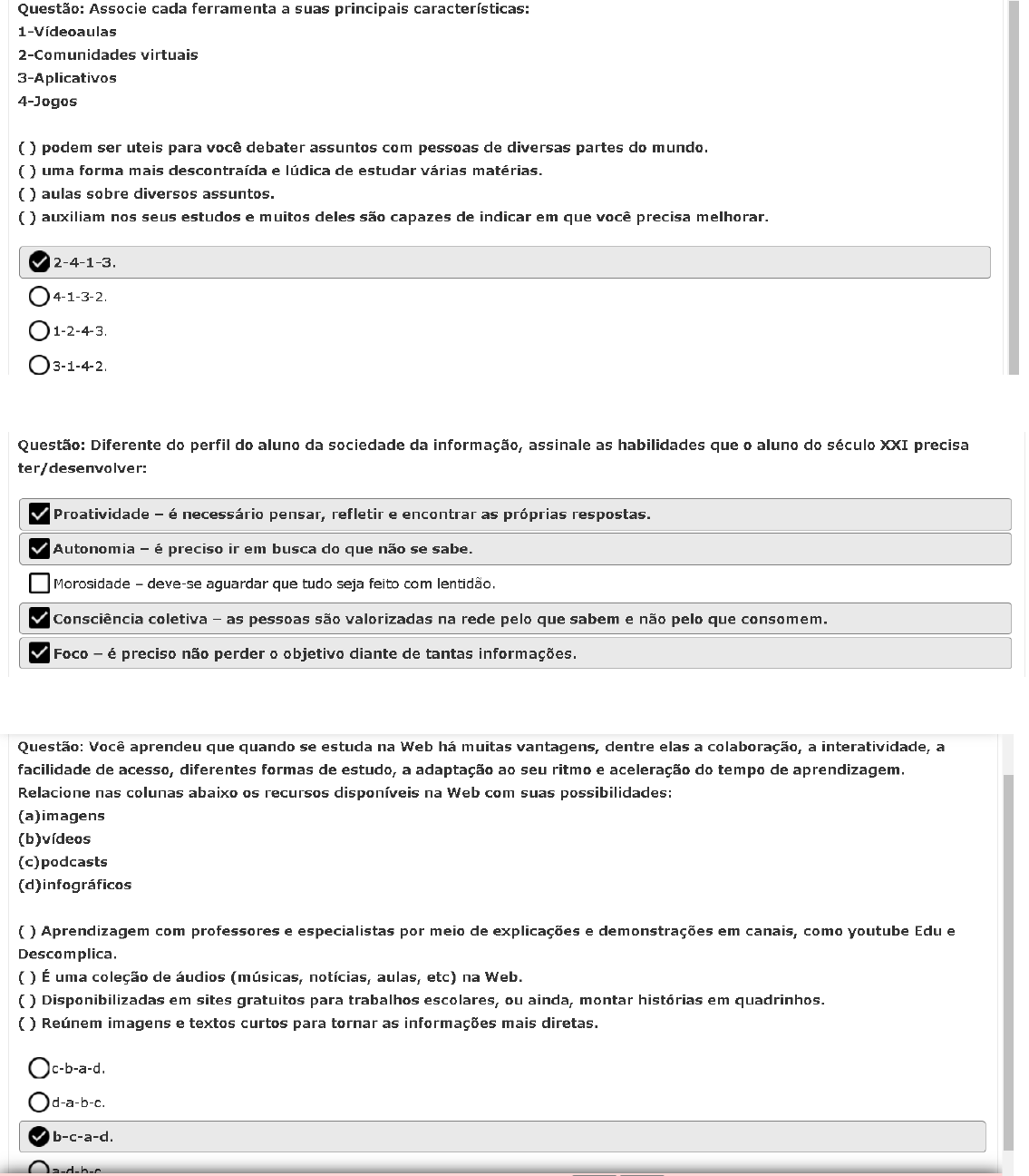 GABARITO - Aprendendo na Web – FUNDAÇÃO BRADESCO 1- 2- 3- 4- 5- 6- 7- 8- 9- 10- ENSINANDO COM A WEB TEORIAS DE APREDIZAGEM: EVOLUÇÃO DA WEB: Qual melhor recurso da internet para o ensino: AUTONOMIA: PESQUISA NA WEB: INTELIGÊNCIA COLETIVA: