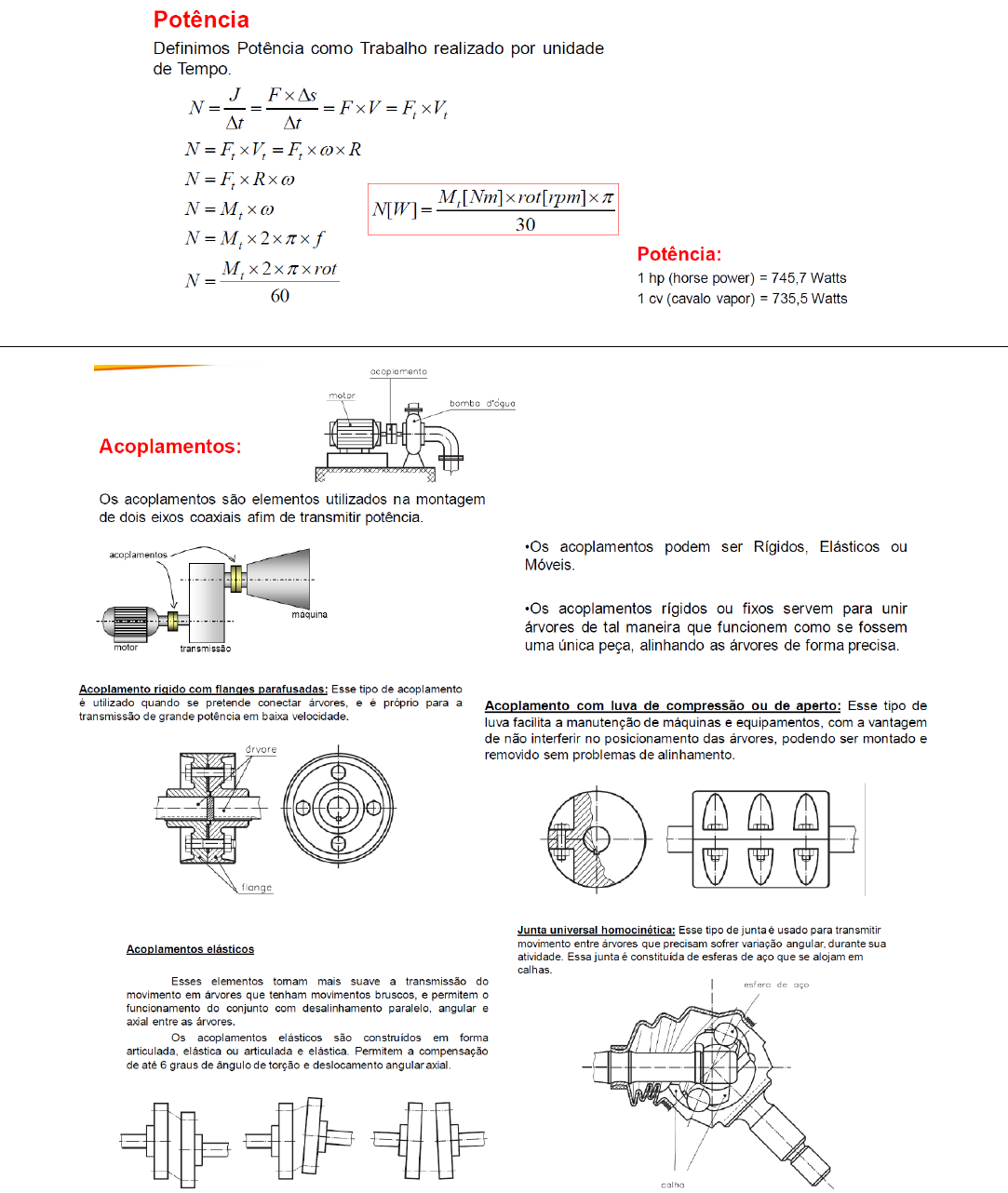 Transmissão de Potência Eixos de transmissão ou simplesmente eixos são frequentemente empregados para transmitir movimento de rotação gerado por máquinas rotativas (motor elétrico ou de combustão interna). Quando usados para essa finalidade, são submetidos a torque que dependem da potência gerada pela máquina e da velocidade angular do eixo. EXERCÍCIO 1 - ACOPLAMENTO EXERCÍCIO 2 - CHAVETA