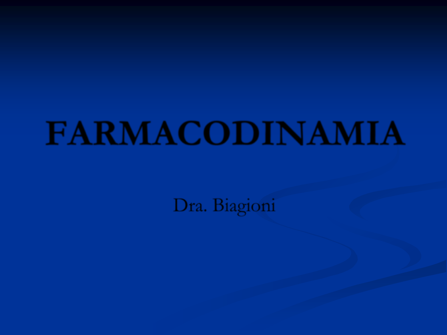 FARMACODINAMIA Dra. Biagioni FARMACOLOGÍA GENERAL FARMACODINAMIA FARMACODINAMIA: Estudia el efecto químico sobre el organismo, el mecanismo de acción y los factores que modifican los efectos de los medicamentos. DURACIÓN-E-INTENSIDAD-DEL-EFECTO: • Cantidad del fármaco administrado. • Niveles plasmáticos alcanzados. • Tiempo durante el que los niveles plasmáticos se mantienen. Velocidad de absorción de la vía elegida. Velocidad de eliminación. Distribución del fármaco. Grado de biotransformación que el fármaco sufra en el organismo. FARMACOLOGÍA GENERAL FARMACODINAMIA Dosis del fármaco administrado Concentración del fármaco en la circulación sistémica BIODISPONIBILIDAD Efecto Farmacológico Respuesta clínica Toxicidad Eficacia Utilidad DEPURACIÓN DISTRIBUCIÓN Concentración del fármaco en el sitio de acción Fármaco metabolizado o excretado Fármaco en los tejidos de distribución FARMACOCINÉTICA FARMACODINAMIA FARMACOLOGÍA GENERAL FARMACODINAMIA ADMINISTRACIÓN DE DOSIS ÚNICA: Concentraciones plasmáticas, en dosis única, según la vía de absorción FARMACOLOGÍA GENERAL FARMACODINAMIA VIDA MEDIA O SEMIVIDA: Se define como el tiempo que tarda en reducirse la concentración plasmática de un fármaco a la mitad. Mayor semivida ► Mayor duración del efecto FARMACOLOGÍA GENERAL FARMACODINAMIA ADMINISTRACIÓN DE DOSIS REPETIDAS: Intervalos entre dosis adecuados Equilibrio dinámico Niveles plasmáticos estables FARMACOLOGÍA GENERAL FARMACODINAMIA ADMINISTRACIÓN DE DOSIS REPETIDAS: Intervalos entre dosis muy cortos Efecto acumulativo Niveles sobre-terapéuticos que pueden llegar a ser tóxicos FARMACOLOGÍA GENERAL FARMACODINAMIA ADMINISTRACIÓN DE DOSIS ÚNICA: Intervalos entre dosis muy largos Concentraciones con profundos “valles” sub-terapéuticas No se obtendrá un efecto mantenido FARMACOLOGÍA GENERAL FARMACODINAMIA MECANISMO DE ACCIÓN DE LOS FÁRMACOS: La mayor parte de los fármacos actúan sobre RECEPTORES específicos, situados en la membrana celular o en el interior de la célula, produciendo un efecto determinado. RECEPTOR: Macromolécula protéica que existen en la célula como mecanismo fisiológico de regulación de la actividad celular. Por tanto, los receptores reaccionan con sustancias endógenas (neurotransmisores, hormonas) produciendo efectos fisiológicos. Ejemplos: Receptores Alfa, Beta, Nicotínico, Muscarínico, H1, H2, Mu, Delta, y un largo etc. FARMACOLOGÍA GENERAL FARMACODINAMIA FÁRMACO AGONISTA: Produce un efecto parecido a la estimulación fisiológica por la sustancia endógena correspondiente. “Mimetizan” el efecto de los transmisores fisiológicos. FÁRMACO ANTAGONISTA: Reacciona con los receptores produciendo su bloqueo e impidiendo la reacción con los transmisores endógenos, por lo que los efectos observados serán los contrarios. FARMACOLOGÍA GENERAL FARMACODINAMIA Noradrenalina (Neurotransmisor) Adrenalina (Hormona) RECEPTORES α y β Mantienen el Tono Vascular Frecuencia Cardiaca Contractilidad Cardiaca, etc. JUGO GÁSTRICO CIMETIDINA RANITIDINA RECEPTOR H2 ANTAGONISMO COMPETITIVO FARMACOLOGÍA GENERAL FARMACODINAMIA MECANISMOS DE PRODUCCIÓN DEL EFECTO CELULAR: 1. Apertura o cierre de los canales iónicos del Na, Ca, K y Cl en la membrana celular. (Despolarización y transmisión del potencial de acción en la estimulación nerviosa y en la contracción muscular). 2. Modificaciones de la actividad enzimática desde el receptor, alterando numerosas reacciones químicas intracelulares. 3. Modificación de las estructuras de las proteínas por alteración de la síntesis proteica. Inhibición enzimática directa, bloquean reacciones metabólicas o actúan como antimetabolitos (quimioterapia del cáncer). FARMACOLOGÍA GENERAL FARMACODINAMIA FACTORES QUE MODIFICAN EL EFECTO DE LOS FÁRMACOS: 1. Errores en la administración de las dosis o falta de cumplimiento por parte del paciente (Tratamientos prolongados). 2. Edad. Niños y ancianos más susceptibles a la acción de los fármacos. 3. Peso y grado de deshidratación. 4. Administración con alimentos o con el estómago vacío. 5. Insuficiencia renal, Insuficiencia hepática. 6. Fenómeno de Tolerancia. Habituación al fármaco. 7. Disminución de las proteínas plasmáticas. 8. Trastornos del equilibrio ácido-básico. Ej.: Adrenalina. 9. Interacciones medicamentosas. 10. “Efecto Placebo”. FARMACOLOGÍA GENERAL FARMACODINAMIA TOXICIDAD DE LOS FÁRMACOS: - Todos los fármacos, en mayor o menor grado, tienen efectos tóxicos. - Objetivo: Obtención de productos eficaces y menos tóxicos. - Establecimiento de efectos tóxicos y las dosis a las cuales aparecen. - Índice Terapéutico: Representa la relación entre las dosis a las que se alcanza el efecto terapéutico y las dosis a las que aparece la toxicidad. Es el “margen de seguridad” de un fármaco. Índice terapéutico elevado = Margen de seguridad amplio = Riesgo de toxicidad bajo. Viceversa. - Efectos tóxicos no dependientes de la dosis: Fenómenos de hipersensibilidad del sistema inmunitario, Efecto tóxico acompaña al efecto terapéutico (Citostáticos). - Efecto adverso: Efecto secundario o colateral, difícilmente evitable, que se produce al recibir el fármaco en dosis terapéuticas y no tóxicas. FARMACOLOGÍA GENERAL FARMACODINAMIA TOXICIDAD DE LOS FÁRMACOS: Continuación.- - Efecto adverso sería el efecto no deseado con dosis terapéuticas y Toxicidad el efecto indeseable aparecido con dosis excesivas. Ejemplo: Cefalea por nitritos. Coma por barbitúricos. - Uso prudente para evitar la toxicidad: 1. Se utilizarán, primero, los productos menos tóxicos. 2. Se evitará, en lo posible, la asociación de fármacos que puedan interactuar entre sí o potenciar su toxicidad. 3. Sólo se administrarán medicamentos cuando haya una indicación estricta. FARMACOLOGÍA GENERAL FARMACODINAMIA MANIFESTACIONES GRAVES Y FRECUENTES DE LOS FÁRMACOS: 1. Fenómenos de hipersensibilidad (alergia)