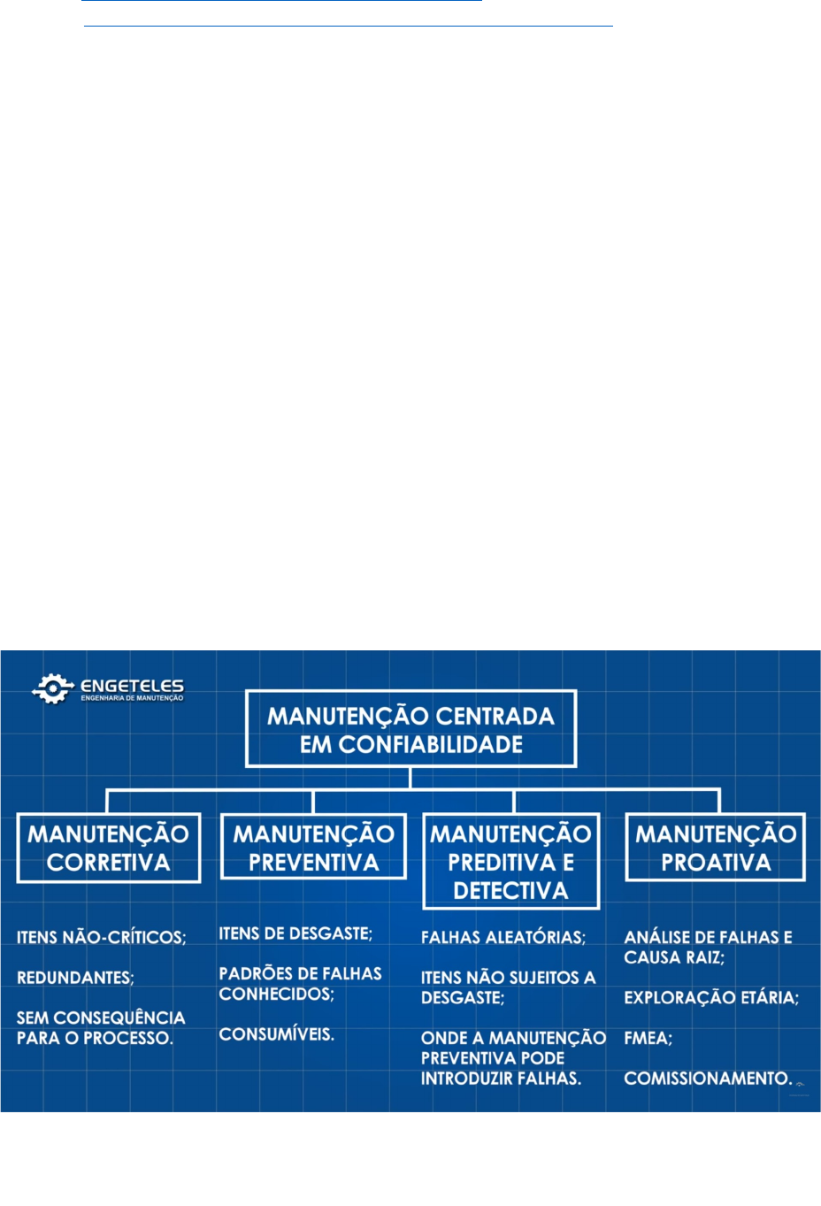 Vídeo: https://www.youtube.com/watch?v=u1QJ8p1nF9o Artigo: https://engeteles.com.br/manutencao-centrada-na-confiabilidade/ Manutenção Centrada em Confiabilidade Nasceu nas forças armadas americanas, se difere for ser normalizada: SAE JA 1011 e IEC 60300-3-11; O RCM – Reliability Centered Maintenance, em português, Manutenção Centrada na Confiabildiade pode ser definida como uma política de manutenção estruturada para selecionar as atividades de manutenção necessárias para manter a disponibilidade e confiabilidade de qualquer processo produtivo, de modo que se reduza ao máximo possível o LCC – Life Cyle Cost. Objetivo global: Redução do LCC Life Cycle Cost (custo de vida do ativo); LCC – Life Cycle Cost é o Custo do Ciclo de Vida do Ativo. Pode-se resumir como a soma de todos os custos com o ativo desde a sua especificação, projeto, instalação, comissionamento, operação e manutenção até o seu descomissionamento, desinstalação e descarte. Ou seja, pode-se dizer que a Manutenção Centrada na Confiabilidade consiste na seleção de estratégias de manutenção para cada ativo, visando manter um determinado processo. Isso torna a MCC (ou RCM – como prefira chamar) o modelo de manutenção mais rentável que existe. Pelo fato de ser feito apenas o que deve ser feito para manter o ativo e não o que pode ser feito. O RCM Se divide em 4 tipos de manutenção: · Manutenção Proativa: Consiste na otimização contínua do processo e de equipamentos através da experiência adquirida com os eventos de falha e/ou manutenção. O RCM consegue reduzir o custo de vida quando essas 4 manutenções são aplicadas de maneira correta; O foco do RCM é manter a função do ativo. Então, para isso, o primeiro passo é entender a função do ativo. Dentro de um programa de Manutenção Centrada na Confiabilidade as ações de manutenção devem ter três objetivos básicos: 1. Diminuir ou eliminar a chance de ocorrência de uma falha. 2. Diminuir ou eliminar a severidade de uma falha. 3. Aumentar a chance de detecção da falha em estágio inicial. Perceba que o objetivo número 1, atua na ocorrência da falha. O objetivo número 2 atua no efeito da falha e o objetivo número 3 atua na detecção da falha. Para descobrir os três tópicos acima, é necessário implantar o FMEA – Análise de Modos de Falhas e Efeitos (através deles que é descoberto). O FMEA vai dar um indicador chamado RPN – Risc Priority Number (número de prioridade e risco) de cada falha. Através do RPN, vou determinar qual das 4 manutenções acima vou usar para o ativo, levando em consideração a criticidade dos ativos. Não podemos ter mais que 20% dos ativos com criticidade A. Colocar 40% para B e 40% para C. Desta forma, diminuímos o LCC Lyfe Cycle Cost (Custo do ciclo de vida) e aumentamos a confiabilidade e disponibilidade. Até a Segunda Geração da Manutenção o foco da manutenção era preservar o equipamento. Com a chegada da Manutenção Centrada na Confiabilidade o foco passou a ser preservar as funções dos equipamentos e atuar apenas conforme os Modos de Falha, proporcionando uma forma de garantir a disponibilidade e confiabilidade necessárias para o processo, e o melhor de tudo, gastando o mínimo possível. A Quarta Geração da Manutenção, com nascimento nos anos 2000, fica marcada principalmente pela elevação da Mantenabilidade dos ativos por parte dos fabricantes, pelos seus níveis de autonomia e pela adoção de estratégias de se realizar “menos com menos” na busca por índices de Manutenção de Classe Mundial. O que devo saber para trabalhar com Manutenção Centrada em Confiabilidade? Existem dois itens cruciais para uma boa implantação da política da Manutenção Centrada na Confiabilidade e que todos os profissionais de manutenção que desejem trabalhar com essa política devem dominar e aplicar: 1. FMEA 2. Matriz de Criticidades