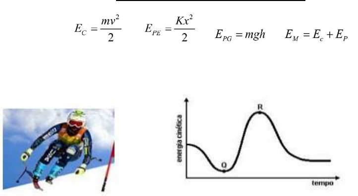 Segunda Lista: Energia Mecânica 01-(UFMG-MG) Rita está esquiando numa montanha dos Andes. A energia cinética dela em função do tempo, durante parte do trajeto, está representada neste gráfico: Os pontos Q e R, indicados nesse gráfico, correspondem a dois instantes diferentes do movimento de Rita. Despreze todas as formas de atrito. Com base nessas informações, é CORRETO afirmar que Rita atinge a) velocidade máxima em Q e altura mínima em R. b) velocidade máxima em R e altura máxima em Q. c) velocidade máxima em Q e altura máxima em R. d) velocidade máxima em R e altura mínima em Q. 02-(PUC-RJ) Determine a massa de um avião viajando a 720km/h, a uma altura de 3000 m do solo, cuja energia mecânica total é de 70,0.106 J. Considere a energia potencial gravitacional como zero no solo. (g=10m/s2) a) 1000 kg. b) 1400 kg. c) 2800 kg. d) 5000 kg e) 10000 kg. 03-(PUC-RJ) Uma pedra, deixada cair de um edifício, leva 4s para atingir o solo. Desprezando a resistência do ar e considerando g = 10 m/s2, escolha a opção que indica a altura do edifício em metros. a) 20 b) 40 c) 80 d) 120 e) 160 04-(PUC-MG) Um ciclista desce uma rua inclinada, com forte vento contrário ao seu movimento, com velocidade constante. Pode-se afirmar que: a) sua energia cinética está aumentando. b) sua energia potencial gravitacional está diminuindo c) sua energia cinética está diminuindo. d) sua energia potencial gravitacional é constante. 05-(Ufpe) Com base na figura a seguir, calcule a menor velocidade com que o corpo deve passar pelo ponto A para ser capaz de atingir o ponto B. Despreze o atrito e considere g = 10 m/s2. 06-(PUC-RS) Um bloco de 4,0 kg de massa, e velocidade de 10m/s, movendo-se sobre um plano horizontal, choca-se contra uma mola, como mostra a figura: Sendo a constante elástica da mola igual a 10000N/m, o valor da deformação máxima que a mola poderia atingir, em cm, é a) 1 b) 2 c) 4 d) 20 e)40 07-(UNICAMP-SP) Um brinquedo que muito agrada às crianças são os lançadores de objetos em uma pista. Considere que a mola da figura a seguir possui uma constante elástica k = 8000 N/m e massa desprezível. Inicialmente, a mola está comprimida de 2,0 cm e, ao ser liberada, empurra um carrinho de massa igual a 0,20 kg. O carrinho abandona a mola quando esta atinge o seu comprimento relaxado, e percorre uma pista que termina em uma rampa. Considere que não há perda de energia mecânica por atrito no movimento do carrinho. a) Qual é a velocidade do carrinho quando ele abandona a mola? b) Na subida da rampa, a que altura o carrinho tem velocidade de 2,0 m/s? 08-(UFMG-MG) Daniel e André, seu irmão, estão parados em um tobogã, nas posições mostradas nesta figura: Daniel tem o dobro do peso de André e a altura em que ele está, em relação ao solo, corresponde à metade da altura em que está seu irmão. Em um certo instante, os dois começam a escorregar pelo tobogã. Despreze as forças de atrito. É CORRETO afirmar que, nessa situação, ao atingirem o nível do solo, André e Daniel terão a) energias cinéticas diferentes e módulos de velocidade diferentes. b) energias cinéticas iguais e módulos de velocidade iguais. c) energias cinéticas diferentes e módulos de velocidade iguais. d) energias cinéticas iguais e módulos de velocidade diferentes. 09-(Ufpe-PE) Uma bolinha de massa m = 200 g é largada do repouso de uma altura h, acima de uma mola ideal, de constante elástica k = 1240 N/m, que está fixada no piso (ver figura). Ela colide com a mola comprimindo-a por x = 10 cm. Calcule, em metros, a altura inicial h. Despreze a resistência do ar.(g=10m/s2) 10-(Ufpb) Um bloco de 1 kg, preso a uma mola de constante elástica 800 N/m e massa desprezível, oscila sobre um plano horizontal sem atrito com amplitude A = 0,5 m. No instante em que a energia cinética do bloco se iguala à energia potencial da mola, a velocidade do bloco vale: a) 10 m/s b) 20 m/s c) 30 m/s d) 40 m/s e) 50 m/s 11-(UFRS-RS) Na figura, representamos uma pista em que o trecho final XYZD é um arco de circunferência. Larga-se o carrinho de massa 0,2kg no topo da pista. Despreze os atritos, considere g=10m/s2 e determine: a) a energia cinética no ponto X b) o trabalho realizado para ir de X a Y c) a velocidade mínima com que o carrinho deve ter para passar pelo ponto Z, sem perder contato com a pista. 12- (Ufam) Uma bolinha de massa m é abandonada do ponto A de um trilho, a uma altura H do solo, e descreve a trajetória ABCD indicada na figura abaixo. A bolinha passa pelo ponto mais elevado da trajetória parabólica BCD, a uma altura h do solo, com velocidade cujo módulo vale VC=10m/s, e atinge o solo no ponto D com velocidade de módulo igual a VD=20m/s. Podemos afirmar que as alturas referidas no texto valem: (g=10m/s2) a) H=19m; h=14m b) H=18m; h=10m c) H=12m; h=4m d) H=12m; h=15m e) H=20m; h=15m 13-(FUVEST-SP) No ”salto com vara”, um atleta corre segurando uma vara e, com perícia e treino, consegue projetar seu corpo por cima de uma barra. Para uma estimativa da altura alcançada nesses saltos, é possível considerar que a vara sirva apenas para converter o movimento horizontal do atleta (corrida) em movimento vertical, sem perdas ou acréscimos de energia. Na análise de um desses saltos, foi obtida a sequência de imagens reproduzida acima. Nesse caso, é possível estimar que a velocidade máxima atingida pelo atleta, antes do salto, foi de, aproximadamente.*Desconsidere os efeitos do trabalho muscular após o início do salto. a) 4 m/s b) 6 m/s c) 7 m/s d) 8 m/s e) 9 m/s 14-(CESGRANRIO-RJ) Uma esfera de massa 0,10kg rola sobre o perfil da montanha russa mostrado na figura abaixo. No instante representado, ela se move para baixo (veja seta) com energia cinética igual a 0,10J. Embora o atrito seja muito pequeno, a bola acabará parando na posição: (g=10m/s2) a) 1 b) 2 c) 3 d) 4 e) 5 15-(FGV-SP) Ao passar pelo ponto A, a uma altura de 3,5m do nível de referência B, uma esfe