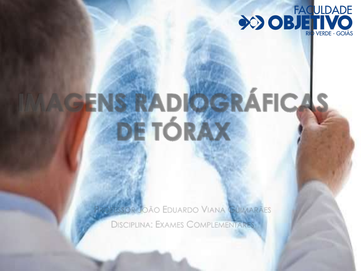 IMAGENS RADIOGRÁFICAS DE TÓRAX PROFESSOR JOÃO EDUARDO VIANA GUIMARÃES DISCIPLINA: EXAMES COMPLEMENTARES AVALIAÇÃO DA TÉCNICA RADIOGRÁFICA • PARA ANALISAR UM RAIO X DE TÓRAX, DEVEMOS VERIFICAR A QUANTODADE DA TÉCNICA. PARA ISSO DEVEMOS ANALISAR: 1 – AS RADIOGRAFIAS QUE UTILIZAM ENTRE 120 A 150 KVP APRESENTAM MELHORES RESULTADOS 2 – A MELHOR DISTÂNCIA PARA UMA RADIOGRAFIA ADEQUADA ESTÁ POR VOLTA DE 1,80M 3 – DEVE SER OBSERVADA APENAS OS PRIMEIROS ESPAÇOS INTERVERTEBRAIS TORÁCICOS (T1 A T4), SE FOR POSSÍVEL SER OBSERVADO MAIS VÉRTEBRAS, A TÉCNICA DO RAIO X ESTÁ ERRADA 4 – DEVE SER OBSERVADO A TRAMA VASCULAR RETROCARDÍACA 5 – DEVE SER OBSERVADO A DISTÂNCIA ENTRE UMA LINHA TRAÇADA NO MEIO DO ESTERNO E AS BORDAS MEDIAIS DAS CLAVÍCULAS, AS DISTÂNCIAS DEVEM SER IGUAIS BILATERALMENTE SENÃO O RAIO X ESTÁ RODADO. 6 – DEVEM HAVER MAIS DO QUE SETE COSTELAS PARA QUE O RAIO X ESTEJA EM INSPIRAÇÃO 7 – O RAIO X PARA AVALIAR O PULMÃO DEVE SER DE INCIDÊNCIA PÓSTERO ANTERIOR (PA) SINAL DE SILHUETA O SINAL DE SILHUETA OCORRE QUANDO DUAS ESTRUTURAS DE MESMA DENSIDADE SE ENCOSTAM, POR EXEMPLO, UMA ÁREA CONSOLIDADA PULMONAR EM CONTATO COM A BORDA DO ÁTRIO D, PRODUZIRÁ UM BORRAMENTO DA BORDA DO ÁTRIO D, QUE SERÁ VISTO NO RAIO X. COMO O ÁTRIO D, E COMO O ÁTRIO D É UMA ESTRUTURA ANTERIOR E ESTÁ EM CONTATO COM O LOBO MÉDIO DO PULMÃO D. SINAL DE SILHUETA POSIÇÕES RAGIOGRÁFICAS • PÓSTERO-ANTERIOR (PA) A POSIÇÃO RADIOGRÁFICA PÓSTERO-ANTERIOR (PA) É A POSIÇÃO PADRÃO PARA A AVALIAÇÃO PULMONAR, O TÓRAX FICA ENCOSTADO NO FILME E AS COSTAS DO PACIENTE VOLTADO PARA A MÁQUINA DE RAIO X. A POSIÇÃO DE PA PODE SER CONFORMADA SE A EXTREMIDADE DA CLAVÍCULA ESTIVER NA EXTREMIDADE POSTERIOR DA QUARTA COSTELA PA POSIÇÕES RAGIOGRÁFICAS • ÂNTERO-POSTERIOR (AP): A POSIÇÃO RADIOGRÁFICA ÂNTERO-POSTERIOR (AP) É MAIS UTILIZADO PARA VISUALIZAR REGIÕES ESPECÍFICAS PULMONARES. PROJETANDO AS COSTELAS E OS PULMÕES EM DIFERENTES POSIÇÕES, PARA REVELAR PEQUENAS LESÕES PULMONARES POSIÇÕES RAGIOGRÁFICAS • OBLÍQUA: AS INCIDÊNCIAS OBLÍQUAS, SÃO GERALMENTE EM 45º, O LADO QUE SE QUER PESQUISAR FICA EM CONTATO COM O FILME E RODADO 45º. TEM OBJETIVO DE VISUALIZAR ÁREAS ESPECÍFICAS, COMO POR EXEMPLO NÓDULOS ABAIXO DO NÍVEL DA CÚPULA DIAFRAGMÁTICA • DECÚBITO VENTRAL A INCIDÊNCIA EM DECÚBITO VENTRAL É UTILIZADA EM SITUAÇÕES ONDE AS BASES PULMONARES SÃO ENCOBERTAS POR LÍQUIDO. POSIÇÕES RAGIOGRÁFICAS • LATERAL: A INCIDÊNCIA LATERAL É INDICADA PARA SE OBSERVAR NÍVEIS LÍQUIDOS EM CAVIDADES OU ESPAÇO PLEURAL • ÁPICO LORDÓTICA: A INCIDÊNCIA ÁPICO LORDÓTICA É UTILIZADA PARA OBSERVAÇÃO DOS ÁPICES PULMONARES, QUE SÃO ENCOBERTAS PELA CLAVÍCULA E PRIMEIRA COSTELA. A RADIOGRAFIA É FEITA ANTERO POSTERIOR, COM O TUBO DE RAIO X ANGULADO EM 15º NO SENTIDO CEFÁLICO DEFINIÇÕES RADIOGRÁFICAS • CONSOLIDAÇÃO – É TODO PROCESSO ONDE OCORRE O PREENCHIMENTO DE LÍQUIDO, EM REGIÕES ONDE DEVERIA HAVER AR. EXEMPLO: PNEUMONIA, ONDE HÁ EXUDATO ALVEOLAR • RADIOPACO – TODA REGIÃO ESBRANQUIÇADA NO RAIO X • RADIOLUZENTE – TODA REGIÃO ESCURECIDA NO RAIO X • VELAMENTO – TODA REGIÃO ESBRANQUIÇADA NO RAIO X • INFILTRADO – É O AUMENTO DA VISIBILIDADE DOS VASOS OU INTERSTÍCIO PULMONAR DEVIDO A FATORES PATOLÓGICOS ESTRUTURAS VISUALIZADAS ESTRUTURAS VISUALIZADAS ATELECTASIAS diafragma PNEUMONIAS PNEUMOTÓRAX DERRAME PLEURAL TUBERCULOSE EDEMA AGUDO DE PULMÃO BRONQUIOLITE ENFISEMA PULMONAR ASMA BRÔNQUICA FIBROSE PULMONAR OUTROS RAIO X DE TÓRAX