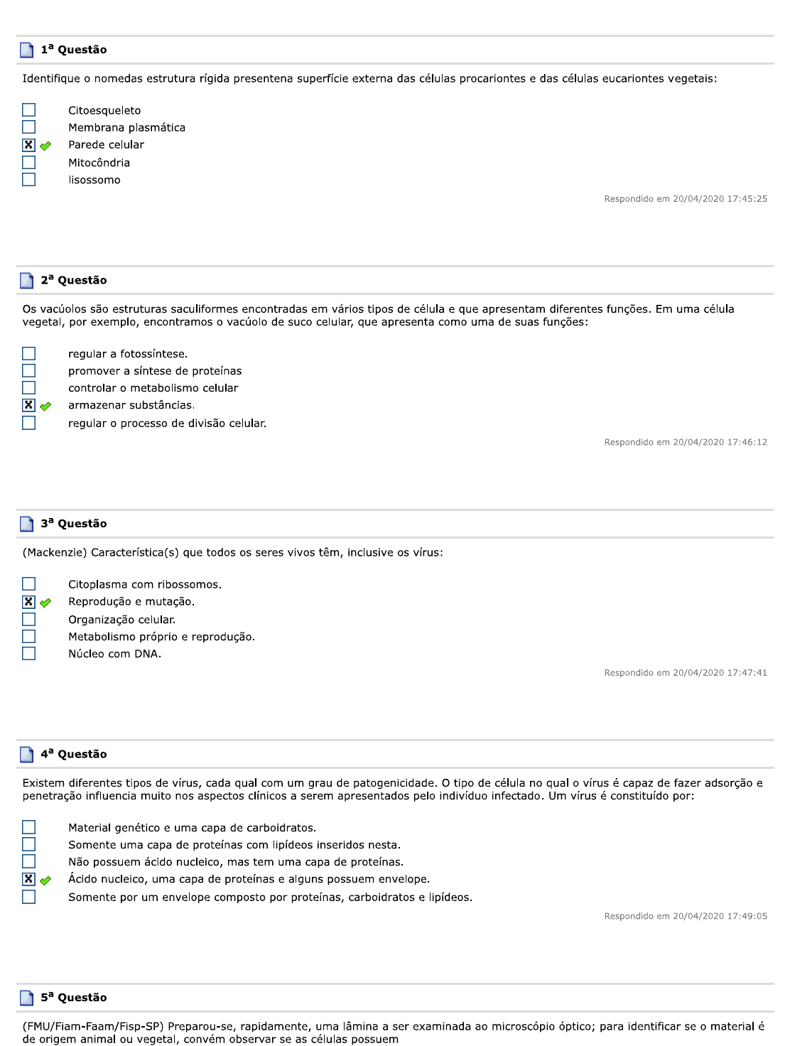 Teste de conhecimento -Exercicios Biologia Celular