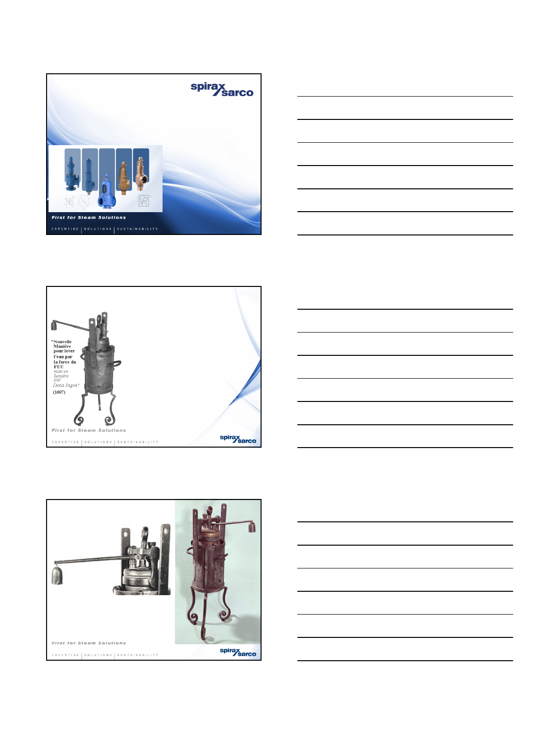 CURSO DE VÁLVULAS DE SEGURANÇA E ALÍVIO Palestra Técnica: Válvulas de Segurança e Alívio (PSV´s) Eng. Hermano X. C. Neto Coordenador de Vendas de PSV´s Spirax Sarco Brasil UM POUCO DE HISTÓRIA Em 1679, Denis Papin, médico e físico francês inventou o digestor de calor (hoje conhecida como panela de pressão), ao adaptar em um cilindro metálico hermeticamente fechado, uma tampa com um dispositivo de segurança, que confinava vapor d´água no interior do mesmo, até que uma alta pressão fosse conseguida e, com isso, o ponto de ebulição da água aumentava consideravelmente. Por este feito, em 1680, aos 32 anos de idade, Papin foi eleito membro da Royal Society of London. Em seu discurso proferiu: “Por meio da máquina de que se trata aqui, a carne da vaca mais velha e dura, pode se tornar tão tenra e saborosa quanto a mais selecionada” DISPOSITIVO DE SEGURANÇA DIGESTOR DE PAPIN Aperfeiçoado em 1682 por Papin, funcionava com um sistema de contrapeso, que, ao ser movimentado ao longo da alavanca, alterava sua pressão de ajuste, pois exercia uma força constante sobre o disco de vedação da válvula. CURSO DE VÁLVULAS DE SEGURANÇA E ALÍVIO CONCEITO DA VÁLVULA ATUAL Em 1869, os americanos , George Richardson e Edward H. Ashcroft, patentearam a “válvula tipo mola sobre carga” Normas vigentes no Mundo atualmente O CÓDIGO ASME (American Society of Mechanical Engineers) CURSO DE VÁLVULAS DE SEGURANÇA E ALÍVIO O CÓDIGO ASME American Society of Mechanical Engineers O CÓDIGO ASME American Society of Mechanical Engineers Em 10 de Março de 1905, a explosão de uma caldeira na Fábrica de Sapatos RB Grover, na cidade de Bronckton em Massachusetts, EUA matou 58 pessoas e feriu 117, causando a total destruição da fábrica Em função deste acidente, a ASME formou o “Comitê de Caldeiras e Vasos de Pressão, o qual elaborou o primeiro “Código ASME Secção I para Vasos de Pressão Submetidos a Fogo (Caldeiras)”. Iniciado sua elaboração em 15 de Setembro de 1911 e concluída em 14 de Dezembro de 1914 O CODIGO ASME A partir desta data o Código passou a ser revisado a cada 3 anos. Nesta primeira edição, dos parágrafos 269 até 290, são referentes a válvulas de segurança, sendo obrigatória sua aplicação para todas as caldeiras a vapor. Atualmente, essas diretrizes estão entre os parágrafos PG-67 até PG-73 do Código ASME Sec.I para válvulas de segurança utilizadas em caldeiras e vasos sujeitos a fogo, e nos parágrafos de UG-125 até UG- 140 do Código ASME Sec. VIII Divisão 1, para dispositivos de alívio de pressão, incluindo válvulas de segurança e/ou alívio para vasos de pressão não sujeitos a fogo, disco de ruptura e dispositivo de pino de rompimento. CURSO DE VÁLVULAS DE SEGURANÇA E ALÍVIO IMPORTÂNCIA DA CERTIFICAÇÃO Certificação Certificado de Capacidade: Garante que a Válvula de Segurança e Alívio descarrega a capacidade especificada em seu projeto. Certificação “UV” Garante que as Válvulas de Segurança e Alívio estampadas foram fabricadas de acordo com as normas e procedimentos do Código ASME para Caldeiras e Vasos de Pressão. Campos obrigatórios segundo código ASME Seç.VIII UG 129 e ASME Seç.I PG 110 Importância da Certificação CURSO DE VÁLVULAS DE SEGURANÇA E ALÍVIO VÁLVULAS COM SELO ASME DIFERENCIAIS PARA O USUÁRIO: • PROTEÇÃO JURÍDICA: Em caso de acidentes, o PH possuirá provas documentais e atestados de capacidades ASME dos dispositivos de segurança da planta; • CONFIABILIDADE: Garantia da pressão de abertura e da capacidade dos Dispositivos de Segurança comprovada pelo código ASME; • REDUÇÃO DE CUSTOS: Descontos no Cálculo do SEGURO da planta que utiliza dispositivos de segurança com SELO ASME; • VASO DE PRESSÃO COM SELO/STAMP ASME: Se o vaso de pressão possuir o Selo/Stamp ASME em sua plaqueta e o Dispositivo de Segurança não possuir o Selo/Stamp ASME, o Vaso PERDE o Selo/Stamp ASME. 2007 Início da transferência de Tecnologia: UK � BR 2007 – 2008 • Nacionalização • Re-engenharia Certificação – Spirax Sarco CURSO DE VÁLVULAS DE SEGURANÇA E ALÍVIO A Spirax Sarco foi o primeiro fabricante nacional certificado pelo NBBI/ASME, com domínio tecnológico para projeto e fabricação de Válvulas de Segurança e Alívio no Brasil. SV80H Líquidos SV81H Vapor e Gases SV81H Líquidos 2012 Obtenção dos Certificados de Capacidade de Vazão para gás, líquido e vapor CERTIFICAÇÃO – SV-80H & SV-81H SV80H Vapor e Gases Normas vigentes no Brasil • Profissional Habilitado (P.H.) • Acessórios necessários para o vaso • Classificação do vaso • Periodicidade de inspeções Lei brasileira ASME Seç.I ASME Seç.VIII API RP 520 API STD 526 API STD 527 • Espessura parede (projeto) • PMTA • Sobrepressão • Dispositivos de Segurança • Diferencial de Alívio • Dimensionamento, etc... Caldeiras e Vasos de pressão NR13 NOVA NR-13 CURSO DE VÁLVULAS DE SEGURANÇA E ALÍVIO NR-13 – última revisão NR-13 – última revisão NR-13 – última revisão CURSO DE VÁLVULAS DE SEGURANÇA E ALÍVIO NR-13 – última revisão NR-13 – última revisão NR-13 – última revisão Ou seja, NR13 pede que o projeto e construção do vaso de pressão siga uma NORMA/CÓDIGO DE PROJETO, e identifique esta em sua plaqueta e prontuário (itens 13.5.1.4 e 13.5.1.6), com isso fica implícito que o dispositivo de segurança destes vaso também faz parte do projeto deste e deve seguir a MESMA NORMA (Vaso com código de projeto ASME = Dispositivo de Segurança com código de projeto ASME). CURSO DE VÁLVULAS DE SEGURANÇA E ALÍVIO Em caso de acidente Constatação de riscos graves e iminentes da NR-13 • Caso 1: Danos materiais • Processo Civil • Caso 2: Envolvendo mortes • Processo Penal Ação Civil contra a empresa: - Provar culpa; - Busca indenização; - Quem paga é a Empresa. Ação Penal contra as pessoas: - Independente ou não Ação Civil; - Tem