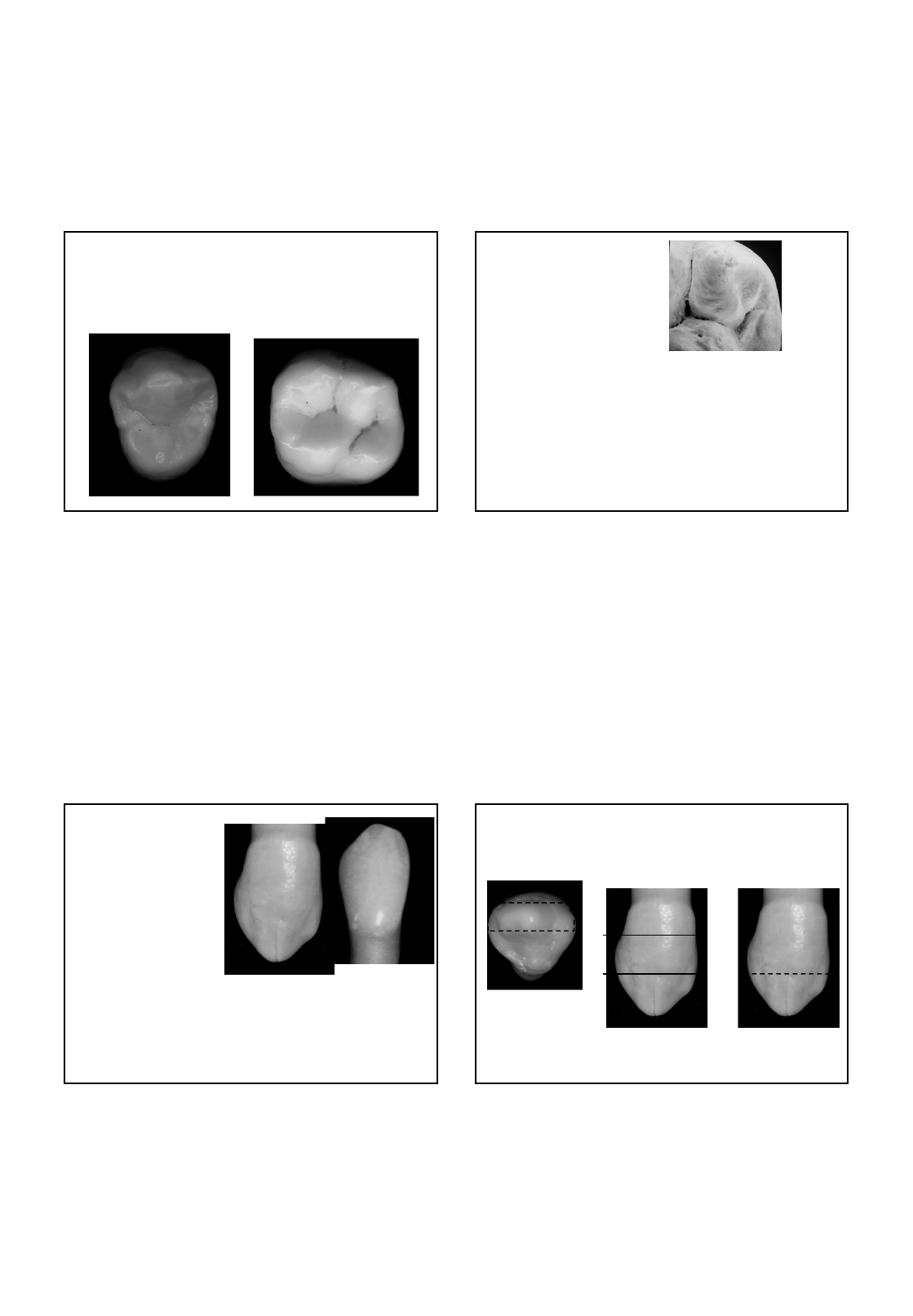 06/04/2020 1 FACE OCLUSAL Dentes Posteriores CÚSPIDESCÚSPIDES Apresentam o formato geométrico de uma pirâmide de base quadrangular. São formadas por vertentes, arestas e sulcos. São saliências de esmalte presentes na face incisal dos caninos e nas faces oclusais dos dentes posteriores, em forma de pirâmide. Nos caninos a cúspide se estende da incisal para os terços incisais das faces vertibular e lingual. Nos caninos a cúspide se estende da incisal para os terços incisais das faces vertibular e lingual. CÚSPIDES CANINOS CÚSPIDES CANINOS Nos caninos há arestas e vertentes. Os detalhes anatômicos que formam as cúspides dos caninos, estão presentes na sua face incisal e no 1/3 incisal das faces livres (vestibular e lingual) oclusal CÚSPIDESCÚSPIDES Vista vestibular Vista vestibular Vista incisalVista incisal 06/04/2020 2 Nos dentes posteriores a cúspide se estende para a face oclusal e para o terço oclusal das faces vestibular e lingual. Nos dentes posteriores a cúspide se estende para a face oclusal e para o terço oclusal das faces vestibular e lingual. CÚSPIDES DENTES POSTERIORES CÚSPIDES DENTES POSTERIORES São formadas por vertentes, arestas e sulcos. Os detalhes anatômicos que formam as cúspides dos pré molares e molares estão presentes na face oclusal e no 1/3 oclusal das faces livres (vestibular e lingual) oclusal CÚSPIDESCÚSPIDES Vista vestibular Vista vestibularVista oclusalVista oclusal oclusal CÚSPIDESCÚSPIDES Vista lingualVista lingualVista oclusalVista oclusal oclusal CÚSPIDESCÚSPIDES Vista vestibularVista vestibularVista oclusalVista oclusal 06/04/2020 3 CÚSPIDESCÚSPIDES Pré-Molares: 2 cúspides Cúspide Vestibular Cúspide Lingual O 2º pré-molar inferior pode ser tricuspidado (duas cúspides linguais) A cúspide recebe o nome de acordo com a face para qual ela estiver voltada CÚSPIDESCÚSPIDES Molares: 4 cúspides – Primeiro Molar Superior - Segundo Molar Superior - Segundo Molar Inferior 5 cúspides – Primeiro Molar Inferior Obs: O segundo molar superior pode apresentar 3 cúspides em alguns casos ARESTASARESTAS Arestas longitudinais: são as arestas paralelas ao eixo mesiodistal. Arestas transversais: são as arestas perpendiculares ao eixo mesiodistal. cúspide Arestas longitudinais: - mesial e distal Arestas transversais: - interna e externa VERTENTES 1 e 2 - vertentes externas ou lisas 3 e 4 – vertentes internas ou triturantes Vertentes triturantes ou internas: contidas na face oclusal anatômica Vertentes lisas ou externas: situadas nas faces vestibular e palatina (ou lingual) São as faces de uma cúspide. 06/04/2020 4 M D Vertente Triturante ou Interna Mesial da Cúspide Vestibular Vertente Triturante ou Interna Distal da Cúspide Vestibular 1 2 3 4 L V L Saliência de esmalte observada nas proximais das faces oclusais dos dentes posteriores e que une as cúspides vestibulares às linguais. Crista Marginal Estrutura (saliência) de esmalte que une cúspides opostas contidas na face oclusal antômica, interrompendo um sulco principal. Primeiro Pré- Molar Inferior Primeiro Molar Superior Ponte de Esmalte Encontro de duas vertentes de estruturas diferentes , forma o sulco principal (depressão) Sulco Principal 06/04/2020 5 - Pequeno ou pouco profundo, distribui-se irregularmente e em número variável nas faces oclusais - Eficiência da trituração - Escoamento de alimento triturado Sulco Secundário Referências Bibliográficas BÁSICA: MADEIRA, M.C. Anatomia do dente. 1. ed. São Paulo: Sarvier, 1997. CANTISANO, W.; SANTOS, H. J. dos; PALHARES, W. R. Anatomia dental e escultura. 3.ed. Rio de Janeiro: Guanabara Koogan , 1987. SANTOS JR, J. dos. Escultura e modelagem dental na clínica e no laboratório. 5ª ed. São Paulo: Editora Santos, 2000. COMPLEMENTAR: NUNES, L. J. et al. Oclusão, enceramento e escultura dental. São Paulo: Pancast, 1997. PICOSSE, M. Anatomia Dentária. 4. ed. São Paulo: Sarvier, 1990. SICHER, H.; TANDLER, J. Anatomia para dentistas. São Paulo: Atheneu, 1981. SILVA, R. G.; PECORA, J. D. Anatomia dental. 1. ed. São Paulo: Santos, 1998. VIEIRA, G. F. et al. Escultura dental com auxílio do método geométrico. São Paulo: Gnatus, 2000.
