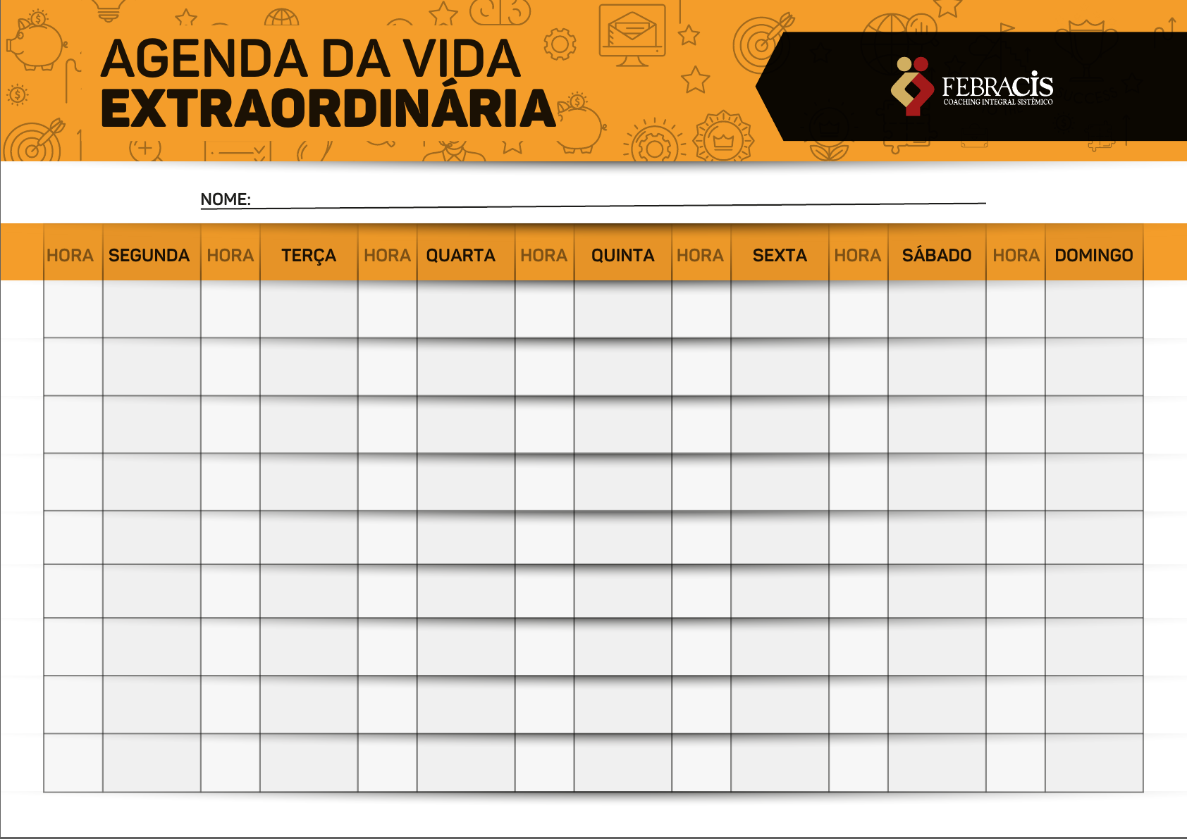 SEGUNDAHORA TERÇAHORA QUARTAHORA QUINTAHORA SEXTAHORA SÁBADOHORA DOMINGOHORA NOME: AGENDA DA VIDA EXTRAORDINÁRIA