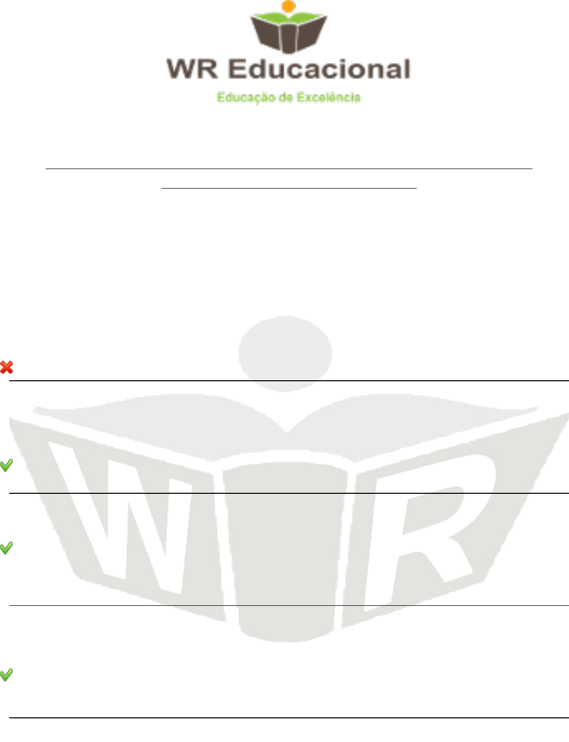 CNPJ: 26.165.960/0001-03 (35) 3331-2274 / (35) 3331-2469 AVALIAÇÃO DO CURSO DE LEITURA E INTERPRETAÇÃO DE DESENHO TÉCNICO MECÂNICO Nome do Aluno: SÉRGIO SILVA DOS SANTOS. Nota: 09 - Aprovado. 1ª) Uma peça que estamos observando ou mesmo imaginando, pode ser desenhada (representada) num plano. A essa representação gráfica se dá o nome de: a) Peça b) Projeto c) Plano d) Nenhuma das alternativas 2ª) O _______ é denominado plano de projeção e a representação da peça recebe, nele, o nome de projeção. a) Elevador b) Projeto c) Plano d) Nenhuma das alternativas 3ª) Teremos uma vista lateral, e a projeção representará uma vista lateral que pode ser da direita ou da: a) Esquerda b) Horizontal c) Vertical d) Nenhuma das alternativas 4ª) Nos casos em que o maior número de detalhes estiver colocado no lado direito da peça, usa-se a ______ direita, projetando à esquerda da elevação. a) Projeção b) Vista lateral c) Peça d) Nenhuma das alternativas www.wreducacional.com.br Rua Érico Veríssimo, 105 - Solar dos Lagos - São Lourenço-MG CEP:37.470-000 Email: atendimento@wreducacional.com.br www.wreducacional.com.br Rua Érico Veríssimo, 105 - Solar dos Lagos - São Lourenço-MG CEP:37.470-000 Email: atendimento@wreducacional.com.br 5ª) O que significa a sigla VF? a) Vista Frontal b) Vista Fina c) Vista de Frente d) Nenhuma das alternativas 6ª) O que significa a sigla VS? a) Vista Sistema b) Vista Superior c) Vista Soldada d) Nenhuma das alternativas 7ª) O que significa a sigla VLE? a) Vista Lateral Esquerda b) Vista Longe a esquerda c) Vista Limpa d) Nenhuma das alternativas 8ª) O que significa a sigla VLD? a) Vista Longe a direita b) Vista Lateral Derivada c) Vista Lateral Direita d) Nenhuma das alternativas 9ª) Quando representamos uma peça pelas suas projeções, usamos as vistas que melhor identificam suas formas e: a) Elevação b) Dimensões c) Organização d) Nenhuma das alternativas 10ª) A Cotagem dos desenhos tem por objetivos principais determinar o tamanho e localizar exatamente os detalhes da: a) Peça b) Elevação c) Linha d) Nenhuma das alternativas