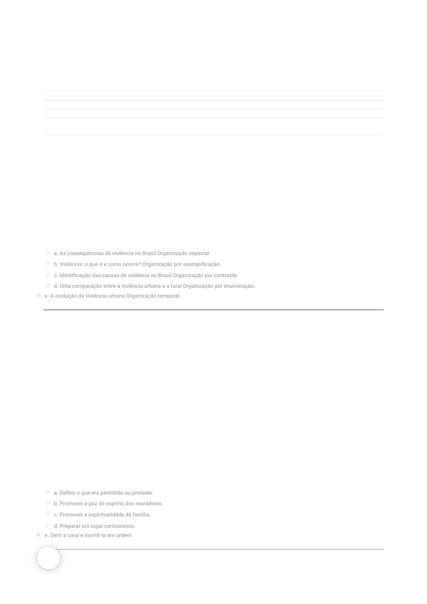 21/05/2020 Unidade 4 - Exercícios de fixação: avaliação da tentativa https://portalacademico.eniac.edu.br/mod/quiz/review.php?attempt=363044&cmid=111303 1/8 Página inicial / Meus Cursos / ENIAC_20201L_393 / Materiais de Estudo / Unidade 4 - Exercícios de �xação Iniciado em quinta, 21 mai 2020, 19:06 Estado Finalizada Concluída em quinta, 21 mai 2020, 19:14 Tempo empregado 8 minutos 23 segundos Avaliar 10,00 de um máximo de 10,00(100%) Questão 1 Correto Atingiu 1,00 de 1,00 Questão 2 Correto Atingiu 1,00 de 1,00 Ao estudarmos as formas de organização de um texto, analisamos que, dependendo da proposta, podemos optar por uma ou outra forma de ordenação. Dado, pois, o tema "Violência", muitas delimitações podem ser adotadas para o desenvolvimento de uma dissertação. Assinale a opção em que o tipo de ordenação textual esteja adequada à delimitação proposta para o texto. Escolha uma: a. As consequências da violência no Brasil Organização espacial. b. Violência: o que é e como ocorre? Organização por exempli�cação. c. Identi�cação das causas da violência no Brasil Organização por contraste. d. Uma comparação entre a violência urbana e a rural Organização por enumeração. e. A evolução da violência urbana Organização temporal. Considerando as informações contextuais da crônica de Clarice Lispector, a função principal da mulher, no ano de 1960, como dona de casa era: Dirigir um lar – Clarice Lispector - 24 de fevereiro de 1960 Somente uma mulher, e dona de casa, sabe e reconhece a grande tarefa que é bem dirigir uma casa. A dona de casa tem de ser, antes de tudo, uma economista, uma “equilibrista” das �nanças, principalmente, com as di�culdades da vida atual. O lar é o lugar onde devemos encontrar a nossa paz de espírito num ambiente limpo, sadio e agradável e cabe à mulher providenciar isso [...] A boa dona de casa é a que sabe dar ordens e acompanha de perto a sua execução. É a que mantém a limpeza, a ordem, o capricho em sua casa, sem fazer desta um eterno lugar de cerimônias, de deveres, onde tudo é proibido. É a que faz de sua casa o lugar de descanso, da felicidade, do marido e dos �lhos, onde eles se sentem realmente bem, à vontade e são bem tratados. O melhor lugar do mundo. Escolha uma: a. De�nir o que era permitido ou proibido. b. Promover a paz de espírito dos moradores. c. Promover a espiritualidade da família. d. Preparar um lugar cerimonioso. e. Gerir a casa e mantê-la em ordem. https://portalacademico.eniac.edu.br/ https://portalacademico.eniac.edu.br/course/view.php?id=4204 https://portalacademico.eniac.edu.br/course/view.php?id=4204#section-1 https://portalacademico.eniac.edu.br/mod/quiz/view.php?id=111303 21/05/2020 Unidade 4 - Exercícios de fixação: avaliação da tentativa https://portalacademico.eniac.edu.br/mod/quiz/review.php?attempt=363044&cmid=111303 2/8 Questão 3 Correto Atingiu 1,00 de 1,00 Leia o parágrafo a seguir: No Brasil, há muitos brasis. Em várias localidades, encontramos culturas e comportamentos diferentes. No Nordeste, encontramos uma cultura animada e festiva; no Sul, pessoas mais contidas; no Centro-Oeste, pessoas de personalidade forte. São essas diferenças que compõem o nosso país. Este parágrafo foi organizado seguindo o princípio: Escolha uma: a. Enumeração. b. Temporal. c. Espacial. d. Confronto. e. Causal. 21/05/2020 Unidade 4 - Exercícios de fixação: avaliação da tentativa https://portalacademico.eniac.edu.br/mod/quiz/review.php?attempt=363044&cmid=111303 3/8 Questão 4 Correto Atingiu 1,00 de 1,00 Ao tematizar o mesmo fato da Revista Veja, a Revista Carta Capital de 11 de março de 2013, traz também a notícia da morte de Hugo Chávez. Observe as informações contextuais presentes na capa e julgue as três asserções que seguem com relação ao posicionamento deste veículo quanto às ações do ex-presidente. Das três a�rmativas, pode-se dizer que: I. A Revista Carta Capital, provavelmente, foi favorável à política do ex-presidente, o que pode ser a�rmado pela manchete “a morte de um líder” e pela imagem de um líder que olha para frente com um semblante de visionário. II. A Revista Carta Capital, provavelmente, foi contrária à política do ex-presidente, o que pode ser a�rmado pela opção por uma imagem desfocada e cores vibrantes. III. Os indícios deixados na capa não são su�cientes para que o leitor in�ra sobre o posicionamento da Revista Carta Capital em relação à política do ex-presidente. Escolha uma: a. Está correta a asserção I. b. Estão corretas as asserções II e III. c. Está correta a asserção III. 21/05/2020 Unidade 4 - Exercícios de fixação: avaliação da tentativa https://portalacademico.eniac.edu.br/mod/quiz/review.php?attempt=363044&cmid=111303 4/8 Questão 5 Correto Atingiu 1,00 de 1,00 Questão 6 Correto Atingiu 1,00 de 1,00 d. Está correta a asserção II. e. Estão corretas as asserções I e II. As dissertações expositiva ou argumentativa podem constituir inúmeros gêneros textuais, dependendo da necessidade de quem fala ou escreve. Dos objetivos comunicacionais abaixo relacionados, aponte a opção em que a relação entre tal objetivo e o gênero textual esteja ERRADA: Escolha uma: a. Juca Borges é editor-chefe de um jornal e precisa apresentar o exemplar do dia a seu leitor. Juca fará uma crônica. b. Mário Prata é advogado e tem de elaborar um texto dirigido ao Juiz, no qual ele apresente, dentre outros elementos, os motivos iniciais de um pedido. Mário Prata fará uma petição inicial. c. Carlos é jornalista de uma revista e precisa produzir um texto no qual ele se posicione e comente a reportagem de capa.Carlos precisa fazer um artigo de opinião. d. Jonas Filho é estudante de ensino médio e está se preparando para o vestibular, no qual ele terá de construir um texto que ateste a sua capacidade de desenvolver um tema de maneira argumentativa, po