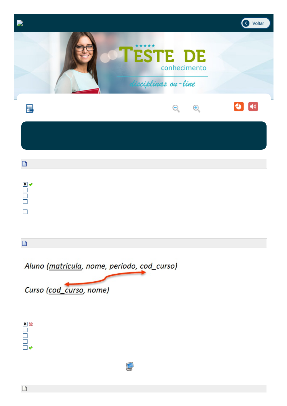 Podemos afirmar que a coluna cod_curso da tabela Aluno é _____________ da tabela Curso na coluna cod_curso.