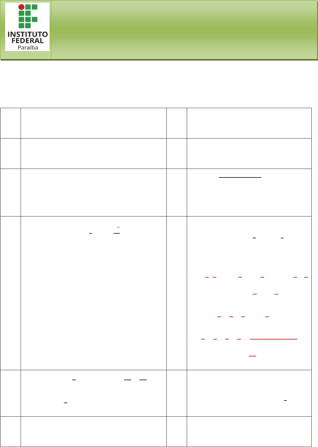 1. Calcule o valor numérico das expressões a seguir: