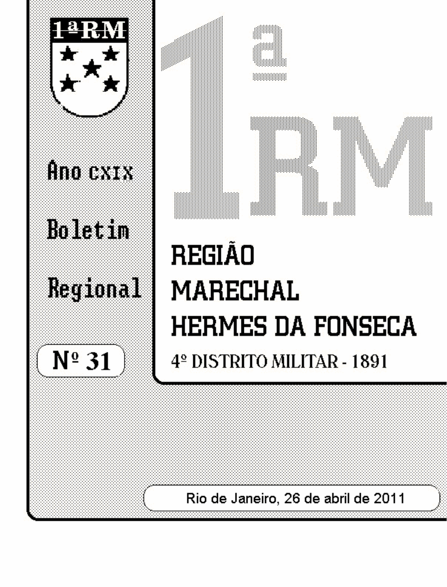 “Í N D I C E ” 1ª PARTE - SERVIÇOS DIÁRIOS Sem Alteração 2ª PARTE - I N S T R U Ç Ã O Sem Alteração 3ª PARTE – ASSUNTOS GERAIS E ADMINISTRATIVOS 1. ASSUNTOS GERAIS Sem Alteração 2. ASSUNTOS ADMINISTRATIVOS Alteração do Pessoal a. Oficiais - Inspeção de Saúde - ordem 0745 c. Praças - Inspeção de Saúde - ordem 0746 c. Requerimentos Despachados por este Cmdo - Inspeção de Saúde - ordem 0747 - Documento Recebido - entrada 0747 - Solicitação de Inspeção de Saúde em Caráter Excepcional 0748 d. Aditamentos - distribuição 0753 e. Inspeção de Saúde - ordem 0753 f. Inquérito Sanitário de Origem - nomeação 0754 g. MPGu Bda Inf Pqdt/ Rio de Janeiro (Bda Inf Pqdt) - nomeação 0754 h. Concessão de Diárias - retificação de valores 0754 i. Cálculo de Gratificação de Representação - transcrição de mensagem do CML 0755 j. Proposta de Concessão de Requisição de Passagens 0755 k. Proposta de Concessão de Diárias 0757 l. Aquisição e Fornecimento de Medicamento de Custo Elevado para Tratamento Prolongado autorização 0758 m. Certificado de Auditoria em Segurança Alimentar 0759 n. Situação de Coletes de Proteção Balística Nivel III - determinação 0759 o. Transferência de Residência de Convocado - definição 0760 p. Equipe de Exame de Pagamento de Pessoal - Maio de 2011 - designação 0760 q. Exame de Pastas e Contracheques de Inativos e Pensionistas - maio de 2011 - designação 0762 4ª PARTE - JUSTIÇA E DISCIPLINA Sem Alteração Cmdo 1ª RM - Bol Rg Nr 31 - 26 Abr 110745 Visto: Ten NILSON - Ch Sec Expt AjG/1 __________ MINISTÉRIO DA DEFESA EXÉRCITO BRASILEIRO COMANDO MILITAR DO LESTE 1ª RM (4° Dist Mil/1891) (REGIÃO MARECHAL HERMES DA FONSECA) (A N O CXIX) Para conhecimento deste Comando, das OM sediadas na área da 1ª RM e devida execução, publico o seguinte : 1ª PARTE - SERVIÇOS DIÁRIOS (SEM ALTERAÇÃO) 2ª PARTE - INSTRUÇÃO (SEM ALTERAÇÃO) 3ª PARTE - ASSUNTOS GERAIS E ADMINISTRATIVOS 1. ASSUNTOS GERAIS (SEM ALTERAÇÃO) 2. ASSUNTOS ADMINISTRATIVOS Alterações do Pessoal a. Oficiais Inspeção de Saúde - ordem 1) Seja inspecionado de Saúde em Grau de Recurso, pela JISR / 1ª RM (AMAN), o militar abaixo, de acordo com a Letra “g” do Nr II do Art 13 da Port Nr 566 -Gabinete do Comandante do Exército, de 13 Ago 09 (IGPMEx): Cmdo 1ª RM - Bol Rg Nr 31 - 26 Abr 110746 NOME SITUAÇÃO VINCULAÇÃO LIUZ MARQUES Cel Refm AMAN Em consequência, os interessados tomem conhecimento e providências. (Nota Nr 143-Esc Sau/1-PM, de 13 Abr 11) 2) Seja inspecionado de Saúde em Grau Revisional, pela JISR / 1ª RM (CPM/1), o militar abaixo, de acordo com o item 15.4.2 da Port Nr 133 -DGP, de 29 Jun 10 (NTPMEx / 2010): NOME SITUAÇÃO VINCULAÇÃO MARCELO LAMBRANHO RAMOS 1º Ten Refm SIP/1-Rio Em consequência, os interessados tomem conhecimento e providências. (Nota Nr 103-Esc Sau/1-PM, de 31 Mar 11) 3) Seja inspecionado de Saúde em Grau de Revisional, pela JISR / 1ª RM (Cmdo 1º RM), o Ten Cel Refm (026112101-6) JAIRO LUIZ FERNANDES DE CASTRO, vinculado ao OPIP/CRI, de acordo com o Art 1º da Port Nr 052 -DGP, de 1º Mar 10. Em consequência, os interessados tomem conhecimento e providências. (Nota Nr 104-Esc Sau/1-PM, de 31 Mar 11) b. Praças Inspeção de Saúde - ordem 1) Seja inspecionado de Saúde em Grau de Recurso, pela JISR/1ª RM (Cmdo 1ª RM), o militar abaixo: NOME SITUAÇÃO VINCULAÇÃO LENILSON DE OLIVEIRA Sd 27º BI Pqdt Em consequência, os interessados tomem conhecimento e providê ncias. (Nota Nr 132-Esc Sau/1, de 13 Abr 11) 2) Seja inspecionado de Saúde em Grau Revisional, pela JISR/1ª RM (CPM/1) o militar abaixo: NOME SITUAÇÃO VINCULAÇÃO CÉLIO SILVA Sd Refm SIP/1 Em consequência, os interessados tomem conhecimento e providências. (Nota Nr 145-Esc Sau/1, de 13 Abr 11) Cmdo 1ª RM - Bol Rg Nr 31 - 26 Abr 110747 3) Sejam inspecionados de Saúde em Grau Revisional, pela JISR / 1ª RM (CPM/1), os militares abaixo, de acordo com o item 15.4.2 da Port Nr 133 -DGP, de 29 Jun 10 (NTPMEx / 2010): NOME SITUAÇÃO VINCULAÇÃO JOÃO ELOY BEZERRA S Ten Refm SIP-RIO CELSO DO NASCIMENTO 3º Sgt Refm SIP-RIO LOURIVAL LYRIO DE SOUZA JUNIOR 2º Sgt Refm SIP-RIO ARIDIO FERREIRA BATISTA 3º Sgt Refm SIP-RIO DANILO BANDEIRA ITABORAHY 3º Sgt Refm SIP-RIO DOMINGOS SAVIO TORRES SANTOS 3º Sgt Refm SIP-RIO JOSÉ MARCELO DE ARAUJO 2º Sgt Refm SIP-RIO FLORINDO DE SOUZA MEDEIROS 3º Sgt Refm SIP-RIO NILTON FERNANDES 2º Sgt Refm SIP-RIO Em consequência, os interessados tomem conhecimento e providências. (Notas Nr 116; 124; 125; 126; 127; 128; 129 e 142 -Esc Sau/1-PM, de 31 Mar; 13 e 15 Abr 11) 4) Seja inspecionado de saúde em Grau Revisional, pela JISR / 1ª RM (Cmdo 1ª RM) de acordo com o Artigo 1º da Port Nr 052 -DGP, de 1º Mar 10, o militar abaixo: NOME SITUAÇÃO VINCULAÇÃO ANDERSON DE ARAÚJO LIMA Sd Refm SPI/1 Em consequência, os interessados tomem conhecimento e providências. (Nota Nr 117-SSR/1-PM, de 05 Abr 11) c. Requerimentos Despachados por este Cmdo 1) Inspeção de Saúde - ordem Seja publicado o INDEFERIMENTO da solicitação de Inspeção de Saúde em Grau de Recurso, requerida pelo Sd (021022326678) RENATO SILVA DE MOURA, vinculado ao MHEx / FC, por contrariar o item 15.3.2.1 da Port Nr 133 -DGP, de 29 Jun 10. Em consequência, os interessados tomem con hecimento e providências. (Nota Nr 123-Esc Sau/1-PM, de 05 Abr 11) 2) Documento Recebido - entrada a) Deu entrada neste G Cmdo Ter um requerimento do Sr. PAULO ROBERTO RIGAS, Identidade Nr 373328 MD/MB, filha da pensionista militar LENY COSTA RIGAS, fal ecida em 19 Mar 11, ex-esposa pensionada, através do qual o mesmo pleiteia pagamento de auxílio funeral. Cmdo 1ª RM - Bol Rg Nr 31 - 26 Abr 110748 INDEFERIDO: por contrariar o Art 76, III, do Decreto Nr 4307/02. b) Deu entrada neste G Cmdo Ter um requerimento da Sra. ELGITA FERREIRA SANTOS, Identidade Nr 0134437425-MD-EB, filha da pensionista militar HILDA DUARTE, falecida em 03 Abr 11,