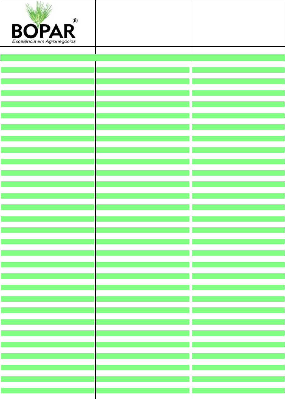 "Intermediando negócios de norte a sul do Brasil" (45)3038-1011 www.bopar.com.br Lista nº 00710 Validade: 16/05/2020 Emitida em 11/05/2020 as 14:30 ABAMEX (4X5) LT24,82 ABSOLUTO SC (4X5) LT37,23 ACCENT (12X100) 100 GR145,06 ACLAMADOBR (1X20) LT13,34 ACROBAT MZ (10X1) KG62,69 ALIETTE (12X1) KG103,16 ALION (10X500) 500 GR1.319,40 ALLY (30X40) 40 GR42,89 ALTACOR (12X450) 450 GR500,43 ALTERNE (4X5) LT30,93 ANCOSAR 720 (1X20) LT21,65 ANTRACOL 700 WP (1X25) KG29,07 APPLAUD 250 (12X1) KG187,10 APPROVE (12X1) KG107,66 APPROVE (4X5) KG106,08 ASSARIS (1X20) LT24,29 ATRAZINA NORTOX 500 SC (4X5) LT14,71 AURA (10X1) LT329,15 AUTHORITY (4X5) LT75,84 BANZAI (4X5) LT273,95 BASAGRAN 480 (4X5) LT47,85 BASAGRAN 600 (4X5) LT64,80 BATTUS (10X1) KG107,89 BAZUKA 216 SL (1X20) LT24,29 BELURE (4X5) LT193,69 BIM 750 BR (10X1) KG212,15 BIOZYME TF (12X1) LT107,87 BOLD (4X5) LT68,12 BORAL 500 SC (1X10) LT142,70 BRIO (4X5) LT74,44 BRUTUS (4X5) LT29,57 CABRIO TOP (1X6) KG51,83 CAPTAN SC (12X1) LT37,61 CARAMBA 90 (10X1) LT67,48 CARAMBA 90 (4X5) LT63,93 CARBENDAZIM NORTOX 500 SC (4X5) LT22,08 CARDEAL (4X5) LT71,65 CARTAP BR 500 (12X1) KG152,74 CERCOBIN 875 WG (4X5) KG46,03 CERCONIL SC (4X5) LT32,04 CERTEZA (4X5) LT153,59 CHARRUA 430 SC (4X5) LT60,38 CIMOX WP HELM (2X10) KG35,31 CIPERMETRINA NORTOX 250 EC (12X1) LT32,68 CLETODIM NORTOX (4X5) LT46,92 CLORIMURON NORTOX (48X300) 300 GR21,25 CLORPIRIFOS FERSOL 480 EC (1X20) LT27,46 COBRE ATAR BR (1X25) KG41,11 COLLIS (10X1) LT191,55 COMET (4X5) LT121,45 CONNECT (12X1) LT39,00 COSTAR (12X1) KG176,10 CRONNOS (1X20) LT51,55 CRUCIAL (1X20) LT16,72 CRUISER 350 FS (4X5) LT402,70 CUPROZEB (10X2) KG43,66 CURADO (4X5) LT131,27 DANADO (1X20) LT48,51 DANIMEN 300 EC (12X1) LT104,20 DASH HC (10X1) LT25,56 DECIS 25 EC (12X1) LT63,70 DECIS 25 EC (20X250) 250 ML17,20 DEFEND WDG (1X25) KG6,91 DELAN (10X1) KG128,47 DELIVER (12X1) LT24,35 DICARZOL 500 SP (20X500) 500 GR191,50 DIFLUMAX 240 SC (4X5) LT57,23 DIMILIN 80 WG (10X500) 500 GR99,00 DIPEL WP (10X500) 500 GR36,89 DITHANE NT (10X2) KG21,06 DITHANE NT (1X25) KG17,57 DIURON NORTOX 500 SC (2X10) LT29,04 DMA 806 BR (1X20) LT14,82 DODEX 450 SC (4X5) LT110,24 DORMEX (1X20) LT124,56 ENVIDOR (20X400) 400 ML181,69 ENVOY (4X5) LT61,63 EQUATION (16X1) KG267,77 ETHREL 720 (12X1) LT287,34 EVIDENCE 700 WG (12X1) KG165,80 EVIDENCE 700 WG (240X30) 30 GR18,19 EXALT (12X1) LT648,67 EXPEDITION (4X5) LT148,61 FACERO SC (1X20) LT13,35 FACET (5X750) 750 GR133,55 FASCINATE BR (4X5) LT41,52 FASTAC 100 (10X1) LT40,06 FASTAC 100 SC (4X5) LT42,06 FLEX (12X1) LT97,18 FLEX (4X5) LT91,02 FLINT 500 WG (20X500) 500 GR238,93 FLUMYZIN 500 (12X1) KG409,01 FLUMYZIN 500 (10X100) 100 GR42,16 FOLPAN AGRICUR 500 WP (12X1) KG40,58 FORUM (10X1) KG285,28 FORUM (72X225) 225 GR74,83 FOX (4X5) LT232,75 FOX XPRO (4X5) LT263,65 FUNGURAN VERDE (1X25) KG33,73 FUSIFLEX (4X5) LT110,24 FUSILADE 250 EW (12X1) LT105,36 FUSILADE 250 EW (4X5) LT95,45 FUSÃO EC (1X10) LT73,36 GALEAO (12X1) KG108,16 GALIL SC (4X5) LT113,36 GAME (15X1) LT48,95 GASTOXIN (12X1) KG229,25 GLI-UP 720 WG (4X5) KG22,18 GLIZMAX (1X20) LT17,46 HEAT (10X350) 350 GR264,13 HELMOQUAT (1X20) LT20,11 HELMSTAR PLUS (1X10) LT72,32 HERBADOX 400 EC (10X1) LT49,94 HERBADOX 400 EC (1X10) LT46,22 HERO (4X5) LT164,77 HOROS (1X20) LT132,47 IHAROL GOLD (1X20) LT12,22 IMAZETAPYR PLUS NORTOX (4X5) LT24,50 IMIDAN 500 WP (12X1) KG116,26 IMUNIT (10X1) LT91,88 INFINITO (12X1) LT217,30 KASUMIN (12X1) LT73,66 KASUMIN (4X5) LT71,27 KENNOX (4X5) LT107,90 KIFIX (10X1) KG721,00 KIT CLEARFIELD (KIT) KIT2.041,15 KLORPAN 480 EC (2X10) LT29,96 KLORPAN 480 EC (1X20) LT29,57 KUMULUS DF (24X1) KG13,76 LANNATE BR (2X10) LT28,00 LOGIN (10X1) KG68,12 MANFIL 800 WP (10X1) KG14,92 MANFIL 800 WP (1X10) KG14,29 MANZATE 800 (20X1) KG18,60 MANZATE 800 (1X25) KG14,92 MANZATE WG (24X1) KG19,24 MANZATE WG (1X25) KG17,99 MARATHON 800 WG (10X1) KG516,00 MATCH EC (12X1) LT75,94 MAXCEL (10X2) LT167,86 METSURAM 600 WG (50X10) 10 GR5,45 METSURAM 600 WG (20X300) 300 GR137,39 MILBEKNOCK (18X200) 200 ML170,95 MIMIC 240 SC (12X1) LT104,20 MIRZA 480 SC (12X1) LT119,37 MONCUT (4X5) LT164,42 MYTHOS (12X1) LT67,08 NICOSULFURON NORTOX 40 SC (12X1) LT38,67 NOMINEE 400 SC (12X1) LT646,51 NOMOLT 150 (10X1) LT121,50 NOMOLT 150 (4X5) LT119,37 NORTON (12X1) LT25,60 NORTON (4X5) LT24,93 NUPRID 700 WG (10X1) KG108,94 OBERON (12X1) LT113,89 OKAY (12X800) 800 ML167,86 OPERA (4X5) LT78,38 ORKESTRA SC (10X1) LT280,22 ORKESTRA SC (4X5) LT273,95 ORTHENE 750 BR (4X5) KG37,56 PACTO (10X240) 240 GR395,03 PADRON (4X5) LT78,87 PALACE (12X1) LT35,85 PLANADOR (4X5) LT44,10 PLANADOR XT (4X5) LT127,04 PLATINUM NEO (4X5) LT131,58 POLO 500 SC (12X1) LT148,52 POQUER (12X1) LT66,03 PREDADOR (20X400) 400 ML159,62 PREMIO (12X1) LT552,05 PREVINIL (4X5) LT37,74 PRISMA PLUS (4X5) LT89,79 PROCLAIM 50 (4X5) KG344,26 PROMALIN (12X1) LT505,70 PROPLANT (12X1) LT124,56 RECONIL (1X25) KG29,36 REGENT 800 WG (10X1) KG557,20 PRODUTOS www.bopar.com.br www.bopar.com.br REGLONE (1X20) LT23,03 RETAIN (10X830) 830 GR2.421,50 ROUNDUP ORIGINAL DI (1X20) LT14,61 ROUNDUP WG (4X5) KG26,83 ROVRAL SC (15X1) LT141,15 SADDLER 350 SC (4X5) LT90,83 SAFETY (4X5) LT79,80 SANMITE (12X1) LT174,04 SELECT 240 EC (4X5) LT50,50 SELECT ONE PACK (12X1) LT35,59 SELECT ONE PACK (4X5) LT34,79 SENCOR 480 (4X5) LT112,32 SEVIN 480 SC (12X1) LT103,78 SEVIN 480 SC (4X5) LT97,95 SHADOW 480 SL (1X20) LT11,52 SIALEX 500 (12X1) KG105,98 SIENA (12X1) KG64,98 SIRIUS 250 SC (18X300) 300 ML247,11 SPERTO (10X1) KG171,41 SPERTO (4X5) KG167,86 SPHERE MAX (4X5) LT222,45 STAM 800 WG (1X22,5) KG41,11 STANDAK TOP (4X5) LT453,20 STARICE (4X5) LT85,78 STIMULATE (4X5) LT129,92 SUMILEX 500 WP (12X1) KG100,04 SUMITHION 500 EC (12X1) LT64,98 SUMYZIN 500 SC (12X1) LT356,42 SUMYZIN 500 SC (4X5) LT324,84 SUPPORT (1X20) LT18,95 SUPRATHION 400 EC (12X1) LT99,92 TALISMAN (1X20) LT72,32 TALSTAR 100 EC (15X1) LT88,23 TALSTAR 100 EC (4X5) LT75,77 TALSTAR 100 EC (1X10) LT72,32 TARGA MAX (4X5) LT35,40 TEBUFORT (4X5) LT29,57 TERRA FORTE (12X1) LT190,55 TIGER 100 EC (12X1) LT206,57 TINO (1