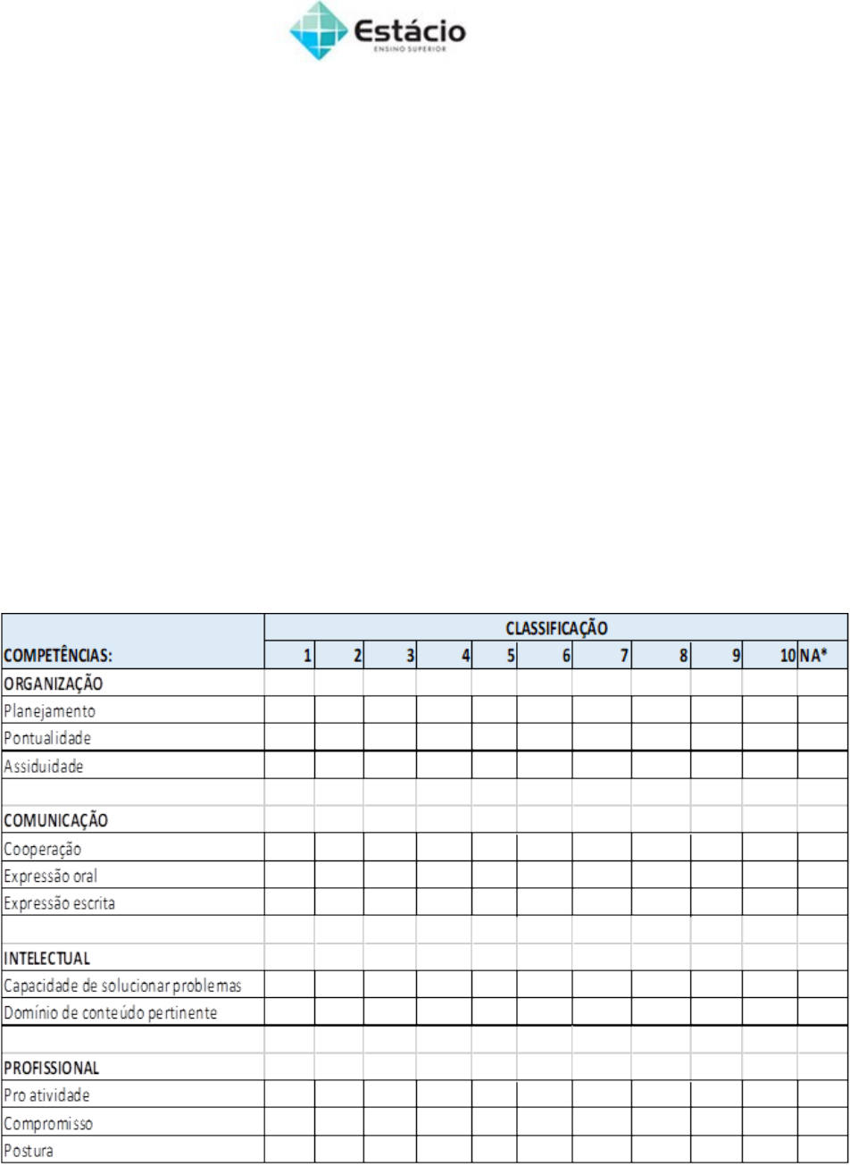 FICHA DE AVALIAÇÃO DO ESTAGIÁRIO Campus: JOAO PESSOA - IDEZ Curso: História - Licenciatura Estágio supervisionado em: História - Licenciatura Estagiário: Petrúcio Fernandes Linhares Matrícula: 201801088462 Instituição onde realiza o Estágio: Escola Cidadã Integral Técnica Estadual de São Bento Telefone: (83) 99621-5549 Endereço: Av. Prefeito Pedro Eulâmpio, S/N, bairro São Bentinho - São Bento/PB Responsável pelo Estágio na Instituição (local onde este é realizado). : Bárbara Acácia de Sena Classifique na escala abaixo o grau (entre 0 e 10) em que se encontram presentes no estagiário cada uma das habilidades seguintes: São Bento/PB, 31 de maio de 2020. ___________________________________________ Bárbara Acácia de Sena Responsável pelo Estágio na Instituição.