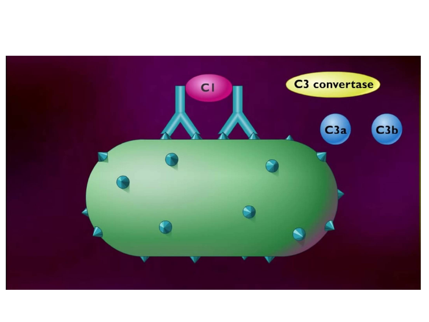 Profª Msc. Michele das Neves Pinto. SISTEMA COMPLEMENTO IMUNOLOGIA SISTEMA COMPLEMENTO O complemento é um conjunto de proteínas séricas que agindo em cascata promovem a lise de microrganismos. Ele foi descoberto na década de 1890 por Jules Bordet, como um componente termolábil do plasma normal que aumenta a opsonização e a morte de bactérias pelos anticorpos e, assim, essa atividade "complementa" as ações dos anticorpos. Definição: IMUNOLOGIA Sistema Complemento Reações em cascata Importante na imunidade e inflamação -primeira linha de defesa contra infecção Podem levar até a formação do complexo de ataque a membrana – MAC. Pertence ao sistema imune inato (via alternativa e lectina) e adquirida (via clássica) Mais de 25 proteínas ( plasmáticas e membranares ) IMUNOLOGIA Nomenclatura Muitas das proteínas são zimogénios (pré-enzimas não ativas). Necessitam de clivagem proteolítica para serem ativadas. A nomenclatura dos componentes se dá por letras seguidas de número, ou somente por letras. C1p,C1r,C1s,C4,C2,C3,C5,C6,C7,C8,C9 via clássca Fator B e fator D via alternativa 5 Principais funções: Eliminação de microrganismos -‐ Opsonização e Fagocitose -‐ Lise celular Inflamação Remoção de Imunocomplexos – complexos formados pela ligação antígeno –anticorpo. IMUNOLOGIA A superfície alvo (bactéria, vírus, complexo antígeno-anticorpo) é envolvido por proteínas do complemento às quais podem se ligar células fagocíticas. Opsonização IMUNOLOGIA Lise celular O objectivo final do complemento é formar um complexo que se insere na membrana citoplasmática da célula alvo abrindo nesta um poro que provoca lise celular. Lise Ativação da resposta imuneOpsonização Clearance Imunológico 31 FUNÇÕES DO COMPLEMENTO IMUNOLOGIA Vias de ativação do complemento Via Clássica - Ocorre na sequência da formação de complexos antigénio- anticorpo. Via das lectinas - Ativada diretamente por bactérias ou vírus sendo depois capaz de interagir com proteínas com capacidade enzimática idêntica às da via clássica. Via Alternativa - Inicia-se de forma espontânea e contínua no plasma. Inicia-se por contato com lipopolissararídeos bacterianos Não necessita anticorpo para ativação. IMUNOLOGIA IMUNOLOGIA As 3 vias Convertase C3 C3b C3a Evento central da via do complemento Independente da via de ativação todas as vias irão clivar C3 em duas partes. 6 As proteínas do complemento: Fase Inicial Fase Tardia C2 C3 C4 B D C5 C6 MASP1MASP2 MBL 7 Cx Proteína inativa Cxb ATIVAÇÃO Ativação do sistema: Cxa X= 2, 3, 4, 5 8 Ativação do C5 Via de ataque à membrana Via das lectinasVia Clássica Via alternativa Ativação do C3 e geração da C5 convertase Anticorpo Independente Anticorpo dependente VIAS DE ATIVAÇÃO DOCOMPLEMENTO Sistema complemento • Via clássica – Primeira via a ser descoberta – Depende da ligação do anticorpo com o antígeno – Éiniciada pela ligação da proteína C1a porção fc dos anticorpos ( domínio Ch2 para IgG e Ch3 para IgM) IMUNOLOGIA Via Clássica Relaciona-se com o sistema imune adaptativo, através da ligação de C1 ao complexo imune Ag-Ac. C1 é um complexo pentamolecular Ca2+ dependente: 1 Molécula C1q 2 Moléculas C1s 2 Moléculas C1r C1 cliva C4, originando C4b activado ( ligado à sup. celular ) #VIA CLÁSSICA Primeiro complexo multimérico a ligar: C1q, C1r e C1s Patógeno ou Célula-‐alvo ATIVAÇÃO DA VIACLÁSSICA IgG IgM Ligação de C1q a Ac + Ag ATIVAÇÃO C1 Sistema complemento • C1s ativa C4 que é clivada em dois fragmentos: C4a(solúvel) e C4B que se fixa a membrana ou ao complexo ag/ac C4a Via clássica Sistema complemento • Aproximação de C2 aocomplexo • C2 é clivada por C1s em C2a e C2b • C2b é aderido ao complexo formando a convertase de C3 C3 C3 C3b Via clássica Sistema complemento • Conversão de C3 em C3b eC3a • C3b é depositado na membrana ou liga-se ao complexo C4b2a • Formação do complexo C4b2a3b que é a convertase de C5 C3 C3 C3b C3b Via clássica VIA CLÁSSICA Após ligação Ag-Ac a proteína C1 recruta C4 que vai ser clivada em C4a e C4b. C4b vai recruta a proteína C2 e vai clivar em C2a e C2b. Via clássica Sistema complemento • Clivagem de C5 em C5a(solúvel) e C5b que é ligado ao complexo • Inserção das proteínas C6, C7,C8 e C9 ao complexo para formação do MAC Via clássica Sistema complemento Via clássica IMUNOLOGIA Sistema complemento • Via alternativa: – Desencadeada quando a proteína do sistema complemento C3 reconhece determinados antígenos presentes na superfície de microrganismos (ex. camada de LPS) – Mais específico na imunidade inata – Independe da ligação com anticorpos Sistema complemento C3b sofre alteração conformacional e exibe sítios de ligação que permitem a inserção de C3b na membrana celular e a ligação ao Fator Bplasmático Via alternativa Sistema complemento • Clivagem do fator B pelo Fator D produz a porção solúvel Ba e a porção ligada a membrana Bb complexo estabilizado pela properdina Via alternativa Sistema complemento O complexo C3bBb éa convertase para C3, produzindo C3b Complexo formado apenas na superfície de células microbianas Via alternativa Sistema complemento O complexo C3bBbC3b é a convertase para C5 e posterior formação do MAC Via alternativa VIAALTERNATIVA Fase fluida C3b Patógeno SE Patógeno C3 CONVERTA rdina Patógeno C CONV 5 ERTASE Fase fluida Hidrólise C3b inativo Patógeno C3 CONVERTASE Patógeno C5 D Patógeno CONVERTASE 18 -Filogeneticamente mais antiga -Importante no sistema imune inato -Ativada na ausência de anticorpo -Clivagem espontânea de C3. -O processo só irá continuar se houver ligação com o patógeno com o C3b. Sistema complemento convertase convertase Via alternativa IMUNOLOGIA Formação de C5 convertase C4B2A C3bBB C3 Convertase da via clássica C3 Convertase da via alternativa + C3b C4b2aC3b C3bBbC3b C5 Convertases C5a C5b C5