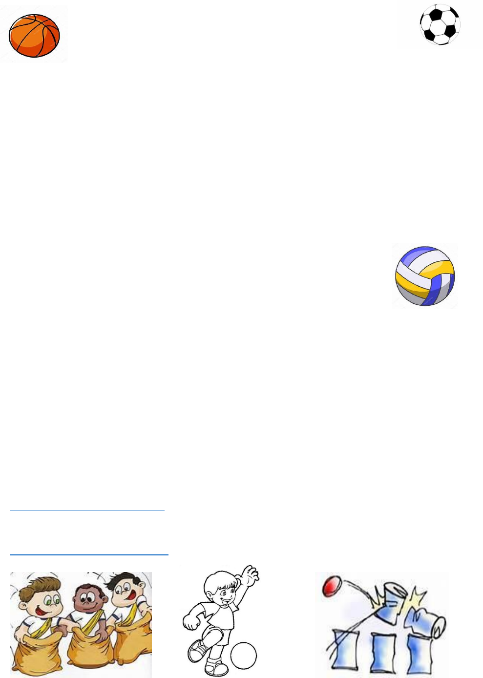EDUCAÇÃO FÍSICA Plano de Aula – Jogos e Brincadeiras 5° ano Atividade 3 – Corrida de saco Nesta brincadeira você irá precisar de sacos. Obtendo esse material você deve colocar os pés dentro do saco e esperar alguém dar a ordem de saída. Para começar a corrida, você deve segurar o saco com uma mão para evitar que caia abaixo dos joelhos e ao mesmo tempo manter o equilíbrio para poder saltar. Durante toda a corrida, detalhe você deve manter as duas pernas dentro do saco até chegar ao final. Importante: As crianças devem brincar numa superfície segura e sem obstáculos. Atividade 4 - Tomba Latas Nesta brincadeira você irá precisar de 6 latas de leite em pó e uma bolinha. Obtendo esses materiais faça uma pirâmide com 3 na base, 2 em cima e uma no topo. Com a bolinha na mão jogue em direção das latas, seu objetivo é derrubar as latas. Essa brincadeira você também poderá fazer com familiar, exemplo cada participante recebe 3 bolinhas para fazer três tentativas vence que derrubar mais latas. Adaptações: As latinhas podem ser menores de milho e a bolinha pode ser feita de meia. . Corrida de saco https://youtu.be/l9r3TniwdWQ Tomba latas https://youtu.be/1CFXhjDtSCY https://youtu.be/l9r3TniwdWQ https://youtu.be/1CFXhjDtSCY