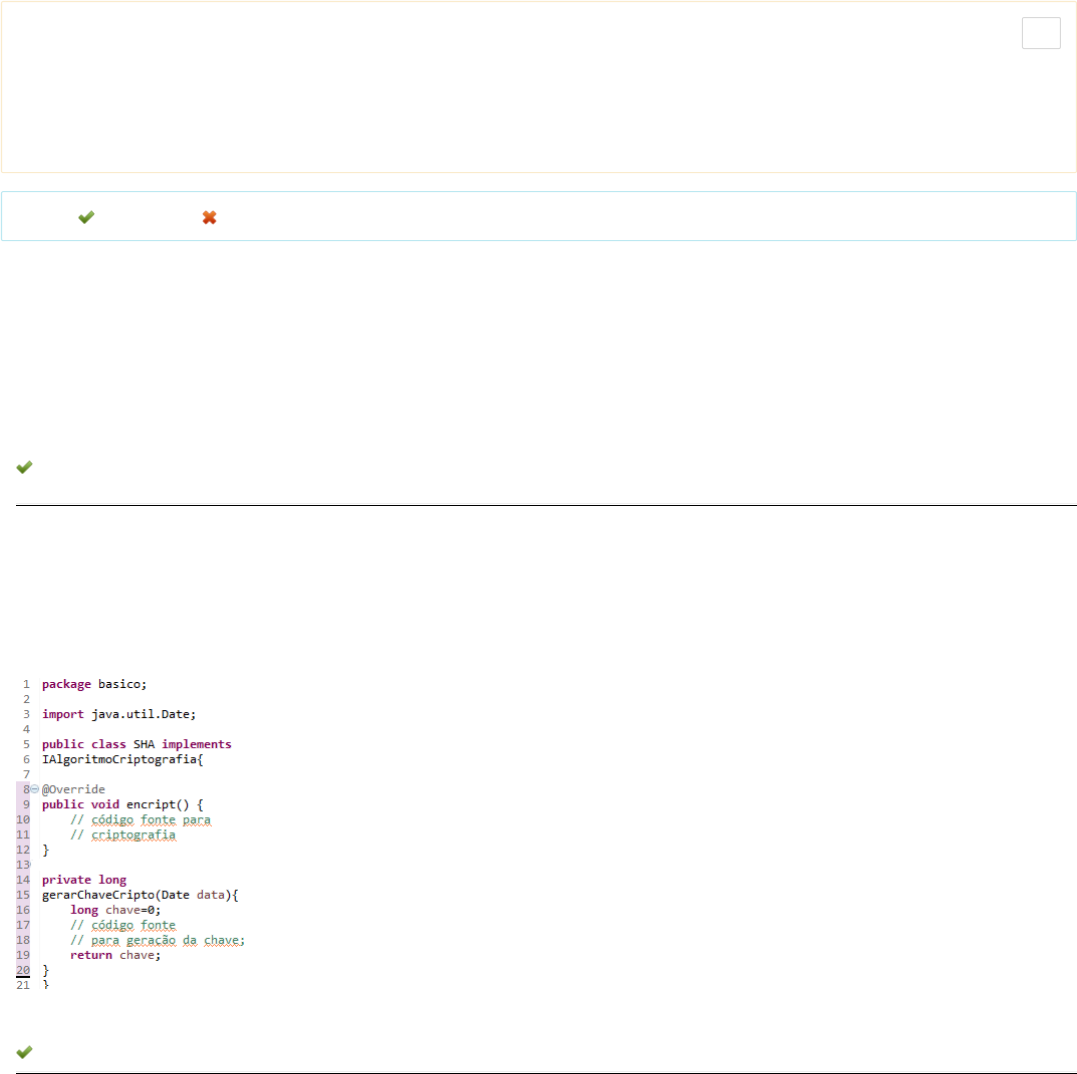 ( ) Se a classe SHA fosse abstrata, ela não poderia fornecer implementação para o método gerarChaveCripto(Date data).
