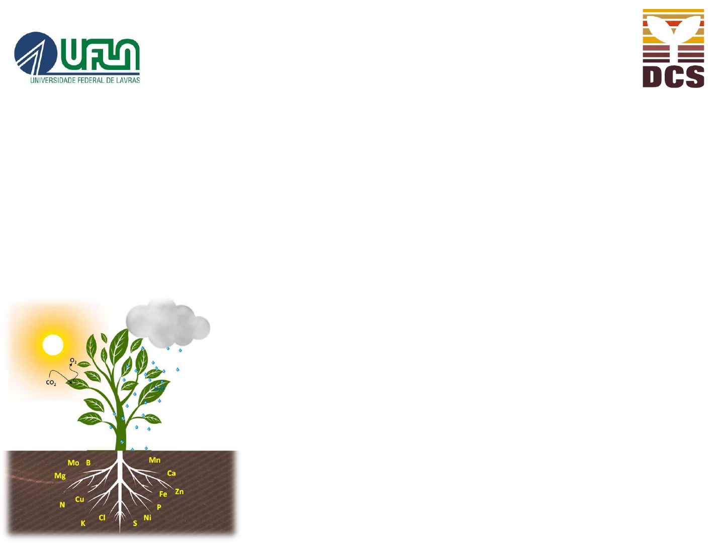 Profa. Dra. Maria Ligia de S. Silva Lavras/MG UNIVERSIDADE FEDERAL DE LAVRAS DEPARTAMENTO DE CIÊNCIA DO SOLO GCS 110 -Disciplina Fertilidade do Solo, Microbiologia e Nutrição de Plantas ABSORÇÃO IÔNICA RADICULAR 1. Introdução - Solo: meio que fornece “M” minerais - Planta: obtém pela absorção radicular . Importante conhecer: . Processos envolvidos ABSORÇÃO IÔNICA RADICULAR CONTATO ÍON-RAIZ Primeira condição a ser atendida . Três processos: a) Intercepção radicular (encontro casual M x raiz) - pequena contribuição (1 a 2 % do total) c) Difusão (movimento em fase aquosa estacionária) - pequenas distâncias - P (principalmente) e K - Importância: localização do fertilizante / umidade essencial b) Fluxo de massa (movimento em fase aquosa móvel) - maiores distâncias - N, S, Ca, Mg e alguns micros Absorção Foliar Redistribuição (Floema) Transporte (Xilema) Contato ion-raiz Absorção radicular - Intercepção radicular - Fluxo de massa - Difusão Fertilizante Foliar RAIZ M H2OM M (3) (1) (2) Os elementos entram em contato com a raiz por interceptação radicular (1), difusão (2) e fluxo de massa (3) . Calcula-se que o: NO3 - movimenta 3 mm por dia; K+ caminharia 0,9 mm, e: H2PO4 - alcançaria 0,13 mm. -ABSORÇÃO IÔNICA: . Pensava-se em simples difusão . Estudos: [M] suco celular >>>> [M] solução solo . Ex: [P] → Solução solo = 0,1 mg/L → Suco celular = 100 mg/L ➔ Portanto, a absorção se dá: . Contra gradiente de concentração . Exige energia metabólica (ATP) Entrada do M no tecido: raiz ou folha Nitella clavata Valonia macrophysa Íon A. B. Relação A. B. Relação Água doce Suco celular B/A Água do mar Suco celular B/A -------------- Mm -------------- -------------- Mm -------------- Potássio 0,05 54 1.080 12 500 42 Cálcio 0,78 10 13 12 2 0,17 Cloro 0,93 91 98 580 597 1 TABELA 2.1 Relação entre a concentração de íons no suco celular e no meio ➔ A ABSORÇÃO IÔNICA É CARACTERIZADA: . seletividade . genótipo . > [M] no suco celular ➔PERGUNTAS: - como as plantas regulam a absorção? - como o M caminha contra um gradiente de concentração? - como o M vence a barreira das membranas? FIGURA 2.2 Representação esquemática dos componentes da célula vegetal (apoplasto) (simplasto)(Vacúolo) PLASMALEMA TONOPLASTO M 2. PROCESSOS DE ABSORÇÃO ASPECTOS ANATÔMICOS - Contra gradiente de [M]? - M vence barreira? Vias de absorção dos nutrientes até o xilema (A) Passivo: Apoplasto, (B) Ativo: Simplasto PARTE AÉREA PROCESSOS DE ABSORÇÃO Quando se mede a absorção de M em função do tempo temos: FIGURA 2.1 Curva de absorção de Ca e P por raízes destacadas de arroz e de feijoeiro (Malavolta et al., 1997) a) ABSORÇÃO PASSIVA Ocupação do apoplasto b) ABSORÇÃO ATIVA Ocupação do simplasto (a) (b) - processo rápido e reversível - favor do gradiente de concentração - não exige energia metabólica (ATP) - processo lento e irreversível - contra gradiente de concentração - exige energia metabólica (ATP) COMPOSIÇÃO DAS MEMBRANAS CELULARES: (natureza lipídica = “barreira” ) - Proteinas: ~ 55 % - Lipídeos: ~ 40 % - Fosfolipídeos - Glicolipídeos ABSORÇÃO ATIVA: Características estabelecidas pelas membranas celulares - processo lento e irreversível - contra gradiente de concentração - exige energia metabólica (ATP) (APOPLASTO) (SIMPLASTO) PLASMALEMA (citoplasma) e TONOPLASTO (vacúolo) MEMBRANAS PORTANTO: a absorção ativa se dá: ➔Contra o gradiente de concentração ➔ através das membranas celulares (barreira) (mas não são intransponíveis) COMO??? “BOMBA ELETROGÊNICA ou BOMBA PROTÔNICA” “CARREADORES ou CARREGADORES” “CANAIS IÔNICOS” Bombas eletrogênicas ou Bombas protônicas atuam no transporte unidirecional de íons (uniporte) e estão acopladas a sistemas geradores de energia. Ex: H+-ATPases uniporte Carreadores ou Carregadores passam por mudanças conformacionais durante o transporte. M1 M2 Canais iônicos são de alta velocidade. Transportam apenas a favor de gradientes de potencial eletroquímico. MODELO HIPOTÉTICO PARA ABSORÇÃO DE ÍONS ATRAVÉS DAS MEMBRANAS CELULARES (Faquin e Rodas, 2016) plasmalema tonoplasto Taiz e Zeiger, 2002 bomba protônica Fase passiva X Fase ativa • Processo físico ou químico, ocorre em sistemas vivos ou não. • Não está ligado à respiração e à fosforilação • Não há gasto de energia direto para o transportador • Espontâneo • Inibidores e temperatura não influem • Não seletivos • • Processo metabólico, ocorre em célula viva • Está ligado à respiração e à fosforilação. • Há gasto de energia direto para o transportador • Não espontâneo • Inibidores e temperatura influem • Seletivos • Não reversível Este trabalho está licenciado com uma Licença Creative Commons - Atribuição-NãoComercial-SemDerivações 4.0 http://creativecommons.org/licenses/by-nc-nd/4.0/ http://creativecommons.org/licenses/by-nc-nd/4.0/