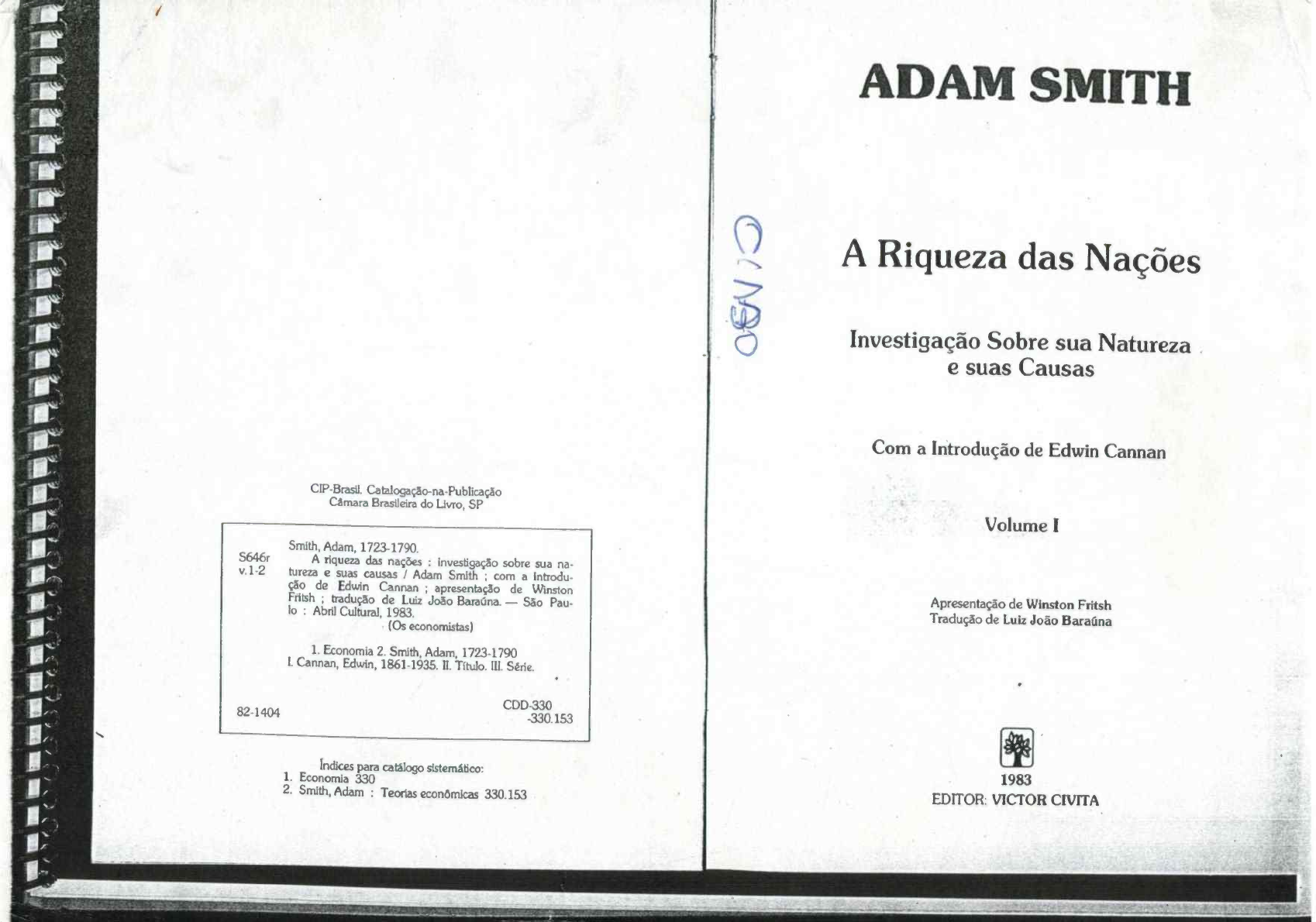 tureza e suas causas I Adam Smith ; com a Introdu-
