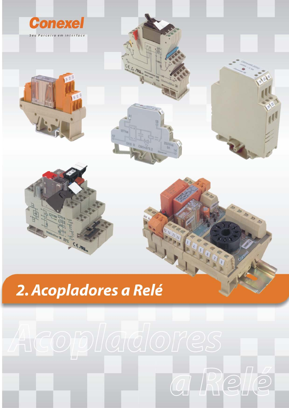 Acopladores a relé A Conexel apresenta a mais completa linha de relés montados em suportes para fixação em trilhos normalizados DIN (TS 35 e TS 32). Temos abaixo as linhas de produtos com suas principais características. A partir da página 2.2 você encontrará as características elétricas e algumas informações complementares para a escolha do acoplador a relé que irá se adequar a sua aplicação. 2.2 - Acopladores a Relé RS 30 • Sistema aberto (PCI aparente) • Relé soldado na PCI • Sistema de conexão por abraçadeira/parafuso PRS/PRZ • Sistema fechado (PCI não aparente) • Relé plugável • Sistema de conexão por abraçadeira/parafuso(PRS) ou mola (PRZ) • Redução no tempo de montagem do cabeamento em +/- 40% com a mola • Pentes para jumpers • Trilho TS 35 • Espessura = 15,5 mm • Importado • Isolante PA 6.6 MRS/MRZ • Sistema fechado (PCI não aparente) • Relé plugável • Sistema de conexão por abraçadeira/parafuso (MRS) ou mola (MRZ) • Redução no tempo de montagem do cabeamento em +/- 40% com a mola • Pentes para jumpers • Espessura = 6,1 mm (não necessita de tampa) • Trilho TS 35 • Importado • Isolante PA 6.6 MCZ • Sistema fechado (PCI não aparente) • Relé soldado na PCI • Sistema de conexão por mola • Redução no tempo de montagem do cabeamento em +/- 40% com a mola • Isolante Wemid - V0 conf. UL 94 • Pentes para jumpers • Trilho TS 35 • Espessura = 6,1 mm (aberto sem tampa) • Montados em trilho colocar tampa somente no último acoplador • Fabricação nacional DK 5/DK 6 • Sistema fechado (PCI não aparente) • Relé soldado na PCI • Sistema de conexão por abraçadeira/parafuso • Trilho TS 32 e TS 35 • Espessura = 8mm* - DK 5 • Espessura = 10mm* - DK 6 • Fabricação nacional • Isolante PA 6.6 * produto fornecido com tampa • Versatilidade na execução de aplicações especiais como proteção dos contatos com varistor (vide pág. 2.25 a 2.29) • Versões com soquete RS para 3 ou 4 contatos reversíveis • Trilho TS 32 e TS 35 • Fabricação nacional • Isolante PA 6.6 A tabela abaixo mostra os diferentes materiais utlizados nos contatos dos relés, suas características principais e suas aplicações. Materiais utlizados nos contatos Material atacado por enxofre e não oxidável. Grande e s t a b i l i d a d e mecânica, baixa tendência para soldar. Aplicável para cargas médias, c o m tensão ≥12V e corrente entre 10mA e 10A. AgNi 0,15 Material atacado por enxofre e não oxidável. Alta resistência ao desgaste com cargas maiores. Uso apropriado para cargas indutivas, com tensão ≥12V e corrente ≥100mA. AgCdO Material atacado por enxofre e não oxidável. Alta resistência a desgaste de material, baixa susceptibilidade para soldar, maior resistência ao contato. Aplicável para cargas médias, ou altas, circuitos com tensão ≥12V e corrente ≥100mA. AgNi 10 Material não atacado por enxofre não oxidável. Melhor resistência ao desgaste de material, baixa deposição de material dos contatos, baixa tendência para soldar e maior dureza. Uso apropriado para cargas médias com tensão ≥1V e corrente entre 1mA e 1A. AgPd 30 Baixa tendência à solda, pequena transferência de material entre os contatos. Uso apropriado para chavear altas cargas em tensão contínua. AgSnO2 MATERIAL CARACTERÍSTICAS APLICAÇÃO Tabela AgSnO2 c/ flash de ouro Baixa tendência à solda, pequena transferência de material entre os contatos. Uso apropriado para chavear baixas correntes. Potência nos contatos na ordem de μW Encapsulamento Obs.: Máxima Fios Cabos AWG Torque Capacidade de Conexão Capacidade de Conexão DK6 - DK5 4mm2 0,13...4mm2 0,5...2.5mm2 26...12 0,4Nm MCZ 1,5 1,5mm2 0,5...1,5mm2 0,5...1.5mm2 22...16 - PSR/ PRZ 4mm2 0,13...4mm2 0,5...2,5mm2 26...12 0,4Nm RS c/ GSE 4mm2 0,5...4mm2 0,5...2,5mm2 22...12 0,4Nm EG 4mm2 0,13...4mm2 0,5...2,5mm2 26...12 0,4Nm EG com BLZ/SL 3,5 pg. 2.30 1,5mm2 0,5...1,5mm2 0,5...1,5mm2 22...16 0,4Nm RS com BLZ/SL 5,08 pg. 2.14 2,5mm2 0,5...2,5mm2 0,5...2,5mm2 22...14 0,6Nm MRS / MRZ 4mm2 0,5...4mm2 0,5...2,5mm2 26...12 0,6Nm Acopladores a relé acionado por tiristores As aplicações em que os acopladores a relé são acionados por tiristores, necessitam de uma corrente maior de consumo. Para estas aplicações, consulte a página 2.28, na qual estão os modelos apropriados para a utilização com tiristores. Acopladores a Relé - 2.3 Proteção dos contatos Na interrupção de circuitos com cargas indutivas (por ex.: bobinas de relés, eletroimãs, eletroválvulas, contatores, etc), aparece uma sobretensão nos contatos, causada pela auto-indução da carga, que pode ser um múltiplo da tensão empregada e que põe em perigo a isolação do circuito. O arco que aparece na abertura dos contatos leva ao rápido desgaste do mesmo. Decorrente desses fatos, torna-se de particular importância a proteção dos contatos. As tabelas seguintes mostram os diversos circuitos utilizados na proteção dos contatos de um relé e suas principais características. 2.4 - Acopladores a Relé Máxima capacidade de interrupção de contatos Acopladores a Relé - 2.5 Máxima capacidade de interrupção de contatos I 2.6 - Acopladores a Relé Figura 9 Máxima capacidade de interrupção de contatos Figura 10 Figura 11 Figura 12 Figura 13 Acopladores a Relé - 2.7 Vida elétrica dos contatos Figura C 107 106 105 104 107 106 105 104 107 106 105 104 2.8 - Acopladores a Relé Vida elétrica dos contatos Figura G Figura H Figura I Figura J Figura K Acopladores a Relé - 2.9 wbr0079 Linha wbr0079 Linha wbr0079 Texto digitado Nota: Ítens com tarja estão descontinuados. Consulte nosso suporte técnico para verificar o ítem alternativo. wbr0079 Texto digitado wbr0079 Texto digitado wbr0079 Linha wbr0079 Linha wbr0079 Linha wbr0079 Linha wbr0079 Linha wbr0079 Linha wbr0079 Linha wbr0079 Linha wbr0079 Linha wbr0079 Linha wbr0079 Linha wbr0079 Linha wbr0079 Linha wbr0