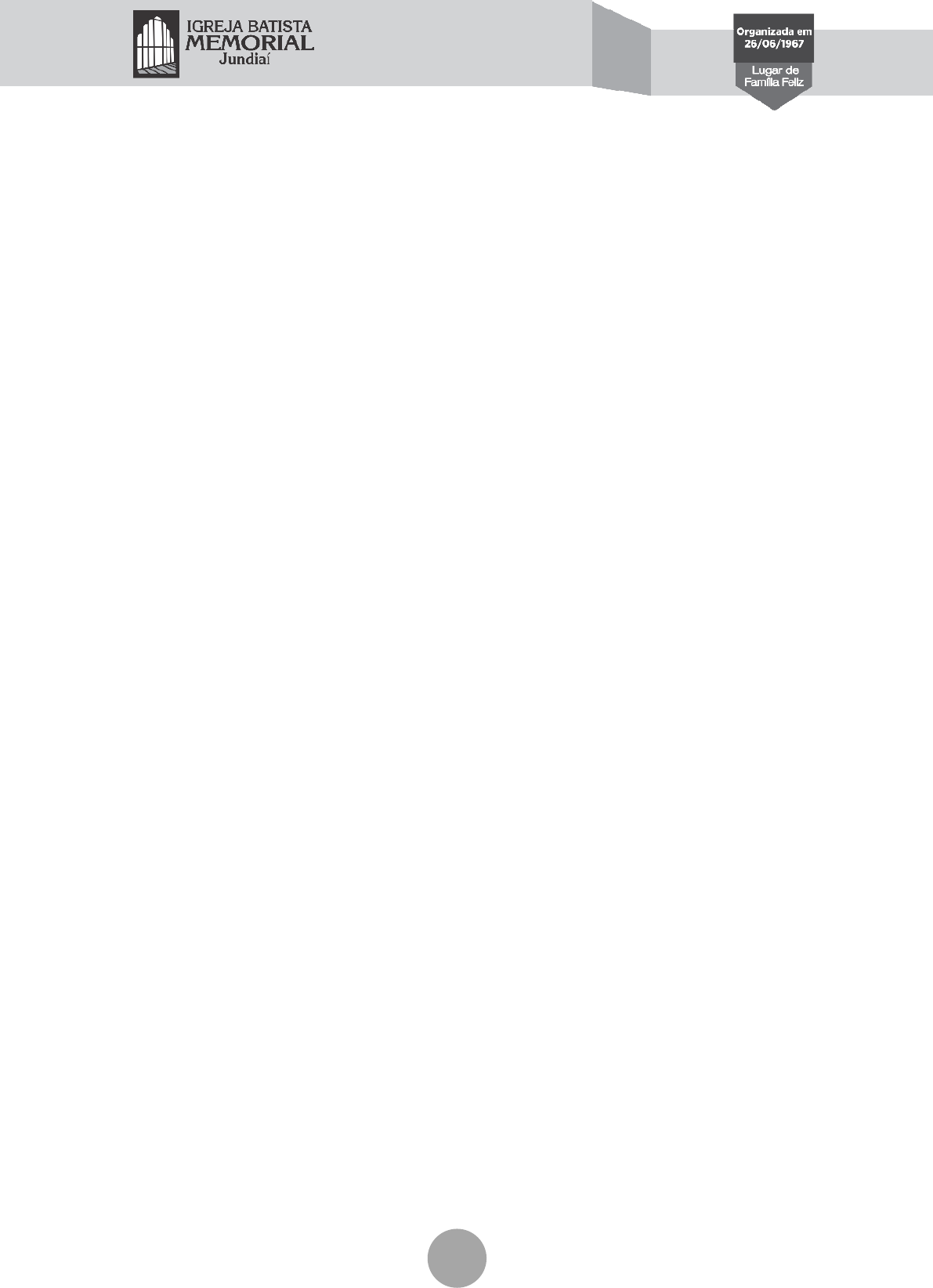 1 MATURIDADE CRISTÃ Seja bem-vindo a Igreja Batista Memorial de Jundiaí, lugar de família feliz. O nosso desejo é que você possa ser uma benção para a nossa igreja e que possamos ser benção para sua vida. Em Filipenses 2.12b encontramos esta orientação do apóstolo Paulo: "...assim também operai (desenvolvei) a vossa salvação com temor e tremor". Esta Escritura está diretamente ligada ao nosso relacionamento de amor com a pessoa de Jesus, que "...foi obediente até a morte, e morte de Cruz" (v. 8b). O livro Maturidade Cristã auxilia os filhos de Deus, novos ou não na fé, a desenvolverem a sua salvação, no maravilhoso processo do crescimento cristão. Amadurecer no Reino de Deus é uma ordem do Senhor Jesus Cristo: “Antes, crescei na graça e no conhecimento de nosso Senhor e Salvador Jesus Cristo", 2 Pedro 3.18. O alvo final é que ao serem ministradas, estas lições gerem mudanças e transformações nas vidas de seus professores discipuladores, atingindo a vida de cada discípulo no contexto da classe ou de pequenos grupos interativos. Assim, cada aluno experimentará a verdadeira maturidade cristã em sua própria vida e será levado pelo Espírito Santo a cuidar de outro irmão, do mesmo corpo, que ainda não atingiu a estatura proposta por Jesus em Efésios 4.13: “Até que todos cheguemos à unidade da fé e do pleno conhecimento do Filho de Deus, ao estado de homem feito, à medida da estatura da plenitude de Cristo". Pr. Elmiro de Oliveira Evangelização, Capacitação e Discipulado 2 INTRODUÇÃO Maturidade cristã é o primeiro Curso que a Igreja Batista Memorial de Jundiaí oferece a todos que estão no início da sua vida cristã. Você que está chegando em nossa Igreja, queremos dar as boas-vindas e desejar que você possa crescer em pleno conhecimento do nosso Senhor Jesus Cristo, para que possa ser benção em nossa Igreja e nossa Igreja ser benção em sua vida. O Senhor Jesus nos ordenou a ir pregar o evangelho, batizar e ensinar todas as coisas que ele nos tem ensinado. Os seus ensinamentos é uma necessidade imperiosa na igreja hoje, tanto para os novos quanto para os mais antigos seguidores de Jesus Cristo. Os cristãos entendem que já aprenderam tudo ao serem batizados e param no seu processo de crescimento espiritual até a maturidade cristã. Desejamos que no decorrer deste aprendizado você possa desejar tornar-se membro de nossa Igreja, gostaríamos que você retirasse sua ficha de membro (se ainda não fez) com os irmãos responsáveis, preenchesse, fizesse uma entrevista e avaliasse o seu nível de conhecimento para que possamos ajudá-lo no seu crescimento espiritual. COMO UTILIZAR ESTE LIVRO Maturidade Cristã pode ser utilizado individualmente, com um discípulo auxiliando outro, ou em grupos de estudo. Este livro foi preparado para todos os crentes, especialmente para: 1. Crentes antigos que não se sentem ainda em condições de fazer novos discípulos. 2. Crentes novos, embora já batizados e integrados à igreja. 3. Crentes excluídos ou afastados da vida e das atividades da igreja. Veja algumas sugestões de como melhor utilizar seu exemplar de Maturidade Cristã: 1. Caso você decida estudar este livro individualmente a. Ore, pedindo a orientação de Deus para o estudo das lições, rogando-lhe que desperte você para o Ministério de Discipulado. b. Estude uma lição de cada vez. Só passe para a lição seguinte quando entender completamente a lição que estiver estudando e tiver realizado os seus projetos concretos de vida. c. Examine todas as referências bíblicas. d. Execute todos os projetos concretos de vida sugeridos. e. Compartilhe, a cada semana, com o maior número possível de pessoas, aquilo que você tem aprendido e as suas vitórias ao colocá-las em prática. f. Ao final das lições, informe-se sobre todo o programa ao MAM (Ministério de Administração de Membros da IBMJ). 3 2. Caso você decida conduzir outro crente à maturidade cristã a. Ore, pedindo a Deus que lhe mostre a pessoa, que oriente você ao ministrar as lições e abençoe o seu aluno, para que ele também seja transformado e envolvido no Ministério de Discipulado. b. Providencie um exemplar do livro para o outro discípulo. c. Marque um horário e local ideal para ambos. d. O seu aluno deve aplicar a outro crente os mesmos estudos que você está fazendo com ele a partir do momento em que sentir que está em condições para isso, o que poderá ocorrer no final do estudo do livro ou após algumas lições. De qualquer modo, acompanhe-o pelo menos nas primeiras visitas que ele fizer para ministrar o livro. e. Seja fiel ao compromisso assumido com o seu aluno. 3. Caso a igreja decida utilizar este livro em grupos de estudo a. Deve haver boa conscientização sobre o aspecto prático das lições. Pode-se, inclusive, ter uma vigília de oração, no primeiro dia do trimestre, com o objetivo de pedir a Deus que desperte a igreja durante o trimestre. b. O pastor pode pregar, a cada domingo, mensagens complementares, enriquecendo o estudo nos grupos. c. Pode-se preparar, a cada semana, um grande quadro, com o verso a ser memorizado. d. O pastor pode sugerir formas para serem mais bem executados os projetos de vida sugeridos em cada lição. e. Os professores dos grupos podem, juntamente com seus alunos assíduos, procurar aqueles que faltaram ao estudo anterior, e ministrar-¬lhes a lição perdida por eles. Isso os porá em condições de acompanhar as demais lições. DISCIPULAR É FAZER IMITADORES! 4 SUMÁRIO 1. O DISCÍPULO E O ESTUDO DA BÍBLIA 05 2. O DISCÍPULO E A ORAÇÃO 12 3. O DISCÍPULO E A VONTADE DE DEUS 18 4. O DISCÍPULO E SUA FAMÍLIA 25 5. O DISCÍPULO E SEU RELACIONAMENTO COM O PRÓXIMO 31 6. O DISCÍPULO E O TESTEMUNHO 36 7. O DISCÍPULO E O FRUTO DO ESPÍRITO SANTO 41 8. O DISCÍPULO E AS DOUTRINAS BÁSICAS 46 9. O DISCÍPULO E AS MANIFESTAÇÕES DE SATANÁS 50 10. O SERVO 55 11. DISCIPULADO 58 12. PRINCÍPIOS DO DISCIP