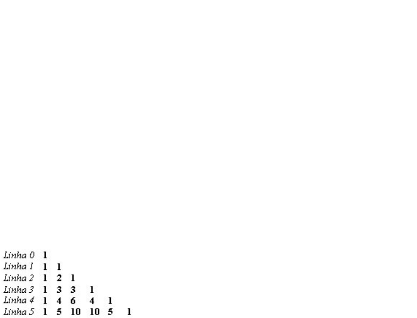 Lista de exercícios E1) Faça um programa que apresente os números de 1 a 10, sendo que cada número deve ser impresso em uma linha e os números ímpares deslocados (\t) a direita. E2) Faça um programa que apresente os números de 1 a 15 na forma de um triangulo, como apresentado a seguir: 1 2 3 4 5 6 7 8 9 10 11 12 13 14 15 Utilize nesse exercício apenas 1 laço E3) Faça um programa que apresente a tabela ASCII (0 a 255), no formato de 16x16, tendo a 1a linha e a 1a coluna rotulada com o valor em hexadecimal de 0 a F. Obs: Inicialmente, substitua os valores < 32 por 32, para evitar a impressão dos códigos de controle. E4) Faça um programa que apresente os números primos menores que 100. E5) Faça um programa que apresente as 6 primeiras linhas do triangulo de pascal.