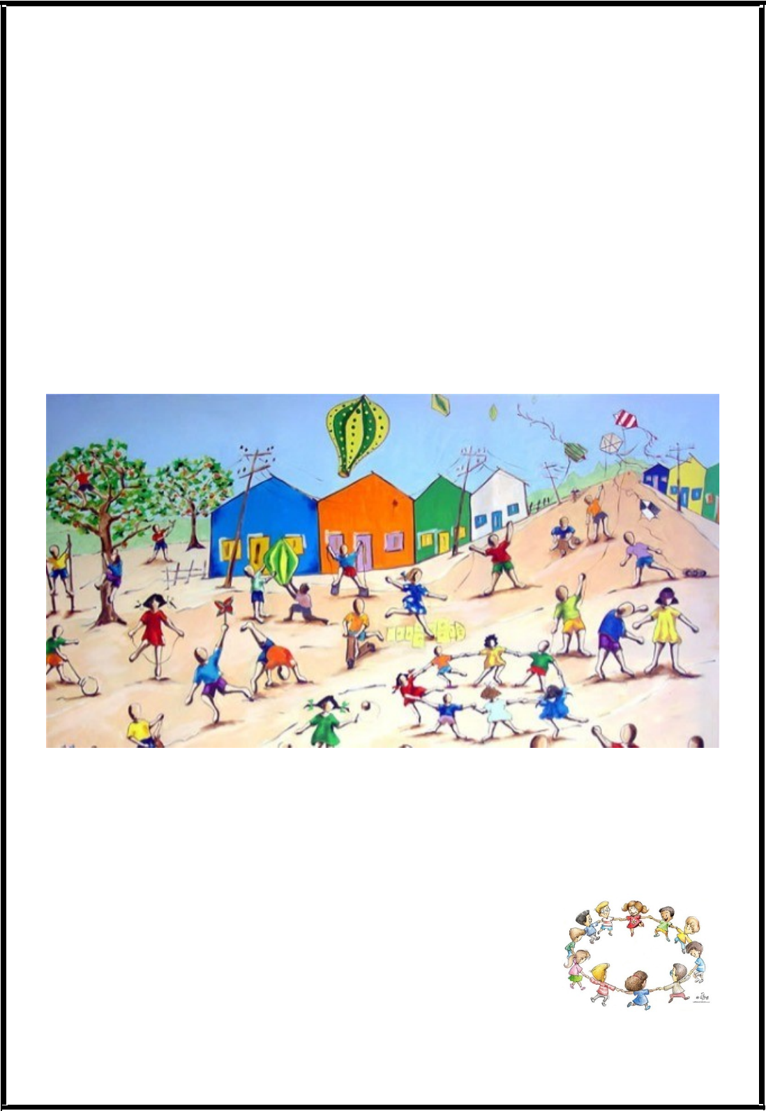 GURUPI,_________DE___________2020 PTOFESSOR(a): Vanessa Lopes SÉRIE: 2º TURMA:_______ ALUNO(a):____________________________________________________ ATIVIDADE DE EDUCAÇÃO FÍSICA As Brincadeiras populares Alguns brinquedos, jogos e brincadeiras tradicionais entre as crianças brasileiras têm origens surpreendentes. Vêm de alguns povos do mundo, como os que deram origem à nossa civilização (o índio, o branco e o negro). Atualmente, no mundo cada vez mais urbanizado, industrializado e informatizado, a tendência é que muitas das brincadeiras tradicionais percam espaço nas preferências infantis. Mesmo assim, jogos e brinquedos como a peteca, a amarelinha, a ciranda, a pipa e a cama de gato têm valor cultural inestimável, e o lugar dessas brincadeiras no folclore já está garantido. 1) Observe a imagem e circule 10 das brincadeiras que aparecem. 2) As crianças da figura acima estão brincando onde? a) ( ) Na escola. b) ( ) Na rua. c) ( ) Dentro de casa. 3) As cantigas de roda são músicas folclóricas cantadas em uma roda. Também conhecidas como cirandas. Escreva a letra C para cada brincadeira de roda. a) ( ) Corre cutia. b) ( ) Queimada. c) ( ) Pegue o rabo. d) ( ) Atirei o pau no gato. e) ( ) Ciranda-cirandinha 4) Complete a cruzadinha com o nome dos brinquedos abaixo. 5) Vamos pintar! 06) Nesse momento de pandemia por causa do Corona vírus precisamos ficar isolados em casa, mas ainda podemos brincar de várias coisas. Tire uma foto sua com o celular brincando sozinha ou com alguém em casa e envie para a tia Vanessa no Whatzapp 981304640. Não esqueça de colocar seu nome e o nome da brincadeira!!! Abraços e até mais!!!