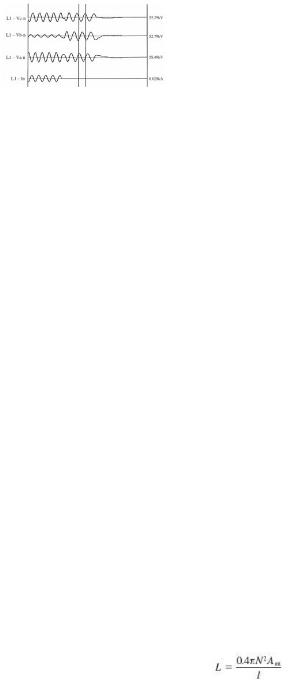 saturado y la corriente de inrush es aproximadamente igual a la corriente de excitación normal. Esto