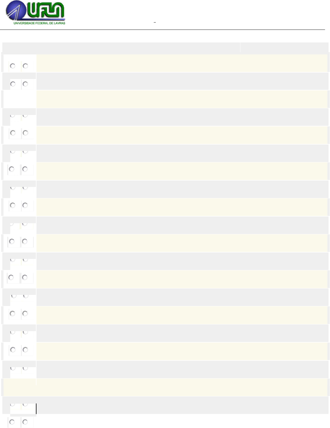 UNIVERSIDADE FEDERAL DE LAVRAS DEPTO DE CIÊNCIA DO SOLO GCS 102 - PEDOLOGIA Exercícios para treinamento 1) Leia as alternativas abaixo e assinale V para verdadeiro e F para falso. V F a) X As rochas são materiais naturais formados pela associação de minerais que, após sofrerem intenso desgaste, darão origem aos solos. b V F As rochas ígneas são originadas do resfriamento do magma. ) X V F c) X As rochas plutônicas o resfriamento do magma ocorre na superfície. d V F As rochas metamórficas são originadas pela transformação de rochas preexistentes. ) X V F e) X São exemplos de rochas sedimentares o mármore e ardósia. f) V F A variação de temperatura é o principal agente do intemperismo físico. X V F g) X A água é o principal agente do intemperismo químico. h) V F Perfil do solo é o corte horizontal feito no solo sendo possível a distinção dos horizontes. X V F i) X O solo é constituído por minerais, ar, água, e material orgânico. Sendo que o ar e a água ocupam o espaço poroso, e o húmus o principal mineral do solo. j) V F As partículas de maiores diâmetro são as matações e as menores são as argilas. X V F k) X As areias são as partículas mais ativas do solo com alta capacidade de retenção de cátions. l) V F As argilas são divididas em silicatadas e oxídicas. X V F m) X As argilas silicatadas indicam um estádio mais avançado de intemperismo do que as oxídicas. n) V F A união do agregados formam a estrutura do solo, podem ser laminar, prismática, blocos ou granular. X V F o) X A variação da intensidade das forças de coesão e adesão sob influência da oxigenação forma a consistência. p V F Quando o solo está úmido e quebra com facilidade ele encontra-se na consistência friável. ) X V F q) X O solo deve ser arado quando a consistência for plástica ou pegajosa. r) V F Um solo que apresenta estrutura bem definida possui maior capacidade de infiltração e retenção de água. X V F s) As argilas oxídicas 1:1 possuem maior capacidade de contração e expansão do que as argilas X silicatadas 2:1. t) V F O solo é variável tridimensionalmente e está em constante modificação provocada pelos agentes do intemperismo. X 2. Assinale (V) para verdadeiro e (F) para falso: (F) Solos que possuem alto teor de argilas silicatadas 2:1 apresentam menor rachaduras que solos com maior teor de argilas oxídicas. (F) As argilas oxídicas, após sofrerem a atuação do intemperismo, darão origem às argilas silicatadas 1:1. (V) Em regiões onde as chuvas são escassas há maior possibilidade de ocorrências nos solos de argilas silicatadas 2:1. (V) Quanto maior a CTC de um solo, maior a capacidade de reter nutrientes para as plantas. 3. A adubação baseia-se na devolução dos nutrientes perdidos ao solo. Uma forma de perder esses nutrientes é através das plantas, que os absorvem durante a fotossíntese. Outra forma de o solo perder os nutrientes é por: erosão. Com base no que você acabou de aprender, por que devemos entender a CTC para fazermos adubação nos solos? Os adubos possuem elementos químicos que ao reagirem liberam cations ou anions. Então os cátions são controlados pela CTC e adsorvidos pelas argilas, então a CTC retém e disponibiliza os íons ao solo por meio das argilas, que liberam os íons lentamente ao solo 4. Como você avalia, em campo, a consistência do solo? Pegando uma porção de solo e esfregando entres os dedos. Se estiver quebrando com facilidade, o solo estará friável, se conseguir moldar sem com que ele quebre, o solo estará plástico, e se ele ficar aderindo as mãos com dificuldade de soltar, ele estará pegajoso. 5. Se o solo estiver pegajoso, quais são suas características? Identifique, nas opções a seguir, quais são elas: 1. ( ) Ao esfregar o solo entre os dedos indicador e polegar você sentirá a sensação de vidro moído entre os dedos. 2. ( ) Ao esfregar o solo entre os dedos indicador e polegar você sentirá a sensação de talco entre os dedos. 3. (X) Ao tentar moldar uma porção de solo, você não conseguirá, pois ele fcará aderido aos seus dedos. 6. É aconselhável trabalhar um solo pegajoso? Por quê? Não, o solo não deve ser trabalhado pois o maquinário trafegará com dificuldade (podendo até ser danificado) e o serviço não terá o resultado esperado. 7. Antônio foi passar um final de semana na fazenda de seus avós. Numa bela tarde de domingo, após o almoço, com a família reunida na varanda da casa, chega o seu primo Júnior, com um pedaço de rocha na mão, e fala: “Esta é uma rocha sedimentar. Eu a peguei lá no alto do morro.” Você acha que a rocha encontrada por Júnior pode ser uma rocha sedimentar? Eu acho que não, porque ele encontrou ela no alto do morro, e as rochas sedimentares são formadas por sedimentação de feldspato, mica e quartzo trazidos de locais elevados. Após a sedimentação eles sofrem intemperismo e tornam-se rochas sedimentares. Como a rocha encontrada estava no local mais elevado, acredito que não seja uma rocha sedimentar. 8. Enumere os eventos que constituem a pedogênese: (3) Pequenos vegetais e animais colonizam fissuras úmidas da rocha, aumentando sua deterioração. (1) A rocha se torna exposta aos diversos agentes do intemperismo. (4) Substâncias químicas acumuladas na rocha tornam a água acumulada ácida, acelerando o processo de degradação da rocha. (2) A água se dilata e contrai, aumentando pequenas rachaduras da rocha. 9. Todas as rochas podem passar por essa sequência de eventos. Isso significa que os solos são todos iguais, já que são formados pelos mesmos eventos? Discuta. Não, os eventos podem até ser parecidos, mas existem vários outros aspectos que influenciam na formação e diferenciação dos solos, como por exemplo, a rocha mãe (rocha de origem). 10. Agora que você viu como utilizar um triângulo textural, vamos praticar. Qual a classe textural de um solo que possui 10% de argila, 10% de s