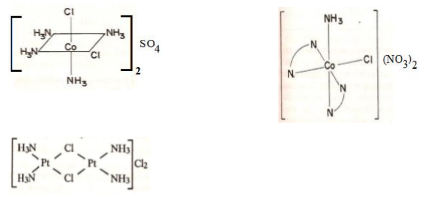 QUÍMICA INORGÂNICA - 2019 / 1ºS GABARITO - EXERCÍCIOS - NOMENCLATURA QUESTÃO 01 a) diclorocuprato(I) b) tetraaqualítio(I) c) tetracarbonilníquel(0) d) hexacianoferrato(II) QUESTÃO 02 a) [Co(acac)Cl2(py)2] - b) [CoNH3Cl(en)2]2+ b) [Co(NH3)5(NCS)] 2+ d) [Co(NH3)4Cl(NO2)] + e) [Ir(CO)Cl(O2)(PPh3)2] QUESTÃO 03 a) di-µ-cloro-bis[dicloouro(III)] b) tri- µ-carbonil-bis[tricarbonilferro(0)] c) µ-hidroxo-bis[pentaaminocromo(III)] d) di-µ-cloro-bis[diaminoplatina(II)] e) µ-hidrido-bis[pentacarbonilcromato(0)] QUESTÃO 04 a) cis-[Co(NH3)4Cl2]2SO4 b) cis-[CoNH3Cl(en)2] (NO3)2 c) [(NH3)2PtCl2Pt(NH3)2] Cl2