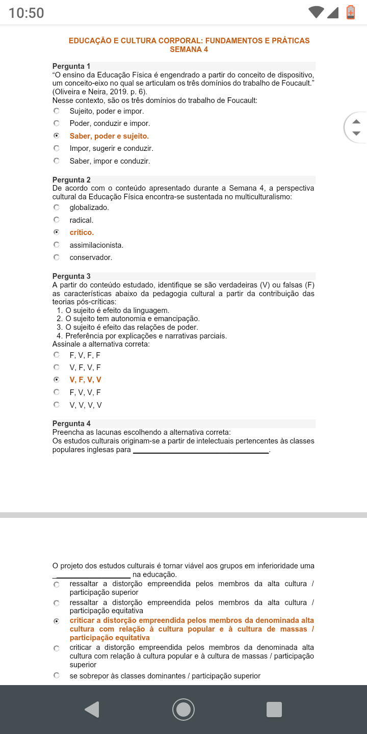 Preencha as lacunas escolhendo a alternativa correta: Os estudos culturais originam-se a partir de intelectuais pertencentes as classes populares inglesas para: O projeto dos estudos culturais e tornar viavel aos grupos em inferioridade uma na educacao. ressaltar a distorcao empreendida pelos membros da alta cultura / participacao superior. ressaltar a distorcao empreendida pelos membros da alta cultura participacao equitativa. criticar a distorcao empreendida pelos membros da denominada alta cultura com relacao a cultura popular e a cultura de massas / participacao superior. se sobrepor as classes dominantes participacao superior.