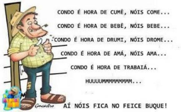 ATIVIDADES DE FIXAÇÃO Leia o quadro abaixo: a) Que variedade linguística o personagem da imagem acima usou para se expressar: linguagem formal ou informal? R:Informal b) Observando bem a imagem, diga pelo menos dois motivos que contribuem para que o personagem fale dessa forma? R: local onde vive(roça), forma que se entende com os demais que convive; c) Esse jeito como o personagem falou dá para o ouvinte/leitor compreender? Por quê? R:Sim, pois ele usa de linguagem informal para expressar, algumas palavras como “condo” para quando, “Cumê” para comer..., mas mesmo assim podemos compreender . d)Essa linguagem usada por ele é considerada “correta” ou “errada”? Por quê? É uma variação linguística aceita, não existe forma certa ou errada, depende da região/ambiente que está inserido. 2- Que variedade linguística (formal ou informal) podemos ou devemos usar nas seguintes situações sociais: a) Falando sobre política num canal de televisão. F_ b) Numa pequena mensagem de celular para um amigo próximo.___I_ c) Numa carta de reclamação para o presidente.____F__ d) Numa conversa na praça entre amigos.___I__ e) Um debate numa conferência nacional sobre meio ambiente.____F_ f) Uma mensagem de Whatsapp para irmã explicando que você foi à padaria comprar pão.___I__ g) Um bilhete para a diretora da sua escola explicando o porquê da sua falta de hoje.__F__ h) Um artigo de opinião solicitado pelo professor de português._ __F_____ i) Na redação do ENEM. F______