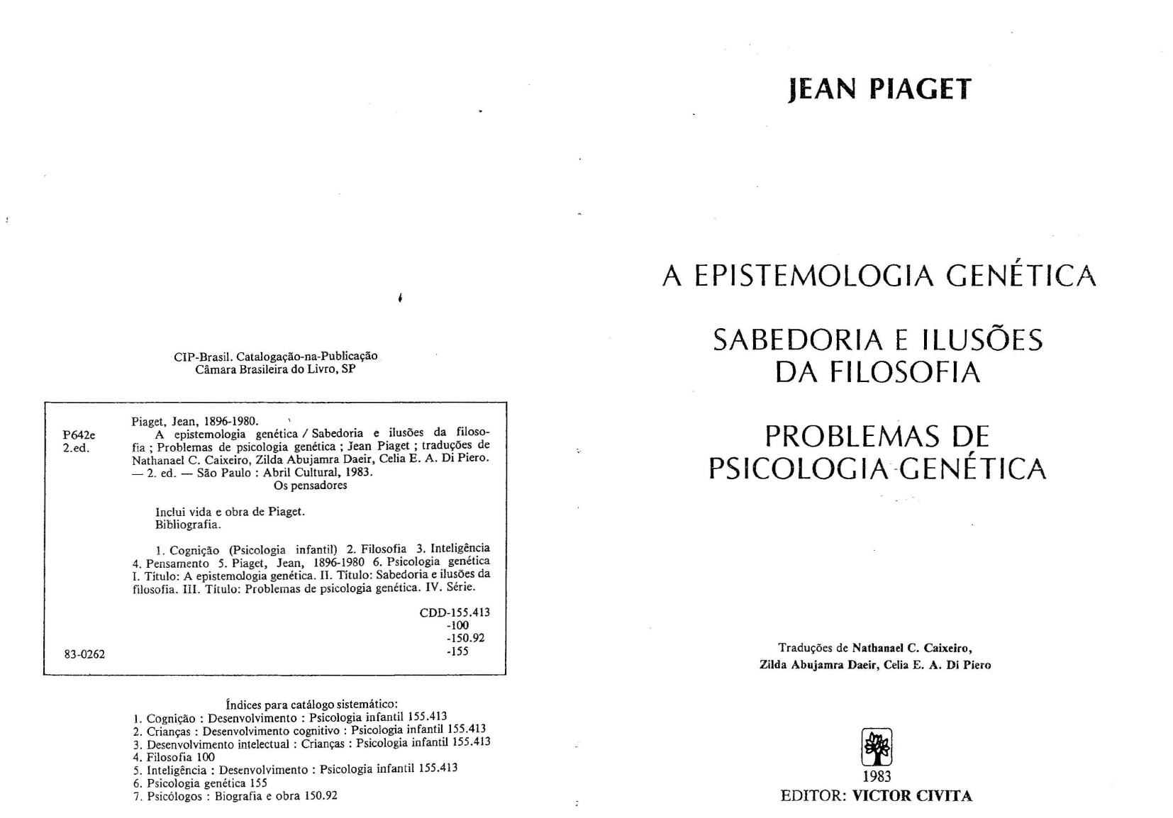 r. Título: A epistemologia genética. n. Título: Sabedoria e ilusões da