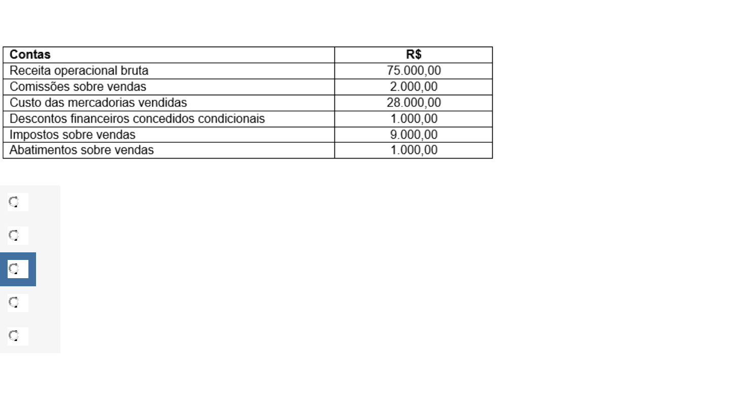 Questão 1/10 - Estrutura das Demonstrações Contábeis A empresa Bom Sucesso apresentava em dezembro de 2019 as seguintes informações contábeis: Considerando os dados apresentados, o Lucro Bruto da empresa Bom Sucesso é de: A R$ 34.000,00 B R$ 35.000,00 C R$ 37.000,00 D R$ 65.000,00 E R$ 75.000,00 Questão 2/10 - Estrutura das Demonstrações Contábeis De acordo com Marion (2018), as reservas de lucros compreendem as destinações específicas ao lucro que não foi distribuído. Isto quer dizer que as reservas de lucros são a parte do lucro que não é retirada pelos sócios ou acionistas e que ficam reservadas para um determinado fim, em especial para reinvestimento na operação (BORINELLI; PIMENTEL, 2018). Sendo assim, associe as reservas de lucros descritas a seguir com as finalidades correspondentes: (1) Reserva legal. (2) Reserva estatutária. (3) Reservas para contingências. (4) Reservas de lucros a realizar. ( ) criada a partir do lucro líquido do exercício, com um percentual de 5% (cinco por cento) deste, não podendo essa reserva exceder a 20% (vinte por cento) do capital social. ( ) criada com o objetivo de compensar, em exercício futuro, a diminuição do lucro decorrente de perda julgada provável, e que valor possa ser estimado. ( ) sua constituição está condicionada a superação da parcela do lucro líquido do exercício pelo dividendo obrigatório. ( ) criadas a partir do estatuto da companhia para fins diversos, conforme critérios definidos pela Lei das Sociedades Anônimas. A sequência correta, de cima para baixo, é: A 1, 2, 3, 4 B 1, 3, 4, 2 C 2, 3, 1, 4 D 4, 3, 1, 2 E 3, 4, 2, 1 Questão 3/10 - Estrutura das Demonstrações Contábeis A demonstração do resultado do exercício tem por finalidade apresentar o resultado econômica da entidade. O resultado é auferido pelo total das receitas deduzido das despesas. Quando a receita é maior que a despesa se tem lucro e quando a receita é menor que a despesa se tem prejuízo. Sendo assim, analise as informações a seguir para responder à questão. A demonstração do resultado de uma empresa ao final do ano de 2019 apresentou os seguintes valores: O lucro antes das despesas financeiras e imposto de renda da empresa é: A R$ 1.800,00. B R$ 1.900,00. C R$ 2.000,00. D R$ 2.100,00. E R$ 2.200,00. Questão 4/10 - Estrutura das Demonstrações Contábeis A Demonstração dos Lucros ou Prejuízos Acumulados (DLPA) discrimina o valor relativo ao resultado do final da conta lucros ou prejuízos acumulados do período anterior em uma conta denominada de “saldo do início do período”. Sobre a composição do saldo do início do período na DLPA, analise as asserções a seguir e a relação entre elas: I. Nas sociedades por ações, o saldo da conta do início do período na DLPA será zero ou será negativo (prejuízos acumulados). Porque: II. Todo o lucro obtido deve ser destinado para a constituição das Reservas de Lucros ou para a Distribuição de Dividendos, consequentemente o saldo do início do período não poderá ser positivo. Assinale a alternativa correta: A As asserções I e II são proposições falsas B A asserção I é uma proposição verdadeira, e a II é uma proposição falsa C A asserção I é uma proposição falsa, e a II é uma proposição verdadeira D As asserções I e II são proposições verdadeiras, e a II é uma justificativa da I E As asserções I e II são proposições verdadeiras, mas a II não é uma justificativa da I Questão 5/10 - Estrutura das Demonstrações Contábeis Antes das alterações na Lei nº 6.404/76, era permitido manter saldos positivos na conta lucros ou prejuízos acumulados. Entretanto, com as mudanças na lei, as companhias ficaram proibidas de manterem saldos positivos em lucros acumulados, o que as obriga a dar alguma destinação aos lucros não distribuídos. De acordo com Marion (2018), as reservas de lucros podem ser conceituadas como destinações específicas ao lucro que não foi distribuído. Neste contexto, as reservas de lucros são constituídas pelas contas: A Reserva legal, reservas estatutárias, reservas para contingências, reserva de incentivos fiscais, reservas de lucros para expansão e reserva de lucros a realizar B Reservas de capital, reservas estatutárias, reservas para contingências, reserva de incentivos fiscais, reservas de lucros para expansão e reserva de lucros a realizar. C Reservas de capital, reserva legal, reservas para contingências, reserva de incentivos fiscais, reservas de lucros para expansão e reserva de lucros a realizar. D Reservas de capital, reserva financeira, reservas para contingências, reserva de incentivos fiscais, reservas de lucros para expansão e reserva de lucros a realizar. E Reservas contingenciais, reserva financeira, reserva de incentivos fiscais, reservas de lucros para expansão, retenção de lucros e reserva de lucros a realizar. Questão 6/10 - Estrutura das Demonstrações Contábeis Apesar de a DLPA ser um instrumento importante para a evidenciação das mutações ocorridas na conta lucros ou prejuízos acumulados, ela pode ser substituída por outro demonstrativo. De acordo com a Lei nº 6.404/76, art. 186, § 2º, a demonstração de lucros ou prejuízos acumulados poderá ser incluída na seguinte demonstração: A Balanço Patrimonial B Demonstração do Valor Adicionado C Demonstração dos Fluxos de Caixa D Demonstração do Resultado do Exercício E Demonstração das Mutações do Patrimônio Líquido Questão 7/10 - Estrutura das Demonstrações Contábeis As contas patrimoniais devem ser classificadas em razão de sua natureza e suas características. Outro fator que deve ser considerado na elaboração do Balanço Patrimonial é o fator “tempo”, pois deve-se levar em conta o prazo de realização ou de vencimento das contas. Nesse sentido, o art. 178 da Lei nº 6.404/76 determina a estrutura do Balanço Patrimonial nos seguintes grupos: A ATIVO: ativo ci
