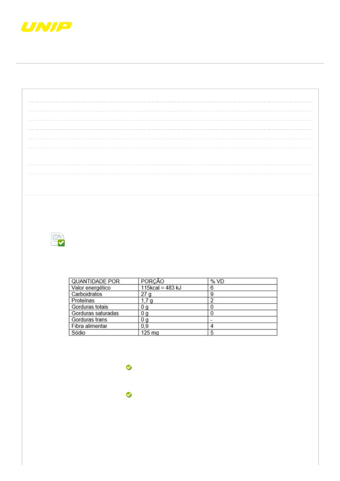 Comentário: Como se observa na tabela, 1 xícara de corn �akes