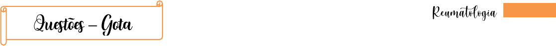 1 1. Homem, 72 anos, com dor intensa e edema em ambos os joelhos imediatamente após cirurgia de hérnia inguinal. Há sinais inflamatórios em ambos os joelhos com grande derrame articular. A artrocentese revela presença de cristais birrefringentes positivos no líquido sinovial. A coloração do Gram é negativa. O diagnóstico mais provável é: a) Gota. b) Artrite séptica. c) Pseudogota. d) Artrite reativa 2. Paciente de 45 anos, com diagnóstico prévio de gota, procura o pronto atendimento com dor aguda em primeiro pododáctilo de pé esquerdo. Nega outras comorbidades. Qual é o manejo adequado da crise aguda de gota? a) Evitar anti-inflamatórios e aumentar a dose do alopurinol b) Manter a dose do alopurinol, introduzir colchicina e anti-inflamatórios c) Manter a dose da colchicina e suspender o alopurinol d) Introdução de antimicrobiano pelo calor local e vermelhidão. e) Metilprednisolona em pulso - 1 grama ao dia por 3 dias 3. Assinale a opção INCORRETA em relação ao tratamento da crise aguda de gota: a) Alopurinol b) Indometacina c) Colchicina d) Celecoxib e) Corticoide 4. Homem de 42 anos, previamente assintomático, apresenta-se com dor em articulação metatarsofalangiana a E de início súbito, noturna, de forte intensidade e após libação etílica (cerveja). Ao exame físico está afebril e observam-se sinais evidentes de artrite na referida articulação. Entre as afirmativas abaixo relacionadas, assinale a ERRADA: a) O diagnóstico de certeza é confirmado a partir do achado de cristais de urato no líquido articular. b) Formação de cálculos renais de ácido úrico e insuficiência renal crônica são complicações em longo prazo. c) Nível sérico de ácido úrico dentro dos valores de referência não é compatível com este caso clínico. d) Obtém-se resposta clínica dramática com o uso de anti-inflamatórios não esteroides. 5. Um homem de 35 anos com artrite aguda monoarticular envolvendo o 1º pododáctilo sofre de: a) Artrite reumatoide. b) Gota. c) Artrite gonocócica. d) Lúpus eritematoso sistêmico. e) Traumatismo 2 6. Paciente do sexo masculino, 51 anos, procura atendimento médico devido a apresentar tontura e melena há cerca de 5 horas. Faz uso frequente de anti-inflamatório não hormonal para alívio de crises recorrentes de monoartrite há 5 anos, já tendo acometido a primeira articulação metatarsofalangiana direta, tornozelo esquerdo, joelho direito e esquerdo. Ao exame estava descorado ++/4+; FC: 92 bpm; PA: 100 x 60 mmHg. Ausculta cardiopulmonar normal. Abdome doloroso à palpação em epigástrio, sem visceromegalias e RHA presentes e normais. Toque retal indolor, sem tumorações ou nodulações, com presença de melena em ampola retal. Exames iniciais: hemoglobina: 9,5 g/dl; hematócrito: 29%; plaquetas: 280.000/mm³; TAP: 88%; INR: 1,05; creatinina: 2,6 mg/dl; ureia: 81 mg/dl. Mediante o quadro clínico acima, é CORRETO afirmar que: a) São possíveis fatores precipitantes das crises de artrite: uso de diuréticos, AAS, ciclosporina, consumo de cerveja e de frutos do mar. b) O nível de ácido úrico pode estar normal em até 85% das crises agudas. c) Independentemente do valor de ácido úrico, deve-se utilizar alopurinol na crise aguda para reduzir o processo inflamatório intra-articular. d) É uma condição mais frequente do gênero feminino, representando cerca de 90% dos casos. e) O diagnóstico definitivo do quadro articular poderia ser realizado através da ressonância magnética 7. Antônio, 65 anos, com hipertensão, diabetes mellitus tipo 2 e doença articular degenerativa, tem dor aguda intensa das articulações metatarsofalangianas e edema do hálux esquerdo. O exame físico mostra artrite da primeira metatarsiana esquerda com dor, edema, calor e eritema. Não há história de traumatismo ou outros problemas clínicos. Assinale a alternativa CORRETA quanto ao diagnóstico do paciente: a) Artrite séptica por gonococos b) Artrite reativa por Chlamydia c) Artrite reativa por Borrelia d) Artrite gotosa e) Artrite por Mycoplasma 8. A condrocalcinose está relacionada a condições clínicas como hipotireoidismo, hipomagnesemia, hipofosfatemia e hiperparatireoidismo, e manifesta-se como uma monoartrite semelhante à gota. Que substância forma depósitos na articulação de um paciente com condrocalcinose? a) Cristais de urato b) Cristais de fosfato de cálcio c) Cristais de pirofosfato de cálcio d) Cristais de carbonato de cálcio 9. A gota é uma anomalia do metabolismo de ácido úrico que resulta em deposição de cristais de urato em determinados tecidos. Essa doença apresenta incidência maior em homens com histórico familiar pregresso. Em relação à dosagem de ácido úrico sérico, pode ocorrer a seguinte situação: a) Elevação em qualquer situação (gota aguda ou crônica) b) Diminuição em qualquer situação (gota aguda ou crônica) c) Elevação nos casos de gota aguda d) Diminuição nos casos de gota crônica e) Taxas normais podem ser vistas em casos de gota aguda 3 10. A melhor opção para o tratamento do primeiro episódio de podagra é: a) Anti-inflamatório não esteroide b) Paracetamol c) Tetraciclina d) Alopurinol 11. Com relação à gota, assinale a alternativa INCORRETA: a) A presença do cristal de monourato de sódio no líquido sinovial é a condição para o diagnóstico da doença b) Na maioria das vezes a hiperuricemia acontece por uma produção excessiva em detrimento de uma excreção diminuída c) A precipitação do cristal de monourato de sódio requer que as condições teciduais estejam em acidose, sendo as articulações e os rins os locais mais frequentemente precipitados d) Pacientes hiperuricêmicos podem ter a primeira crise de monoartrite na primeira metatarsofalangiana, após longo tempo assintomático e) São condições predisponentes para a crise de gota, o consumo de álcool, a dieta para emagrecimento, o jejum prolongado, os diuréticos e o pós-operat