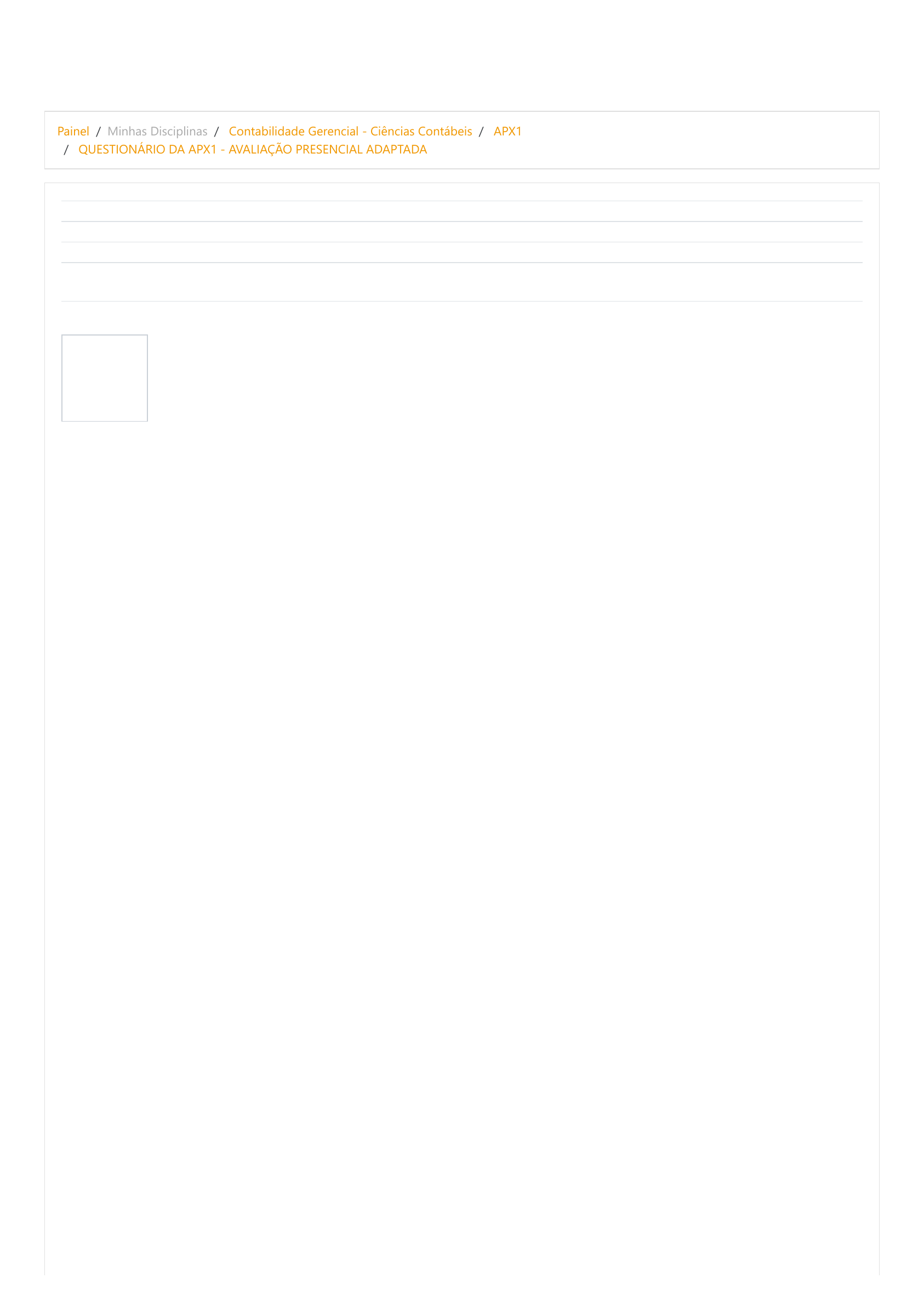 Painel / Minhas Disciplinas / Contabilidade Gerencial - Ciências Contábeis / APX1