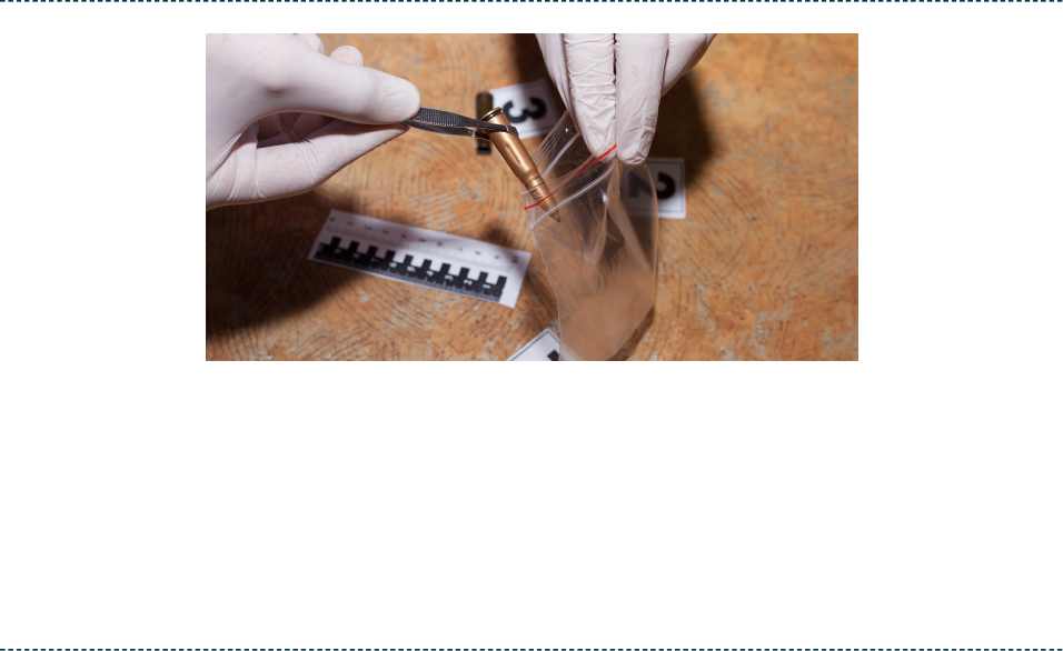 Perícia Forense - Balística Aula 8: Requisitos dos padrões em Balística INTRODUÇÃO A obtenção de padrões adequados de projéteis ou de estojos para o confronto microscópico não é tarefa fácil. Fica ainda mais difícil quando há a necessidade da produção de disparos com cartuchos de indústrias estrangeiras. A identificação indireta das armas de fogo é realizada pela comparação de projéteis e estojos-padrão com os questionados. O resultado do trabalho depende, em grande parte, das características dos padrões obtidos. É o que veremos nesta aula. Vamos lá! OBJETIVOS Estabelecer os requisitos dos padrões em Balística na coleta de projéteis e estojos-padrão. Demonstrar os cuidados a serem tomados durante a coleta de projéteis e estojos-padrão. Requisitos dos padrões em Balística A identificação indireta das armas de fogo dependerá da qualidade dos requisitos dos padrões usados para identificar projéteis e estojos em exames macro e microcomparativos Os projéteis e estojos, colhidos com o fim específico de confronto, denominados de padrões, devem atender aos requisitos de autenticidade, adequabilidade, contemporaneidade e quantidade. Autenticidade É o primeiro e mais importante dos requisitos para os padrões em Balística. Um padrão é autêntico, genuíno ou legítimo quando tiver origem certa e inquestionável, isto é, quando for obtido de uma determinada arma à qual se atribui sua origem. Como os projéteis-padrão identificam a arma? A identificação dos estojos-padrão de armas semiautomáticas e automáticas necessita de um cuidado especial porque, nestas armas, os estojos são ejetados no momento dos disparos. Os padrões devem ser colhidos pelo perito que realizará os exames. O perito poderá identificá-los, gravando na base dos projéteis ou em sua ogiva algum sinal, letra ou número característico e colando, na superfície cilíndrica dos estojos, etiquetas identificadoras. Adequabilidade Os projéteis e estojos-padrão serão adequados quando forem obtidos a partir de cartuchos com as mesmas características (marcas, calibre e composição) dos cartuchos que deram origem aos projéteis e estojos questionados. Os fabricantes produzem cartuchos para cada calibre com características balísticas próprias. Existem variações em cartuchos de mesma marca e entre marcas diferentes para um mesmo calibre. O calibre dos projéteis-padrão tem que coincidir com o dos projéteis questionados. Por esse motivo, deve-se determinar o calibre dos projéteis questionados com base em seu diâmetro, comprimento e massa. SAIBA MAIS , A Tabela de Massa e Medidas de Projéteis da Companhia Brasileira de Cartuchos (CBC) (galeria/aula8/docs/a07_doc1.pdf) foi produzida a partir de nove projéteis para cada calibre, expelidos pelo cano de três armas de marcas diferentes. Os dados da tabela são a média obtida dos diversos projéteis para cada calibre. Contemporaneidade Um cartucho será contemporâneo em relação a outro quando tiver sido fabricado na mesma data, isto é, tiver a mesma idade. A idade dos cartuchos usados para colher padrões influi no trabalho de microcomparação e na identificação indireta das armas de fogo. É fundamental saber a idade dos cartuchos, quando os cartuchos usados não são de fabricação recente em face de sua vida útil (glossário). Cartuchos Os cartuchos empregados para obter os padrões devem: • Possuir a mesma marca e o mesmo calibre dos cartuchos questionados; • Conter a mesma quantidade e o mesmo tipo de pólvora. Projéteis-padrão Os projéteis-padrão devem ter a mesma: • Forma quanto à ogiva (ponta) e base dos projéteis questionados; • Massa (peso); • Composição. Estojos-padrão Os estojos-padrão devem: • Possuir o mesmo tipo de espoleta (Berdan ou Boxer), com espessura e material idênticos. Espoletas Berdan (capsula de espoletamento) e Boxer têm estruturas diferentes, o que influi na forma e profundidade da marca de percussão e na quantidade e qualidade das microestrias que se formam na superfície externa. http://estacio.webaula.com.br/cursos/gon915/galeria/aula8/docs/a07_doc1.pdf Cartuchos marca CBC, estocados na embalagem original, em condições moderadas de temperatura (20 a 25 graus centígrados) e de umidade relativa do ar (40 a 60%), têm uma vida útil prolongada, e pode superar dez anos. A vida útil de cartuchos de armas em coldres é imprevisível, por causa dos fatores que influenciarão sua conservação. Quando a arma suspeita é apreendida com cartuchos no tambor ou carregador, deve-se usá-los para a colheita dos padrões. Esses cartuchos, na maioria dos casos, são contemporâneos em relação ao cartucho utilizado no tiro que originou o projétil e/ou estojo questionado. Nos cartuchos da CBC, pode-se estabelecer a data ou período de fabricação por meio das gravações na base (culote) dos cartuchos ou estojos e na espoleta. Nos cartuchos dessa marca, ocorreram alterações no tipo e na posição das gravações ao longo dos anos. Cartucho CBC calibre 9mm (Espoleta Verdan) Com o código gravado no estojo (no culote) e na caixeta ou caixa de transporte é possível realizar consultas em tempo real no banco de dados (glossário), obtendo-se informações sobre o adquirente do produto, número de nota fiscal e da autorização. A imagem a seguir apresenta o código gravado no estojo. Quantidade Quantos padrões são necessários para um exame microcomparativo? Não é possível estabelecer um número determinado de padrões, pois a quantidade pode variar caso a caso. Deverão ser colhidos tantos padrões quantos forem necessários para formar a convicção do perito. O tempo decorrido entre o fato e a data do exame influi na quantidade de padrões a serem colhidos. Em geral, quanto maior for este prazo, mais difícil se tornará o exame e maior número de padrões exigido na colheita. O ideal, na obtenção de padrões, é a utilização de carregamento total do tambor