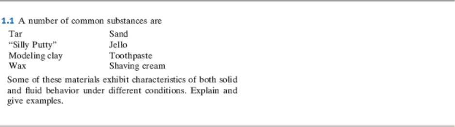 Problem 1.1 [Difficulty: 3] Given: Common Substances Tar Sand “Silly Putty” Jello Modeling clay Toothpaste Wax Shaving cream Some of these substances exhibit characteristics of solids and fluids under different conditions. Find: Explain and give examples. Solution: Tar, Wax, and Jello behave as solids at room temperature or below at ordinary pressures. At high pressures or over long periods, they exhibit fluid characteristics. At higher temperatures, all three liquefy and become viscous fluids. Modeling clay and silly putty show fluid behavior when sheared slowly. However, they fracture under suddenly applied stress, which is a characteristic of solids. Toothpaste behaves as a solid when at rest in the tube. When the tube is squeezed hard, toothpaste “flows” out the spout, showing fluid behavior. Shaving cream behaves similarly. Sand acts solid when in repose (a sand “pile”). However, it “flows” from a spout or down a steep incline. Problem 1.2 [Difficulty: 2] Given: Five basic conservation laws stated in Section 1-4. Write: A word statement of each, as they apply to a system. Solution: Assume that laws are to be written for a system. a. Conservation of mass — The mass of a system is constant by definition. b. Newton's second law of motion — The net force acting on a system is directly proportional to the product of the system mass times its acceleration. c. First law of thermodynamics — The change in stored energy of a system equals the net energy added to the system as heat and work. d. Second law of thermodynamics — The entropy of any isolated system cannot decrease during any process between equilibrium states. e. Principle of angular momentum — The net torque acting on a system is equal to the rate of change of angular momentum of the system. Problem 1.3 [Difficulty: 3] Open-Ended Problem Statement: The barrel of a bicycle tire pump becomes quite warm during use. Explain the mechanisms responsible for the temperature increase. Discussion: Two phenomena are responsible for the temperature increase: (1) friction between the pump piston and barrel and (2) temperature rise of the air as it is compressed in the pump barrel. Friction between the pump piston and barrel converts mechanical energy (force on the piston moving through a distance) into thermal energy as a result of friction. Lubricating the piston helps to provide a good seal with the pump barrel and reduces friction (and therefore force) between the piston and barrel. Temperature of the trapped air rises as it is compressed. The compression is not adiabatic because it occurs during a finite time interval. Heat is transferred from the warm compressed air in the pump barrel to the cooler surroundings. This raises the temperature of the barrel, making its outside surface warm (or even hot!) to the touch. Problem 1.4 [Difficulty: 3] Open-Ended Problem Statement: Consider the physics of “skipping” a stone across the water surface of a lake. Compare these mechanisms with a stone as it bounces after being thrown along a roadway. Discussion: Observation and experience suggest two behaviors when a stone is thrown along a water surface: 1. If the angle between the path of the stone and the water surface is steep the stone may penetrate the water surface. Some momentum of the stone will be converted to momentum of the water in the resulting splash. After penetrating the water surface, the high drag* of the water will slow the stone quickly. Then, because the stone is heavier than water it will sink. 2. If the angle between the path of the stone and the water surface is shallow the stone may not penetrate the water surface. The splash will be smaller than if the stone penetrated the water surface. This will transfer less momentum to the water, causing less reduction in speed of the stone. The only drag force on the stone will be from friction on the water surface. The drag will be momentary, causing the stone to lose only a portion of its kinetic energy. Instead of sinking, the stone may skip off the surface and become airborne again. When the stone is thrown with speed and angle just right, it may skip several times across the water surface. With each skip the stone loses some forward speed. After several skips the stone loses enough forward speed to penetrate the surface and sink into the water. Observation suggests that the shape of the stone significantly affects skipping. Essentially spherical stones may be made to skip with considerable effort and skill from the thrower. Flatter, more disc-shaped stones are more likely to skip, provided they are thrown with the flat surface(s) essentially parallel to the water surface; spin may be used to stabilize the stone in flight. By contrast, no stone can ever penetrate the pavement of a roadway. Each collision between stone and roadway will be inelastic; friction between the road surface and stone will affect the motion of the stone only slightly. Regardless of the initial angle between the path of the stone and the surface of the roadway, the stone may bounce several times, then finally it will roll to a stop. The shape of the stone is unlikely to affect trajectory of bouncing from a roadway significantly. Problem 1.5 [Difficulty: 1] Given: Dimensions of a room Find: Mass of air Solution: Basic equation: ρ p Rair T⋅ = Given or available data p 14.7psi= T 59 460+( )R= Rair 53.33 ft lbf⋅ lbm R⋅ ⋅= V 10 ft⋅ 10× ft⋅ 8× ft⋅= V 800 ft 3 ⋅= Then ρ p Rair T⋅ = ρ 0.076 lbm ft 3 ⋅= ρ 0.00238 slug ft 3 ⋅= ρ 1.23 kg m 3 = M ρ V⋅= M 61.2 lbm⋅= M 1.90 slug⋅= M 27.8kg= Problem 1.6 [Difficulty: 1] Given: Data on oxygen tank. Find: Mass of oxygen. Solution: Compute tank volume, and then use oxygen density (Table A.6) to find the mass. The given or available data is: D 16 ft⋅= p 1000 psi⋅= T 77 460+( ) R⋅= T 537 R⋅= RO2 48.29 ft lbf⋅ lbm R⋅ ⋅= (Table A.6) For oxygen the critical temperature and pressure are: Tc 279 R⋅= pc 725.2 
