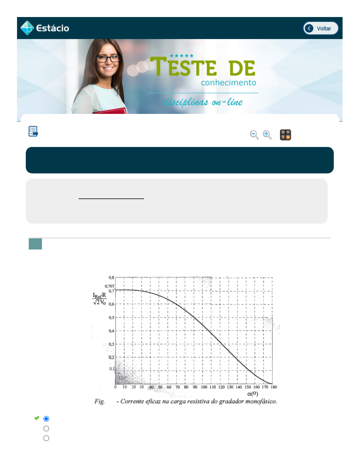 ângulo α de disparo do tiristor (α) conforme gráfico? Escolha a opção correta.