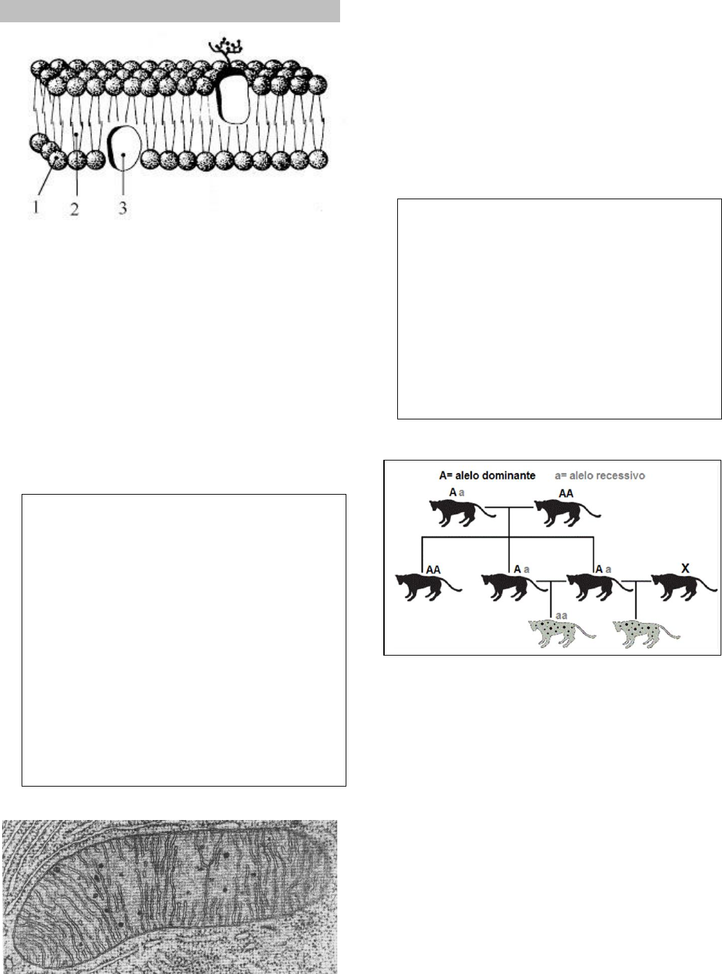 Biologia 01. A figura acima representa uma membrana celular, estrutura essencial por limitar o conteúdo da célula e regular a troca de substâncias entre os meios intra e extracelular. Nesse sentido, podemos afirmar que: 0-0) a imagem representa o modelo de mosaico- fluido. 1-1) o item 1, na figura, representa uma proteína globular. 2-2) o item 2, na figura, representa a parte hidrofóbica dos lipídios. 3-3) a membrana celular possui proteínas associadas aos lipídios, o que está representado pelo item 3 da figura. 4-4) em função de sua constituição química, substâncias lipossolúveis podem atravessar a membrana por difusão simples. Resposta: VFVVV Justificativa: 0-0) Verdadeira. A imagem representa o modelo de membrana celular conhecido como mosaico- fluido, no qual uma bicamada de lipídios está associada às proteínas. 1-1) Falsa. O item 1, na figura, representa a parte hidrofílica do lipídio de membrana, que fica voltada para a parte externa da membrana. 2-2) Verdadeira. O item 2 está indicando a região hidrofóbica dos lipídio, que fica voltada para a região interna da membrana. 3-3) Verdadeira. O modelo de mosaico-fluido prevê a presença de proteínas associadas, que na figura estão representadas no item 3. 4-4) Verdadeira. Por ser baseada em lipídios, substâncias lipossolúveis atravessam a membrana por difusão simples. 02. A micrografia acima é de uma organela celular encontrada em grande quantidade em células que possuem alto gasto energético. Acerca dessa organela, analise as afirmações a seguir. 0-0) Trata-se de uma organela essencial ao processo de fotossíntese. 1-1) É uma organela que está associada ao processo de respiração celular. 2-2) É nessa estrutura que ocorre a síntese de ATP. 3-3) A função dessa organela é a síntese de glicose, fonte principal de energia. 4-4) É nessa organela que ocorre o ciclo de Krebs. Resposta: FVVFV Justificativa: 0-0) Falsa. A micrografia é de uma mitocôndria, e a fotossíntese está associada ao cloroplasto. 1-1) Verdadeira. A mitocôndria é responsável pelo processo de respiração interna da célula, produzindo energia. 2-2) Verdadeira. A mitocôndria produz energia na forma de ATP para as necessidades celulares. 3-3) Falsa. A mitocôndria não produz glicose; ela a quebra para produzir ATP. 4-4) Verdadeira. O ciclo de Krebs é parte do processo de síntese de ATP. 03. Uma grande contribuição de Mendel foi demonstrar que as características hereditárias são determinadas por fatores distintos, que são separados e recombinados em cada geração. Atualmente, esses fatores são chamados de ‘alelos’. A figura acima representa uma possível combinação de alelos ao longo das gerações de onças. A partir dessa representação, podemos concluir que: 0-0) alelos recessivos só expressam sua característica quando em homozigose. 1-1) filhos de cruzamento entre heterozigotos e homozigotos dominantes não podem expressar característica recessiva. 2-2) o cruzamento entre parentes aumenta a possibilidade de expressão dos caracteres recessivos. 3-3) o melanismo em onças é associado a um alelo dominante. 4-4) o indivíduo designado pela letra X é homozigoto. Resposta: VVVVF Justificativa: 0-0) Verdadeira. A homozigose é essencial para a expressão de caracteres recessivos. 1-1) Verdadeira. Como homozigotos dominantes não possuem alelos recessivos, seus filhos não expressam recessividade. 2-2) Verdadeira. A probabilidade de parentes possuírem os mesmos alelos é maior, por isso seus filhos possuem maior probabilidade de expressarem a recessividade. 3-3) Verdadeira. O melanismo em onças está associado a um alelo dominante, diferentemente do que ocorre em outros felinos. 4-4) Falsa. Se o indivíduo X fosse homozigoto, não poderia ter filhos expressando característica recessiva. 04. Algumas condições patológicas humanas são transmitidas geneticamente através da parte não homóloga dos cromossomos sexuais, situação conhecida como ‘herança ligada ao sexo’. Consequentemente: 0-0) a hemofilia é mais comum em homens, pois essa característica pode se expressar em hemizigose. 1-1) apenas as mães podem transmitir a hemofilia, e aos filhos do sexo masculino. 2-2) o daltonismo se expressa com maior frequência em mulheres. 3-3) as filhas de pai daltônico têm 50% de chances de possuírem o gene para essa condição. 4-4) estando localizada no cromossomo X, uma condição recessiva precisa estar em homozigose para se expressar em mulheres, o que não ocorre nos homens. Resposta: VVFFV Justificativa: 0-0) Verdadeira. Embora ligado ao cromossomo X, a hemofilia é mais comum nos homens porque, neste caso, essa característica se expressa com um único alelo recessivo. 1-1) Verdadeira. Filhos do sexo masculino só podem receber do pai o cromossomo Y, que não está associado à hemofilia. Se ele é hemofílico, obrigatoriamente recebeu esse gene da mãe. 2-2) Falsa. Por estar ligado ao cromossomo X, o daltonismo é mais comum nos homens, porque, neste caso, essa característica se expressa com um único alelo recessivo. 3-3) Falsa. Como possuem apenas um cromossomo X e este é o que possui o gene ligado ao daltonismo, todos os gametas X produzidos por pais daltônicos levam essa característica. 4-4) Verdadeira. Como mulheres possuem dois cromossomos X, a recessividade só se expressa em homozigose. Como os homens possuem apenas um cromossomo X, essa condição pode se expressar com um único alelo. 05. O processo de surgimento de novas espécies que se adaptam a ambientes diversos está na base do aumento da biodiversidade e é influenciado por fatores bióticos e abióticos. Darwin soube observar esse processo, associá-lo ao trabalho de outros pesquisadores, e propor leis que o descrevem. Nesse sentido, podemos afirmar o que segue. 0-0) As ideias de Malthus sobre crescimento populacional e produção de alimentos foram fundamentais para as conclusões de Darwin. 1-1) A variação nas