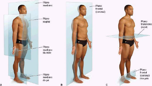 Planos e eixos anatômicos Planos anatômicos As descrições anatômicas baseiam-se em quatro planos imaginários (mediano, sagital, frontal e transverso) que cruzam o corpo na posição anatômica -O plano mediano (plano sagital mediano), plano vertical que corta o corpo longitudinalmente, divide o corpo nas metades direita e esquerda. O plano define a linha mediana da cabeça, do pescoço e do tronco, onde cruza a superfície do corpo. Muitas vezes o termo linha mediana é erroneamente usado como sinônimo de plano mediano - Os planos sagitais são planos verticais que atravessam o corpo paralelamente ao plano mediano. Embora seja muito usado, o termo parassagital é desnecessário, pois todo plano paralelo ao plano mediano, situado a cada lado dele, é, por definição, sagital. Entretanto, um plano paralelo ao plano mediano e próximo a ele pode ser denominado plano paramediano - Os planos frontais (coronais) são planos verticais que atravessam o corpo formando ângulos retos com o plano mediano, dividindo o corpo em partes anterior e posterior - Os planos transversos são planos horizontais que atravessam o corpo formando ângulos retos com os planos mediano e frontal, dividindo o corpo em partes superior e inferior. Os radiologistas referem-se aos planos transversos como transaxiais, que costumam ser abreviados como planos axiais. Tipos de movimentos Alice Fernandes Magalhães - Medicina Alice Fernandes Magalhães - Medicina