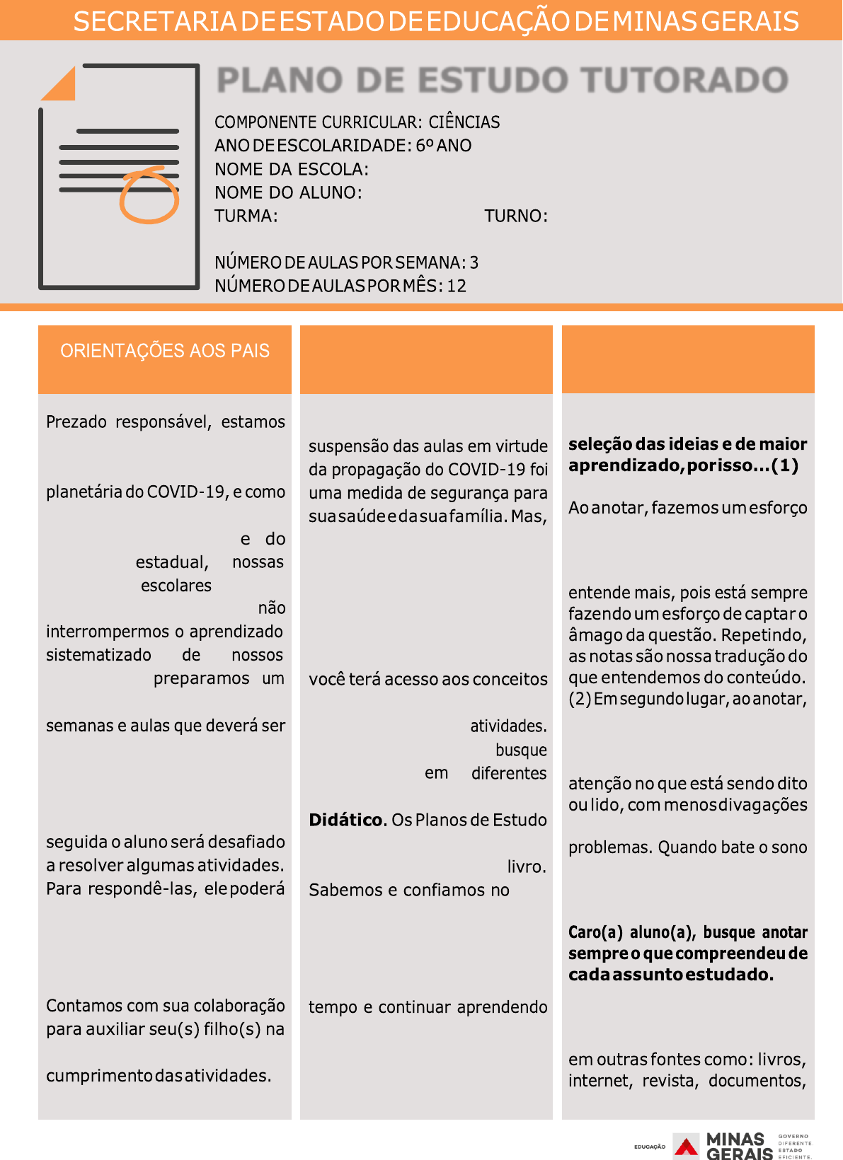 28 plano de estudo dividido em realizado pelos alunos em seu espaço de vivência. Os conceitos principais de cada aula serão apresentados e em fazer pesquisas em fontes variadas disponíveis em sua residência. organização do tempo e no estudantes, e do foram governo unidades fechadas. Para vivenciando um momento de propagação em escala precaução e seguindo orientações nacionais E RESPONSÁVEIS fontes, inclusive no seu Livro são um complemento para os conteúdos do seu seu potencial em aprender. Contamos com seu esforço e dedicação para não perder e ampliando seus saberes. informações Caro aluno, cara aluna! A não é motivo para que você deixe de estudar e aprender sempre. Dessa forma, você receberá planos de estudo de cada um dos componentes curriculares. Nesses planos, básicos da aula, e em seguida realizará algumas Para resolvê-las DICA PARA O ALUNO Anotar é um exercício de de síntese. Como resultado, duas coisas acontecem. Em primeiro lugar, quem anota nossa cabeça vaga menos. A disciplina de selecionar o que será escrito ajuda a manter a ou preocupações com outros ou o tédio, é a melhor maneira de retomar a atenção. Não fique limitado aos textos contidos nas aulas. Pesquise vídeos, etc QUER SABER MAIS? PLANO DE ESTUDO TUTORADO TOTAL DE SEMANAS: 4 29 SEMANA 1 UNIDADE(S) TEMÁTICA(S): Terra e Universo OBJETOS DO CONHECIMENTO: Forma, Estrutura e Movimentos da Terra. HABILIDADE(S): ((EF06CI11) Identificar as diferentes camadas que estruturam o planeta Terra (da estrutura interna à atmosfera) e suas principais características. CONTEÚDOS RELACIONADOS: - Camadas da Terra e suas características. - Estrutura interna da Terra. INTERDISCIPLINARIDADE: Arte: (EF69AR16P6) Analisar e identificar, por meio da apreciação musical, usos e funções da música em seus contextos de produção e circulação, relacionando as práticas musicais às diferentes dimensões da vida social, cultural, política, histórica, econômica, estética e ética. AO FINAL DESTA AULA O ESTUDANTE SERÁ CAPAZ DE: Reconhecer o planeta Terra e suas camadas, também denominadas esferas; Diferenciar Atmosfera, Biosfera, Geosfera e Hidrosfera; Compreender a dinâmica da Terra; Caro aluno, cara aluna, assista ao vídeo “As quatro esferas da Terra”, disponível no Youtube, podendo ser acessado através do link: https://www.youtube.com/watch?v=U2xQJ-naaLI. Comentário do vídeo: O vídeo que você acabou de assistir foi uma adaptação para o nosso idioma, ele apresenta as quatro camadas constituintes da Terra (Hidrosfera, Atmosfera, Geosfera e Biosfera), sendo utilizado na Feira de Ciências, em 2016, do Colégio Brasílio Machado. DESENVOLVENDO O TEMA: A Terra está em constante equilíbrio com as suas esferas, assim é possível que o planeta seja habitado por seres vivos. Devemos ter a clara distinção entre as quatro esferas e os elementos que dela fazem parte: ➔ Geosfera: Toda parte rochosa do nosso planeta. Nós, seres humanos, habitamos a Geosfera, pois, vivemos nos continentes. ATIVIDADES https://www.youtube.com/watch?v=U2xQJ-naaLI 30 ➔ Hidrosfera: Toda parte líquida do nosso planeta. Sabemos que a maior parte da Terra, cerca de 70%, é água. A disponibilidade da água está, praticamente, concentrada nos oceanos, mas também encontramos nos rios, lagos, mares... ➔ Atmosfera: Camada de ar que nos envolve, sendo formada por uma mistura de diversos gases, não apenas os gases utilizados na nossa respiração: (Oxigênio – – e Gás carbônico – ). A Atmosfera desempenha um importante papel na manutenção da temperatura do nosso planeta, garantindo, juntos com as outras esferas, a manutenção da vida. ➔ Biosfera: Todas as regiões habitadas por seres vivos do nosso planeta. Todo ser vivo, junto com o ambiente em que ele vive faz parte da Biosfera. O desenho abaixo nos dará um melhor dimensionamento do que estamos falando: Organizando as ideias: Atividade 1 - Identifique sobre qual esfera se está fazendo referência. a. Rios, mares lagos e oceanos. Hidrosfera b. A terra que utilizamos para plantar Litosfera c. Região onde os aviões voam Atmosfera d. Região onde os aviões voam e vivemos Biosfea E 31 ATIVIDADE 2 - No dia 22 de maio de 2014, após quatro horas fechado por conta de uma forte neblina, o Aeroporto Internacional Eduardo Gomes, na cidade de Manaus (AM), teve quase 70 voos atrasados ou cancelados. Em qual esfera da Terra o nevoeiro se forma? Atmosfera - troposfera ATIVIDADE 3 - Na sua opinião, por que é necessário manter o equilíbrio entre as quatro esferas? Esses ambientes se interpenetram, e se, inter-relacionam, através da superfície da Terra que é a camada de contato e inter-relacionamento entre a Atmosfera, Hidrosfera e Litosfera, dando origem a Biosfera. Esta camada permite através de seu equilíbrio natural o surgimento de minerais, água, solos diferentes, vida animal, vida vegetal e uma série quase infinita de outros acontecimentos que tendem a mudar com o tempo. ATIVIDADE 4 - Exemplifique alguns seres vivos que podem ser encontrados na biosfera (atmosfera, hidrosfera e/ou geosfera) . Hidrosfera: peixes, algas, baleias... Geosfera: seres humanos, cachorro, onça... Atmosfera: pássaros SAIBA MAIS … Você poderá aprofundar seus conhecimentos buscando outras fontes de informações: https://www.youtube.com/watch?v=tfabqh-kSUg https://www.youtube.com/watch?v=luI00qz6DY8 https://www.resumoescolar.com.br/geografia/sistema-terrestre/ http://portal.mec.gov.br/seb/arquivos/pdf/orientacao.pdf http://portal.mec.gov.br/seb/arquivos/pdf/orientacao.pdf http://portal.mec.gov.br/seb/arquivos/pdf/orientacao.pdf 32 SEMANA 2 UNIDADE(S) TEMÁTICA(S): Terra e Universo OBJETOS DO CONHECIMENTO: Forma, Estrutura e Movimentos da Terra. HABILIDADE(S): ((EF06CI11) Identificar as diferentes camadas que estruturam o planeta Terra (da estrutura interna à atmosfera) e suas principais características. CONTEÚDOS RELACIONADOS: - Camadas da Terra e suas car