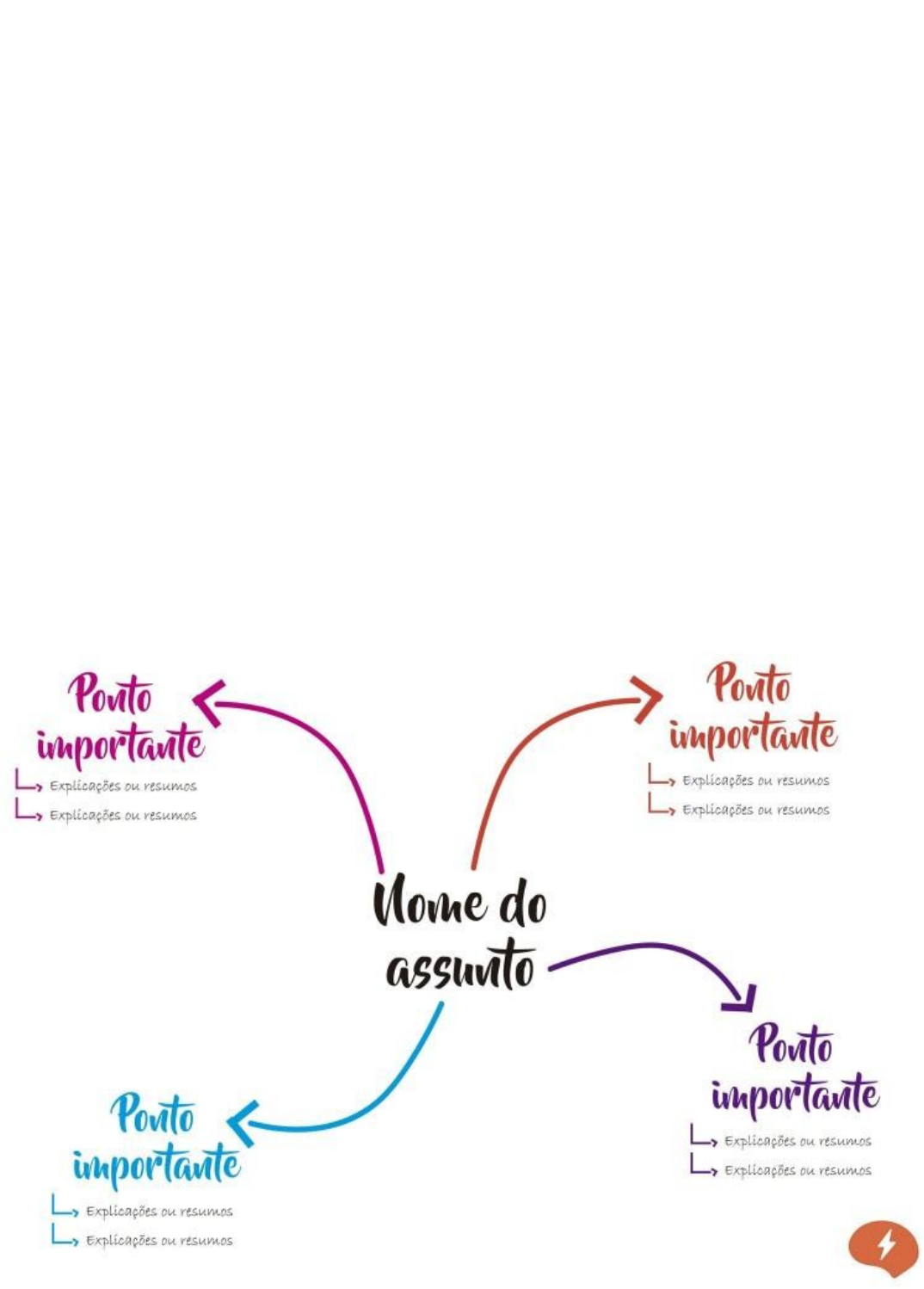 MAPA MENTAL Mapa Mental é um diagrama que permite que você organize ideias de forma simples e lógica, representando-as visualmente, facilitando o processo de memorização. Esse método foi criado pelo escritor inglês Tony Buzan, uma das maiores autoridades no estudo do cérebro, memória e aprendizagem. Ele começa com um tema central, que evolui através de linhas ou “ramos” relacionando os subtópicos do tema. É um método de memorização que ajuda a aumentar o aprendizado. Em relação aos estudos, entre outras coisas, o Mapa Mental pode te ajudar a: - Planejar seus estudos; - Traçar objetivos e metas; - Organizar matérias para revisar. COMO FAZER UM MAPA MENTAL? Você pode desenhar à mão em uma folha de papel, pode fazer no Word, no Power point ou em ferramentas na internet. É mais indicado que o Mapa seja feito à mão, pois o cérebro guarda com mais facilidade as informações quando fazemos algo à mão. Para fazer o Mapa procure usar canetas coloridas, lápis de cor ou marca textos coloridos para separar e destacar as informações em cores diferentes e ajudar na dinâmica do seu Mapa. Veja as orientações para fazer o Mapa Mental. 1. Defina o tema central, exemplo: Primeira Guerra Mundial; 2. Busque informações sobre o tema e assuntos relacionados a ele (onde, quando, contexto, causas, consequências); 3. Utilize cores, setas e desenhos, isso ajuda você a associar os assuntos e lembrar deles posteriormente; 4. Use palavras-chave curtas, muitas informações juntas podem tirar o foco e confundir; 5. Deixe a folha em formato paisagem. Isso ajuda as ideias a fluírem melhor; 6. Comece no centro da folha, colocando o tema central e o envolvendo com algum elemento visual. Exemplo: um balão de ideia ou um desenho que represente o tema central; 7. Os subtópicos deverão ser os pontos importantes desse assunto. Ligue cada subtópico com as explicações ou resumos dos pontos importantes. 8. Faça linhas com curvas, facilita ao cérebro manter a atenção; 9. Por fim, estude seu Mapa para não esquecer a linha de raciocínio e ajudar o cérebro a fixar as informações. 10. E agora... FAÇA O SEU MAPA MENTAL!!!!!!!