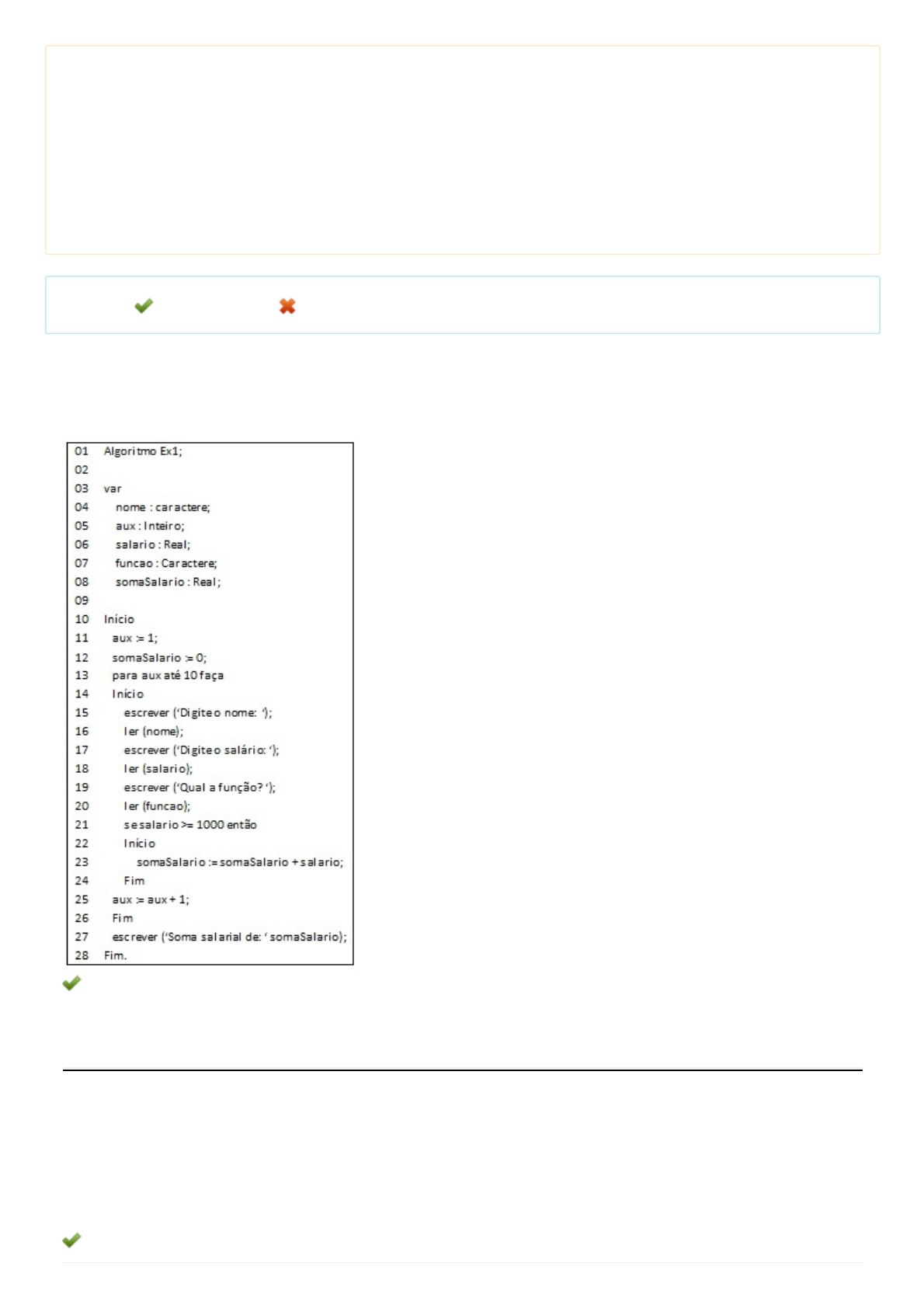 ( ) O algoritmo está certo e apresentará a maior nota de três.